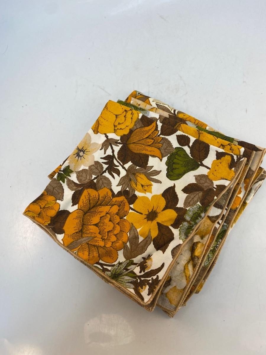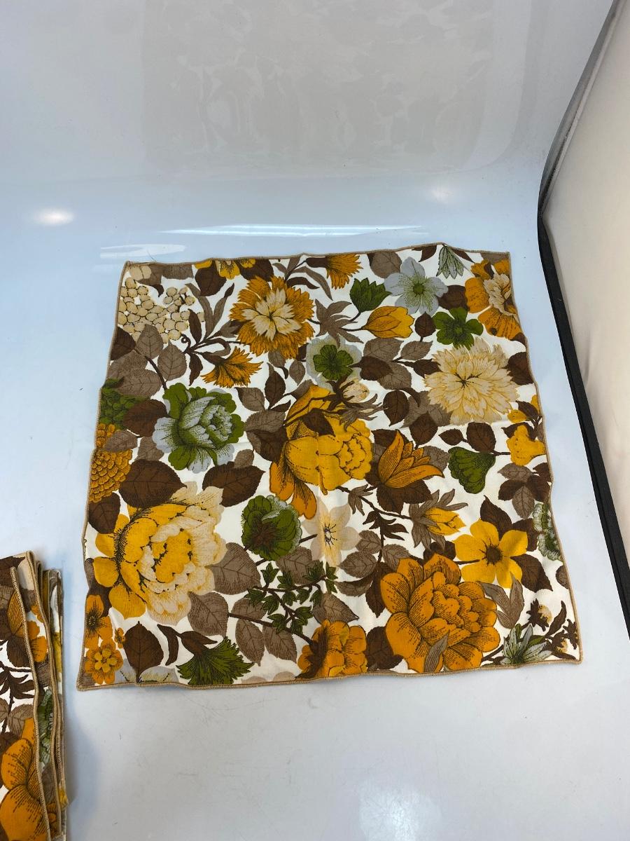 Set of 5 Vintage Yellow Floral Cloth Dinner Napkins. In good condition, did not notice any spots.