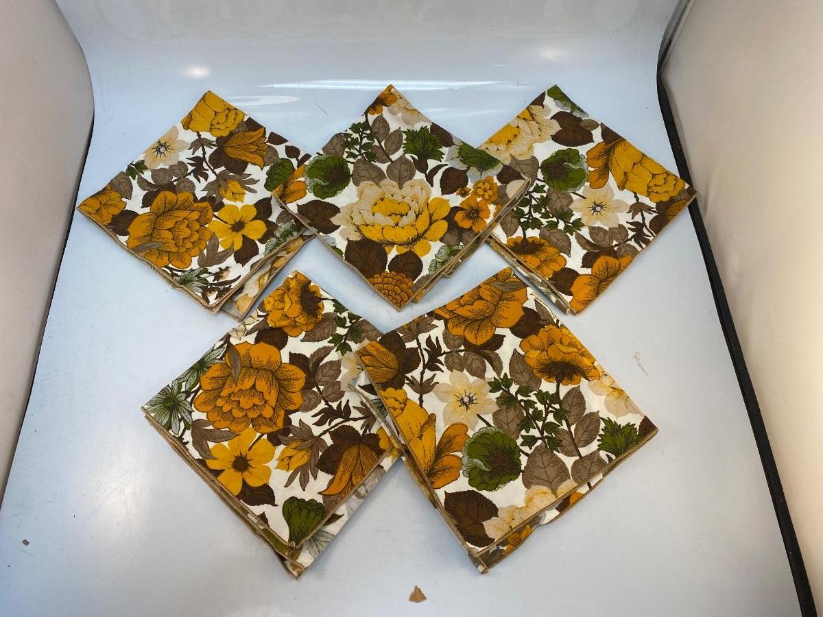 Set of 5 Vintage Yellow Floral Cloth Dinner Napkins