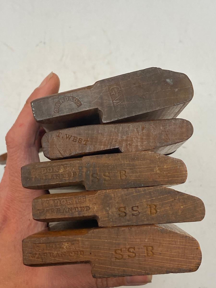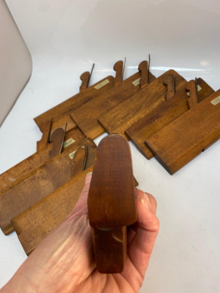 Lot of 9 Antique Wood Curved Concave Bead Planes Different Sizes