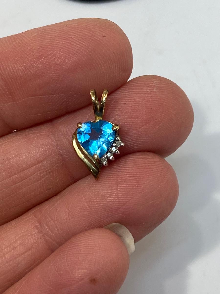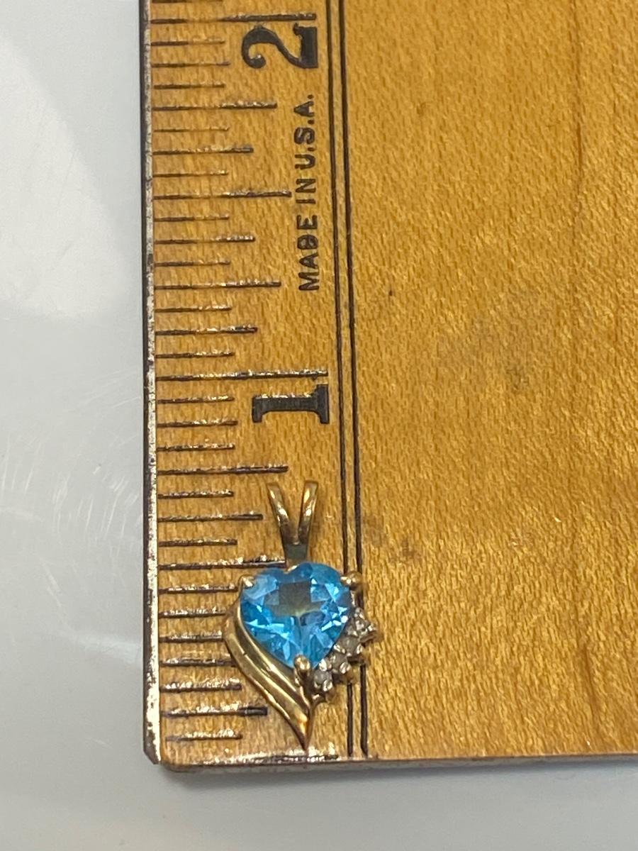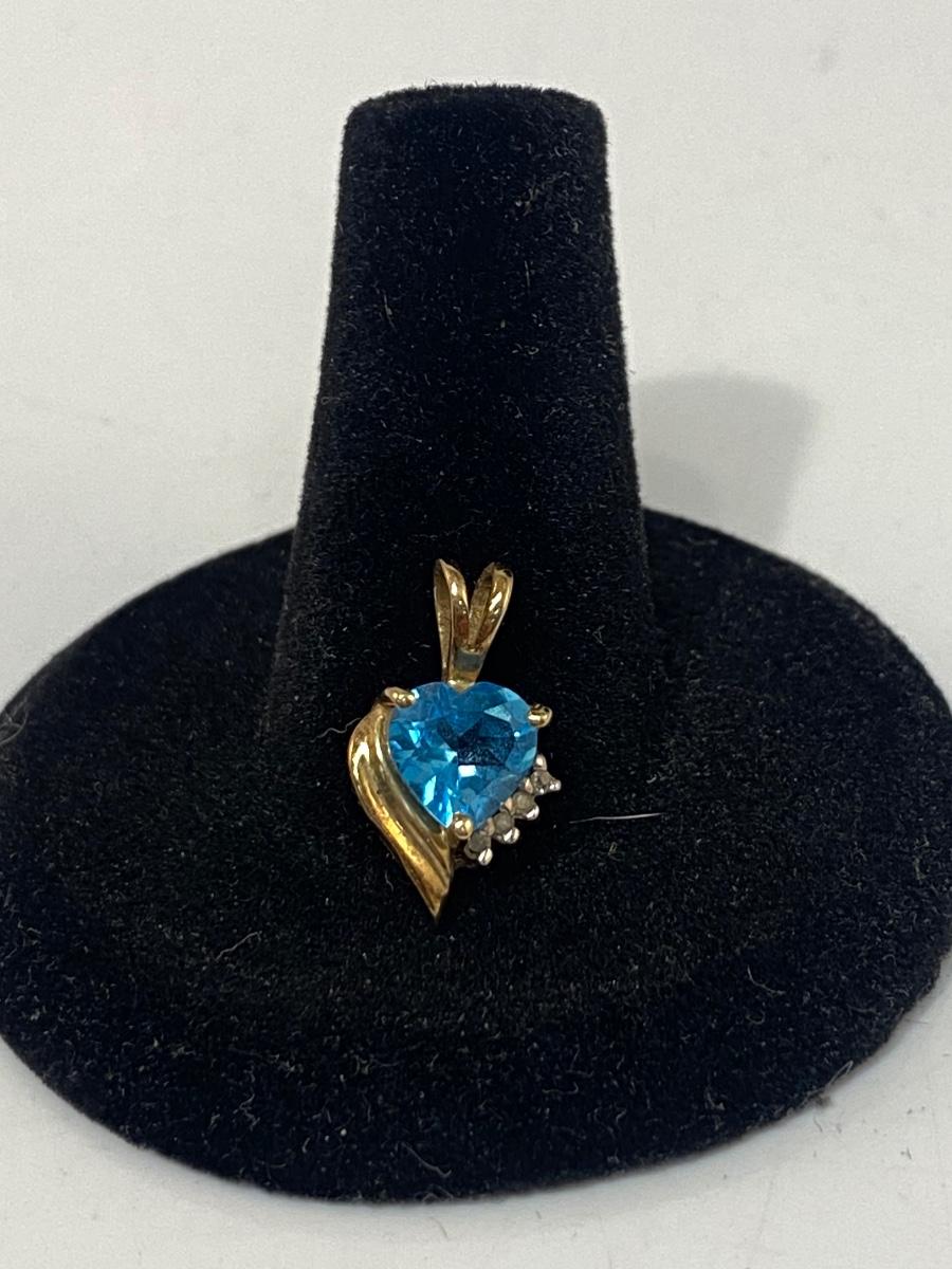 Small 10k Yellow Gold Blue Topaz & CZ Heart Pendant Charm