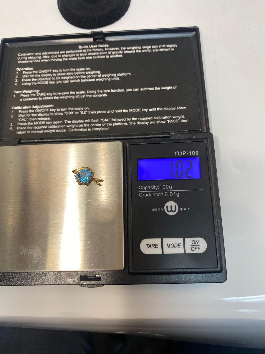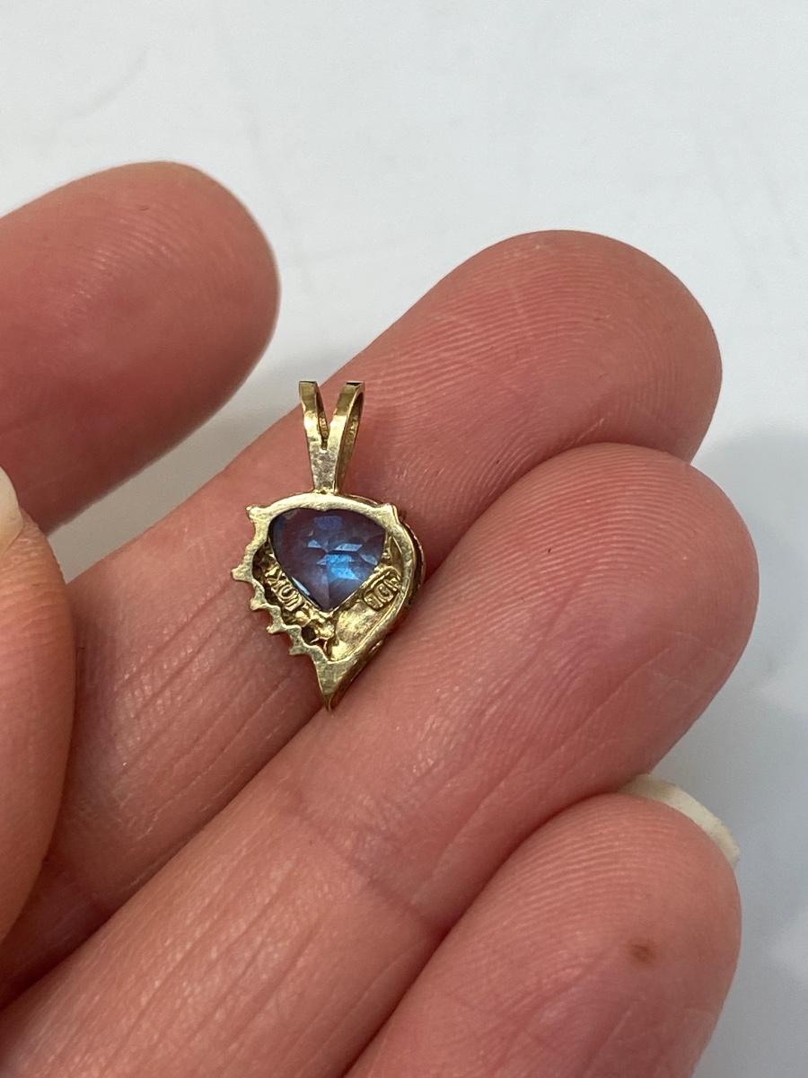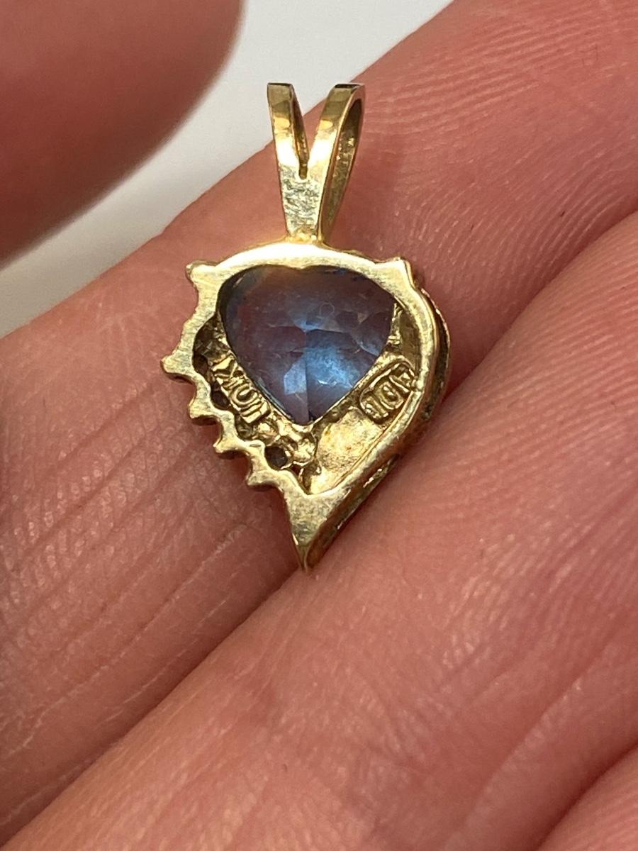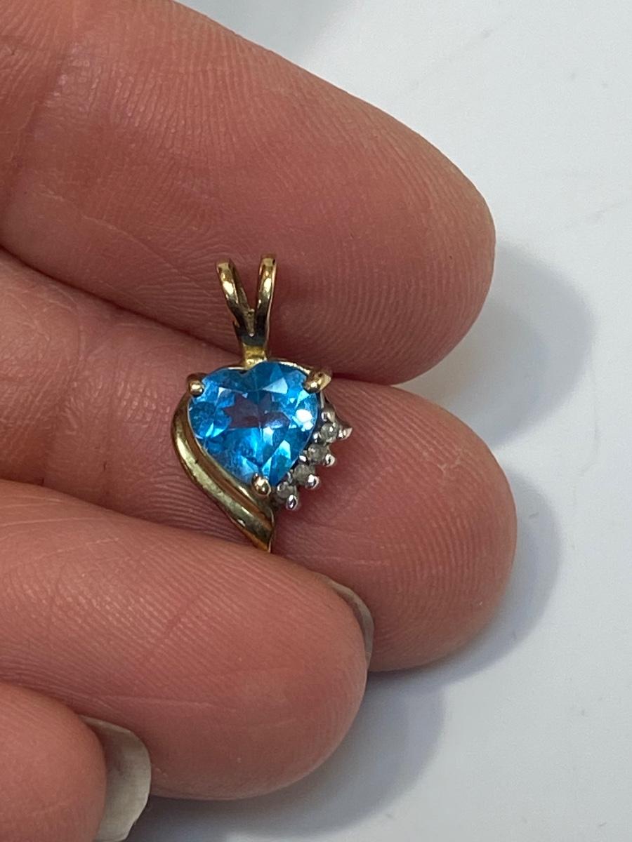 Small 10k Yellow Gold Blue Topaz & CZ Heart Pendant Charm