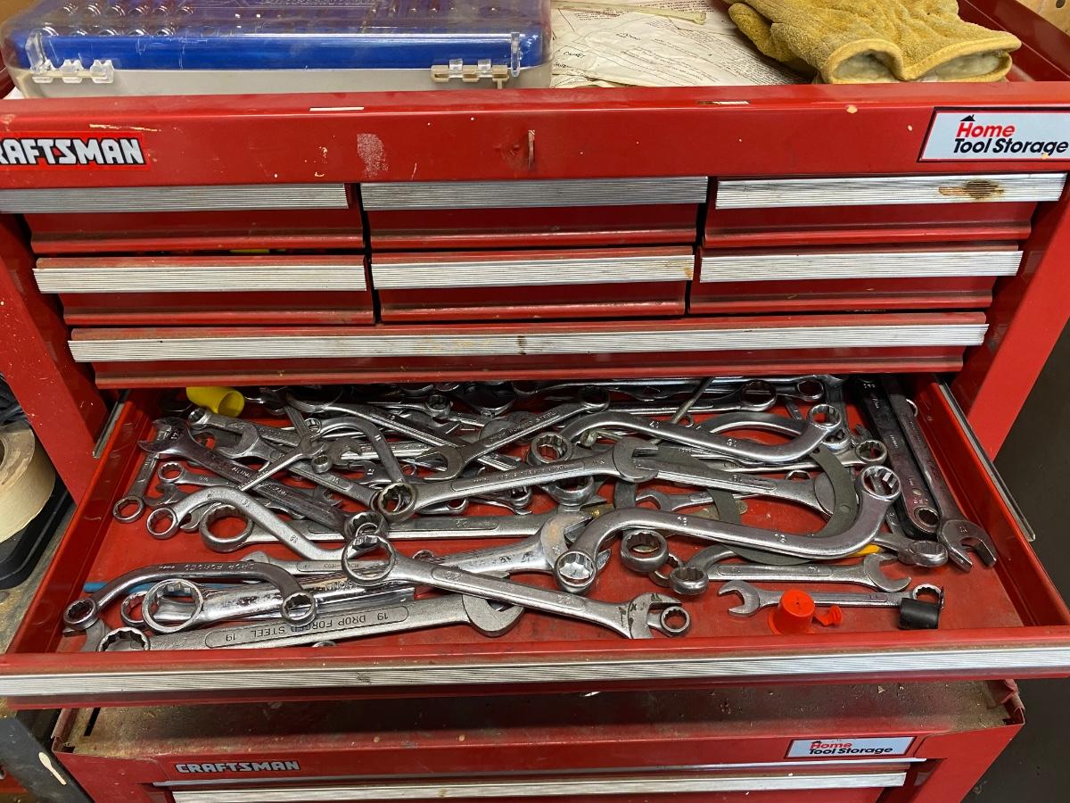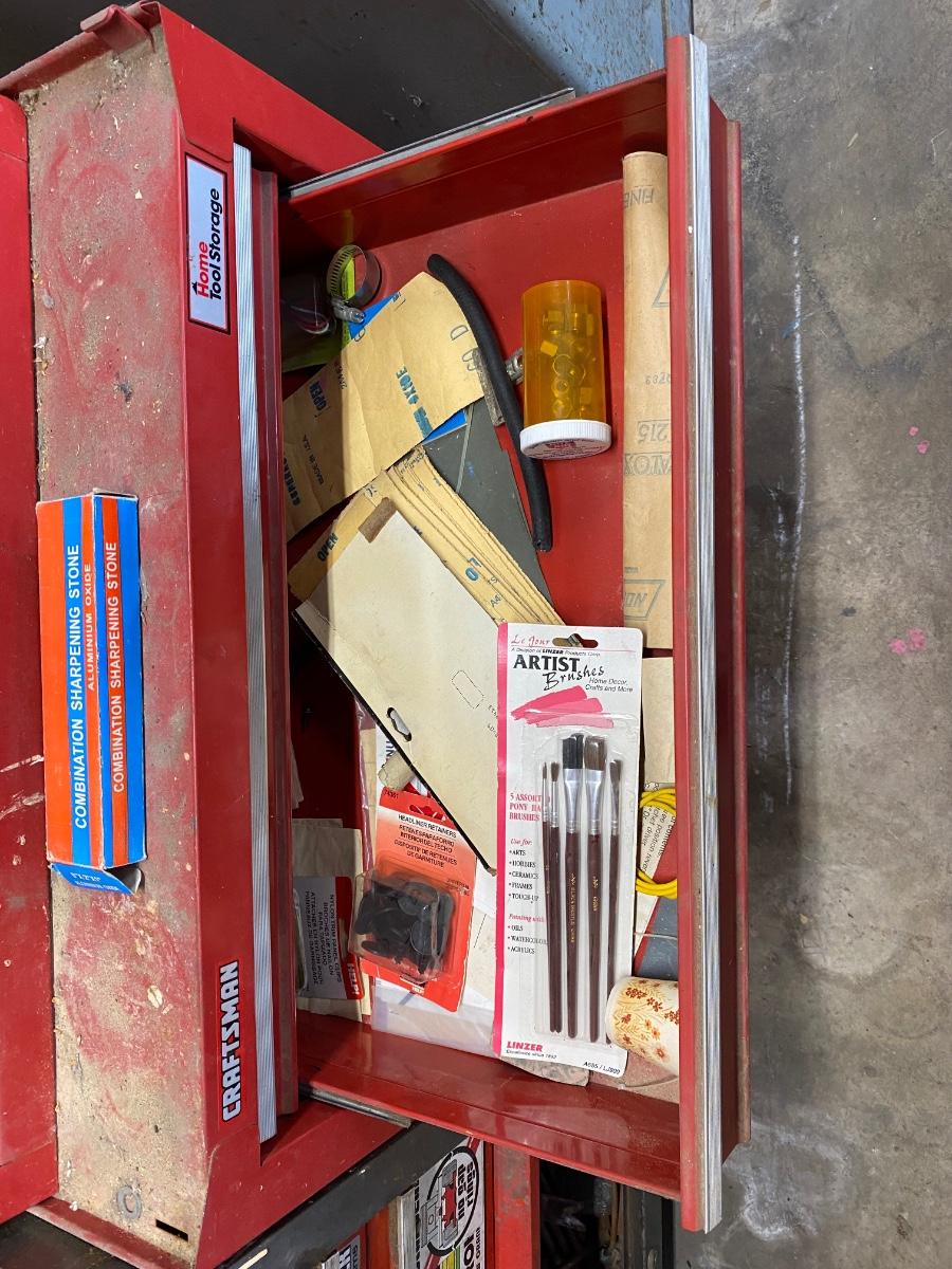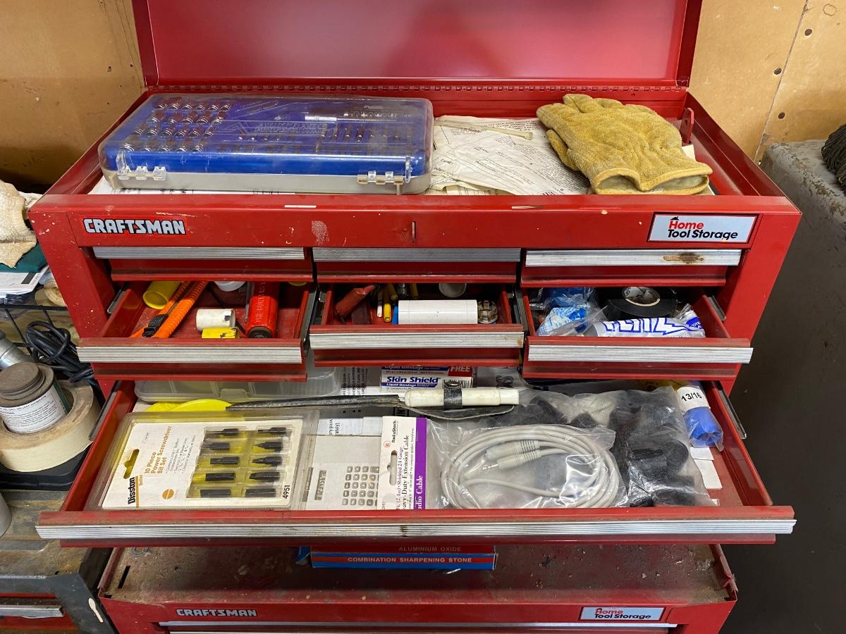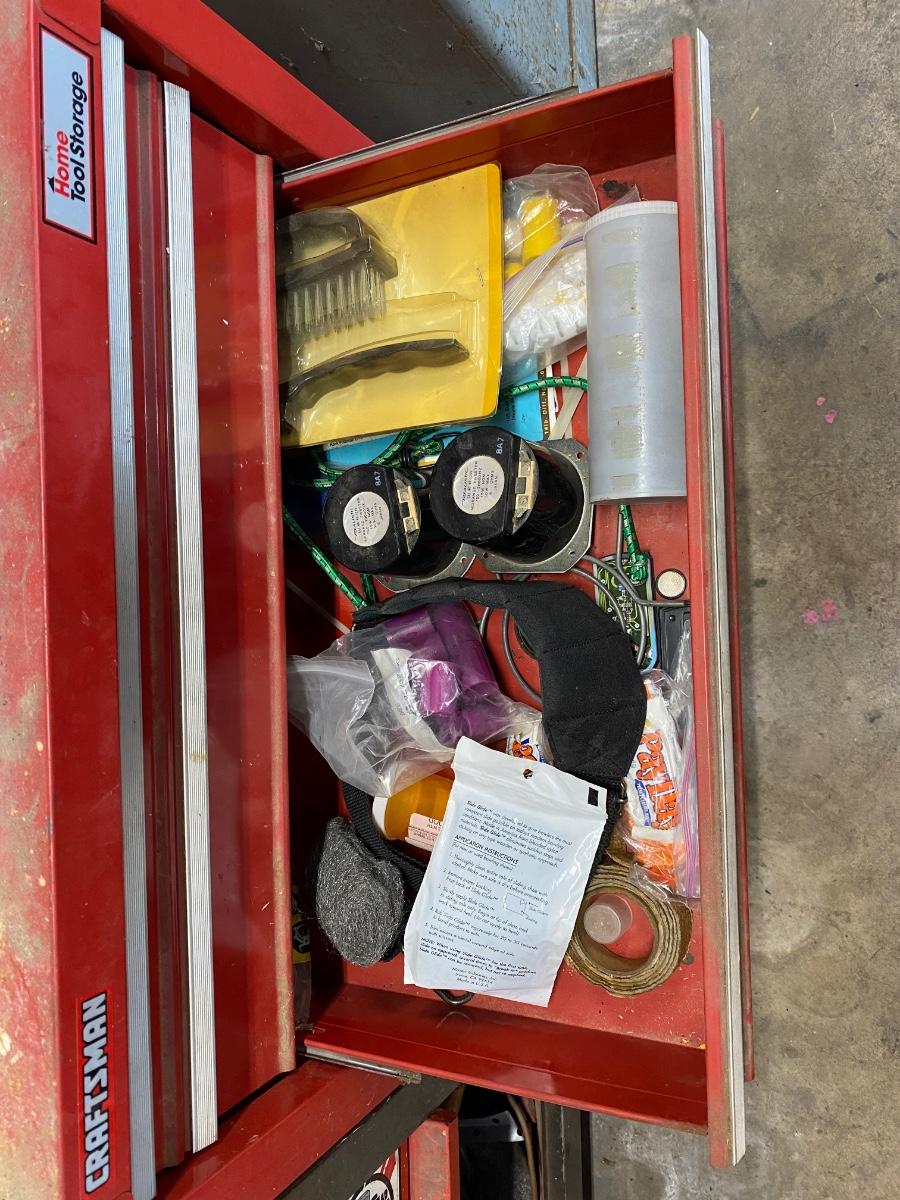Craftsman Red Two-Piece Toolbox Roll Away Cabinet with All Tools & Hardware Included. In good used condition. Comes with all tools and hardware inside. PICK UP IN CYPRESS 6/3.