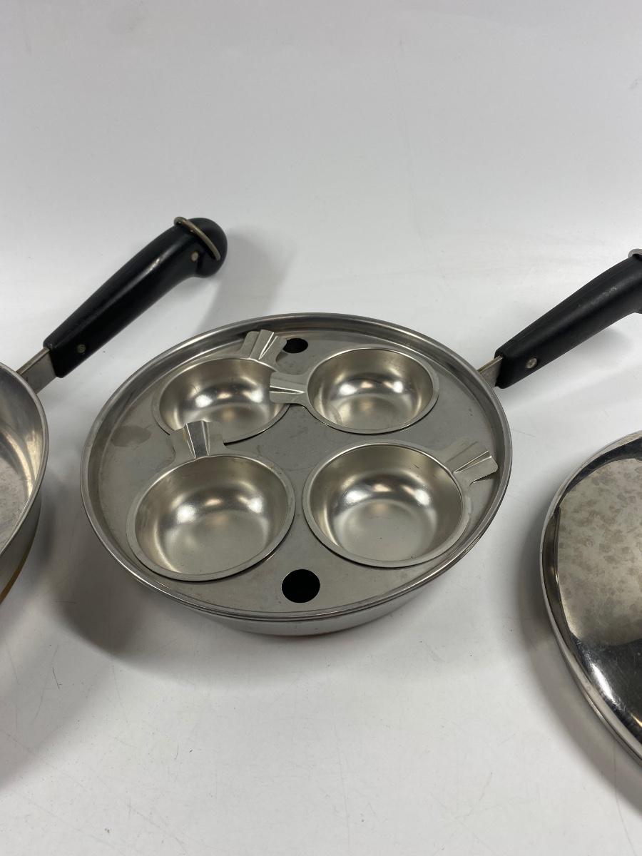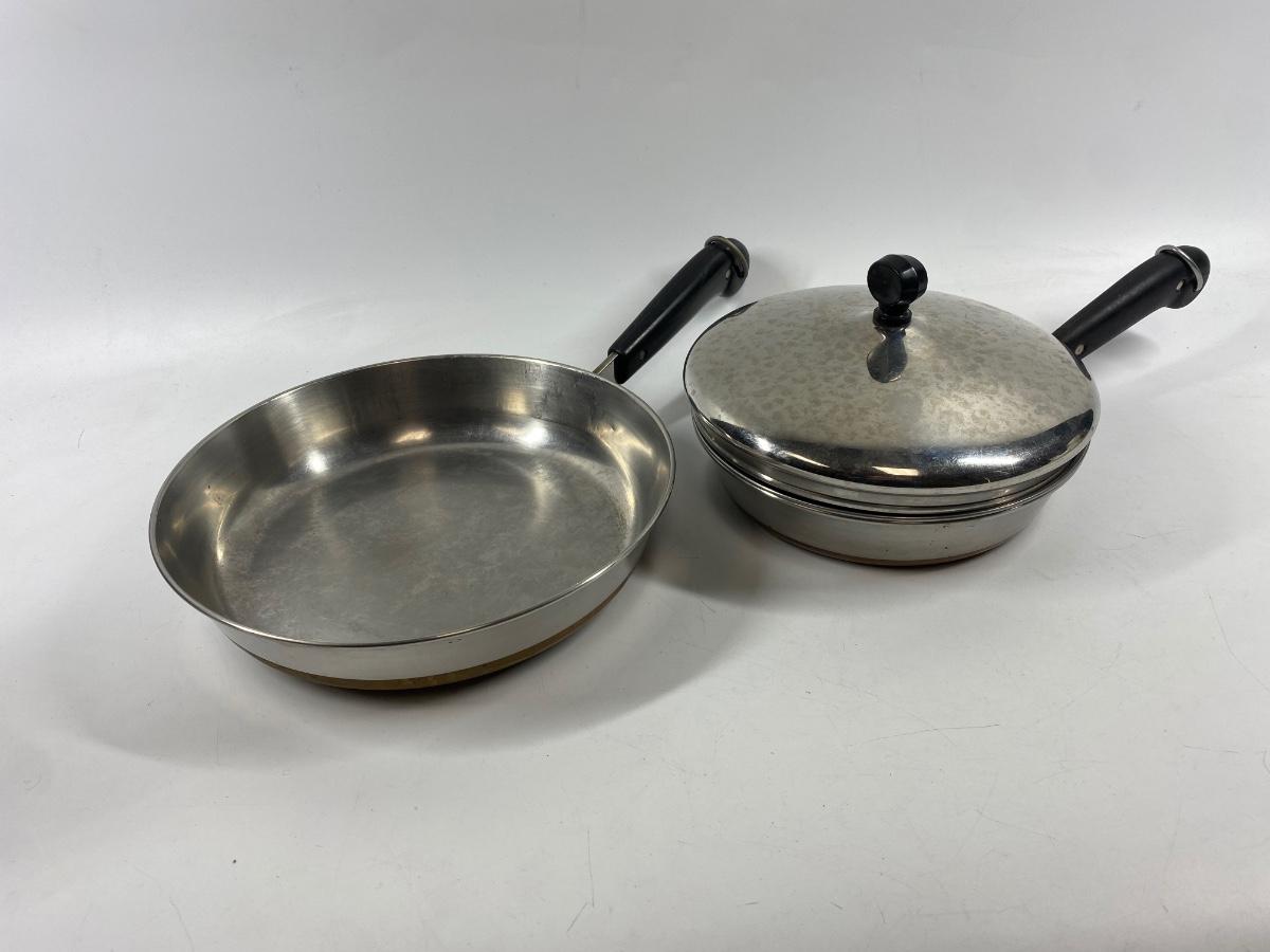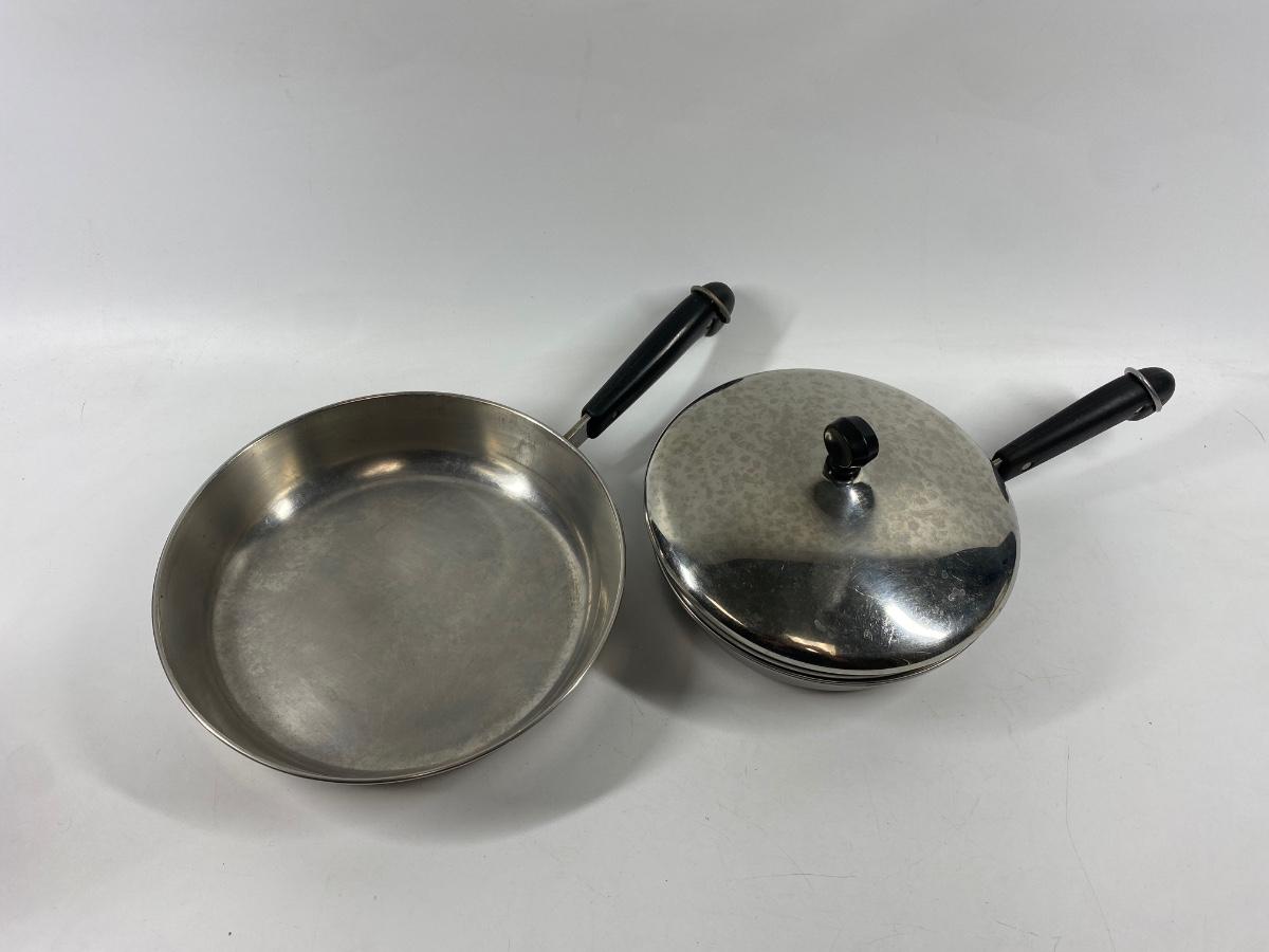 Pair of Revere Ware Stainless Steel Fry Pan Pouched Egg with Lid