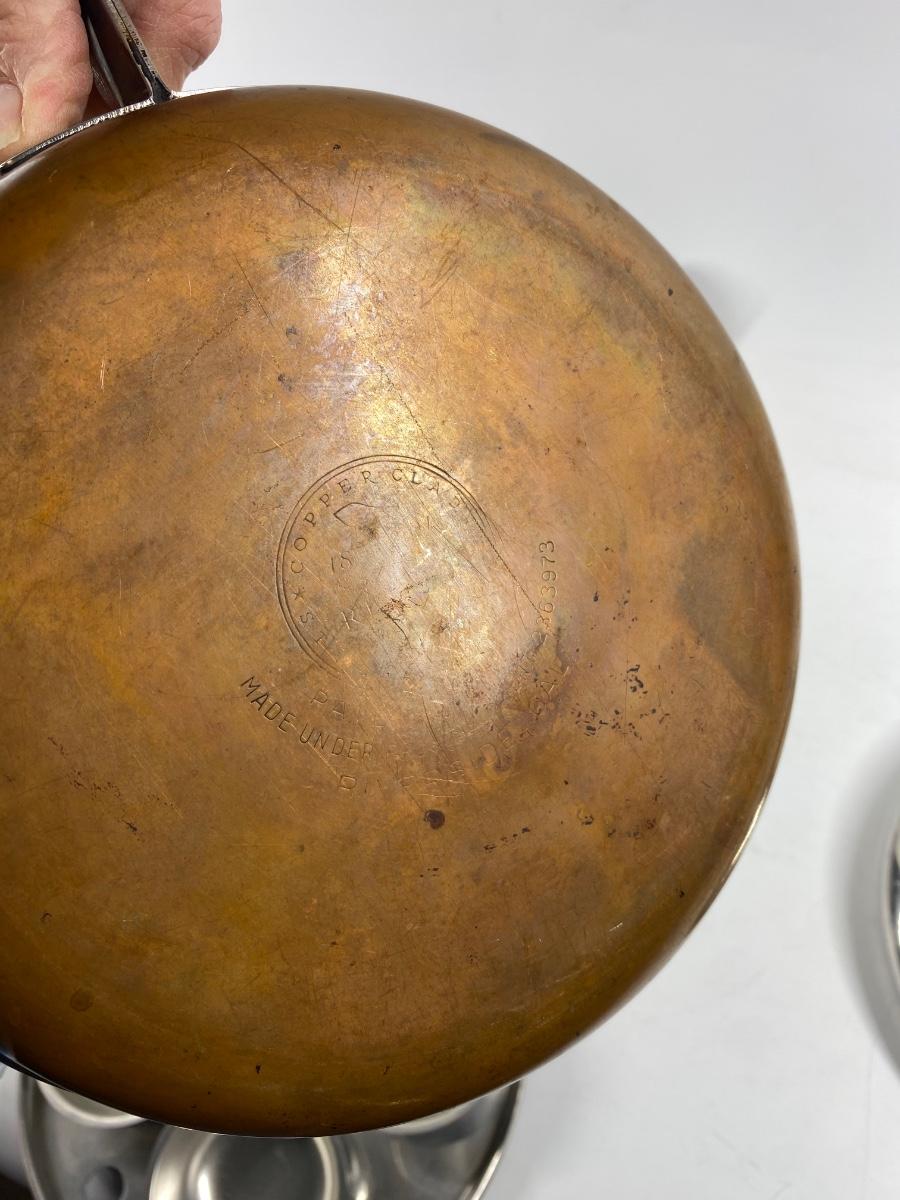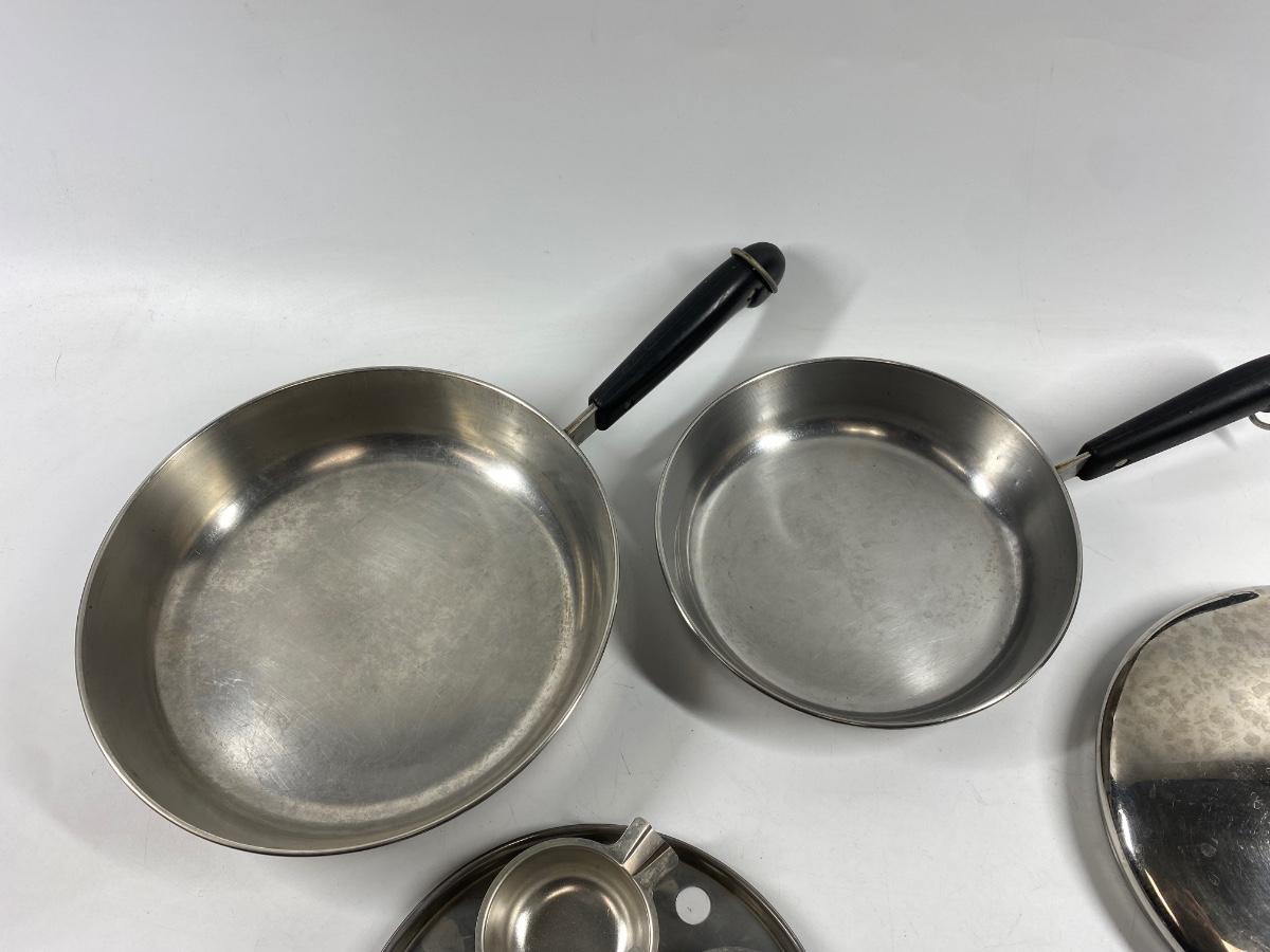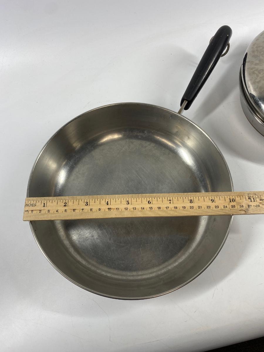 Pair of Revere Ware Stainless Steel Fry Pan Pouched Egg with Lid