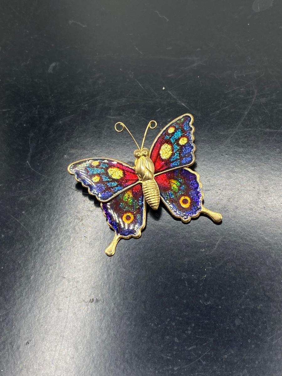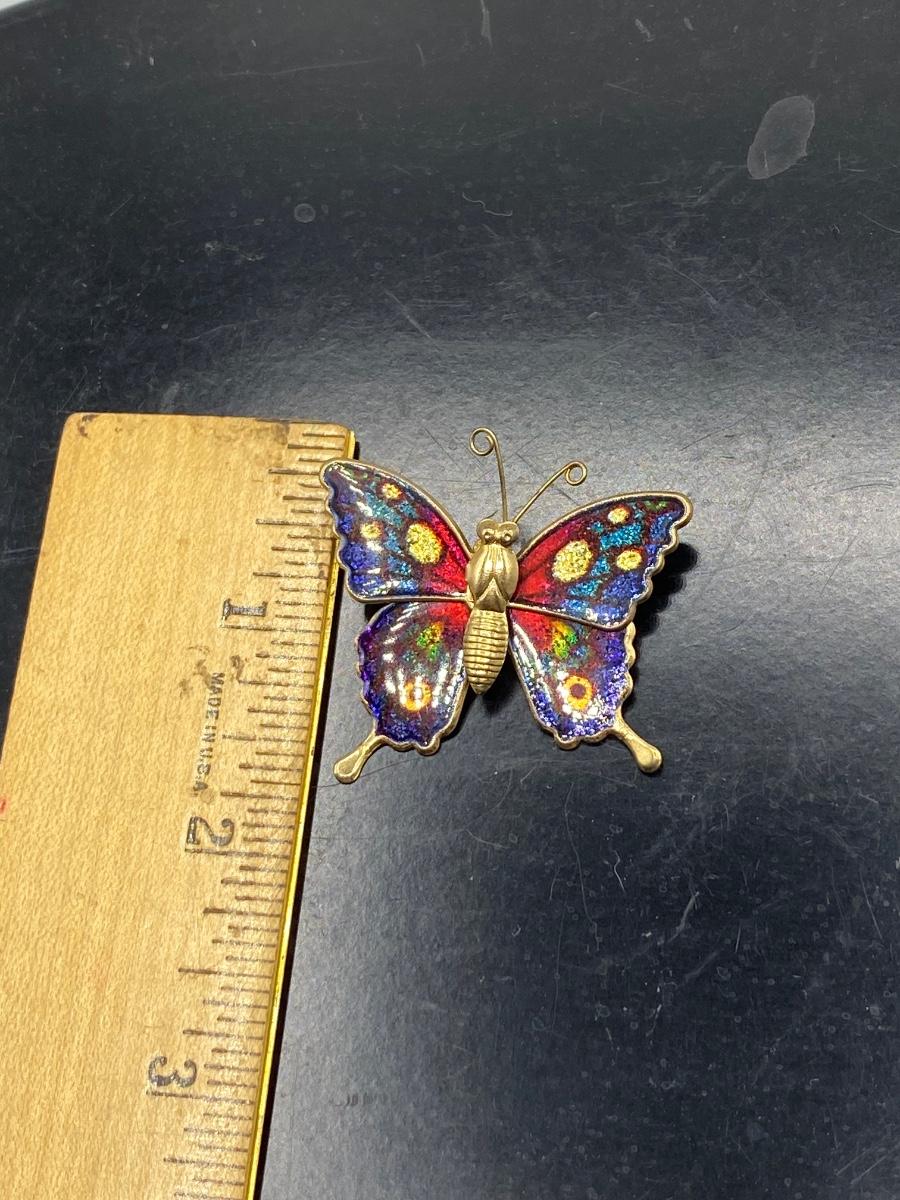 Gold Tone Colorful Enamel Butterfly Pin. In good condition.