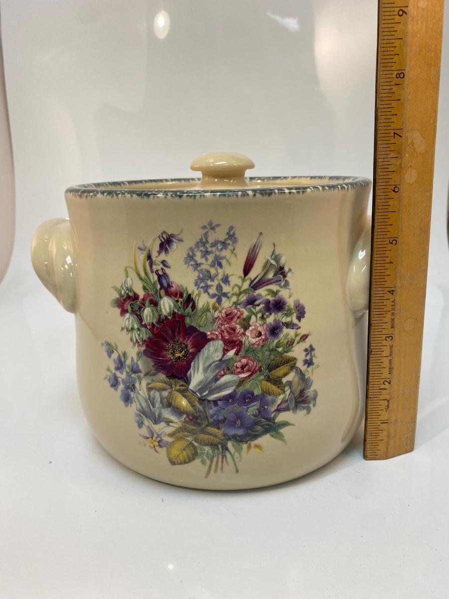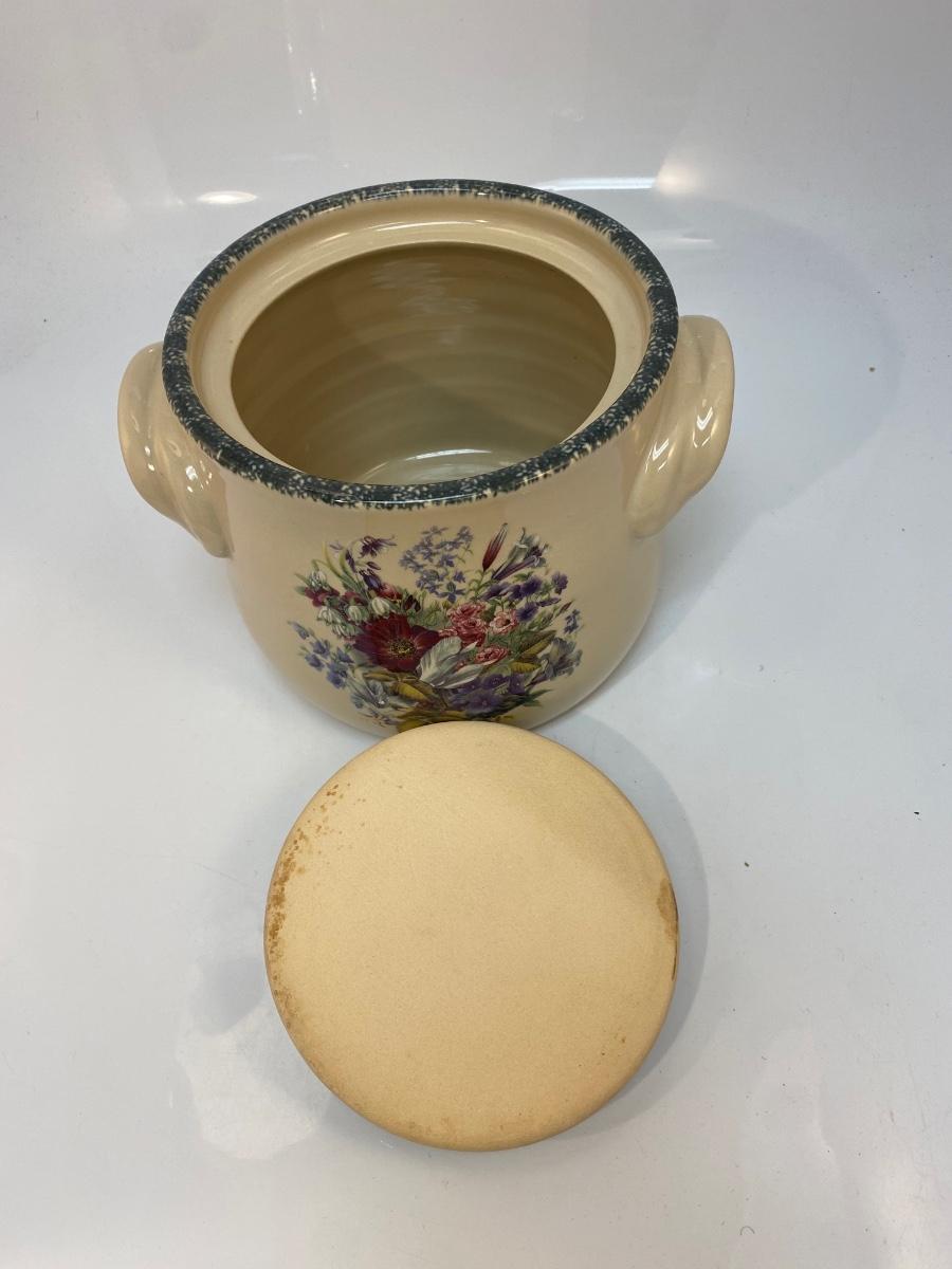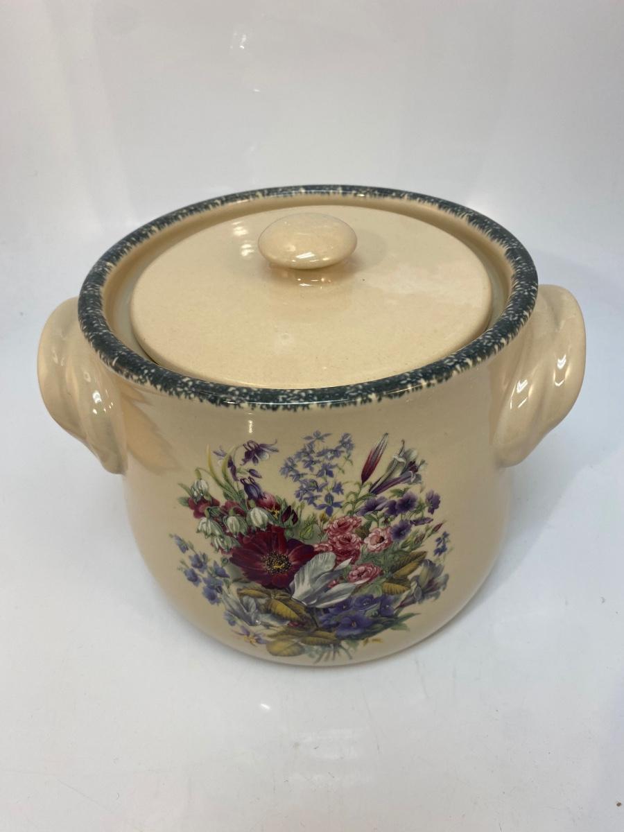 Heavy Stoneware Pottery Floral Pattern Bean Pot Canister Cookie Jar