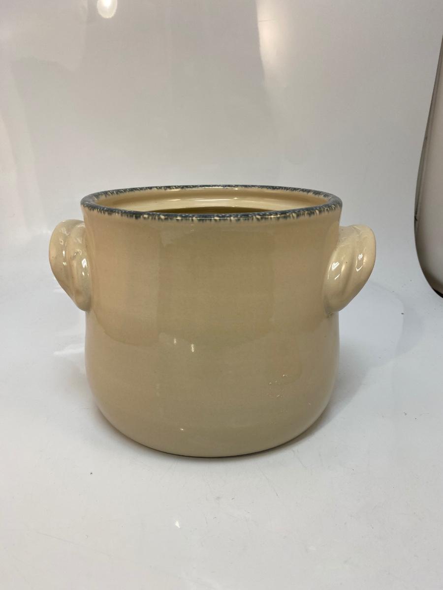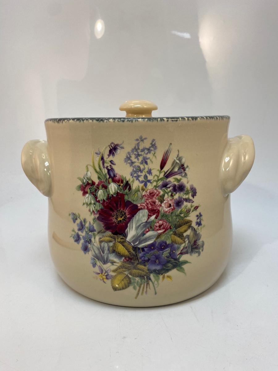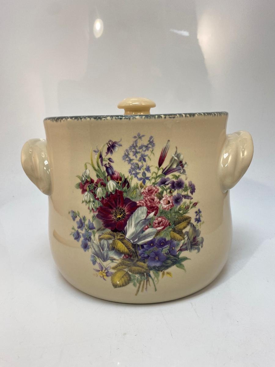 Heavy Stoneware Pottery Floral Pattern Bean Pot Canister Cookie Jar