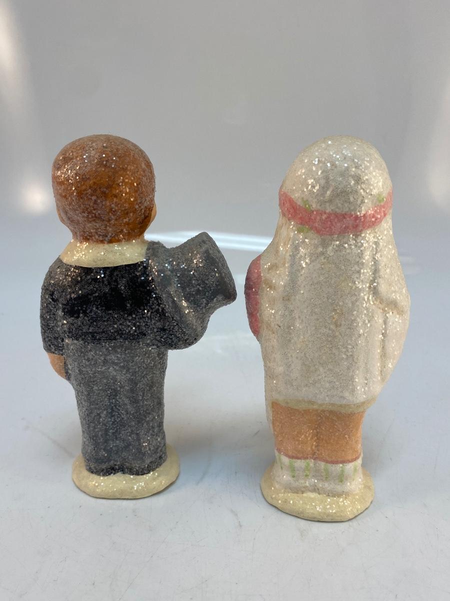 Vintage Glitter Covered Lightweight Plaster Composite Bride & Groom Figurines