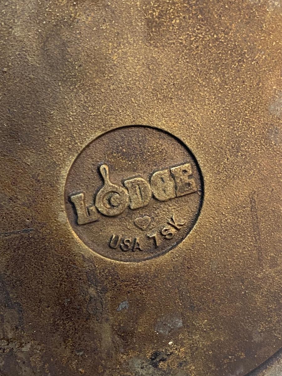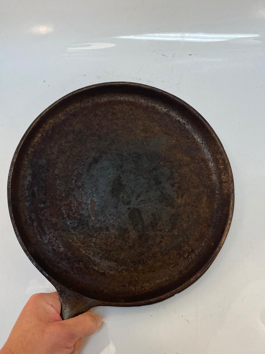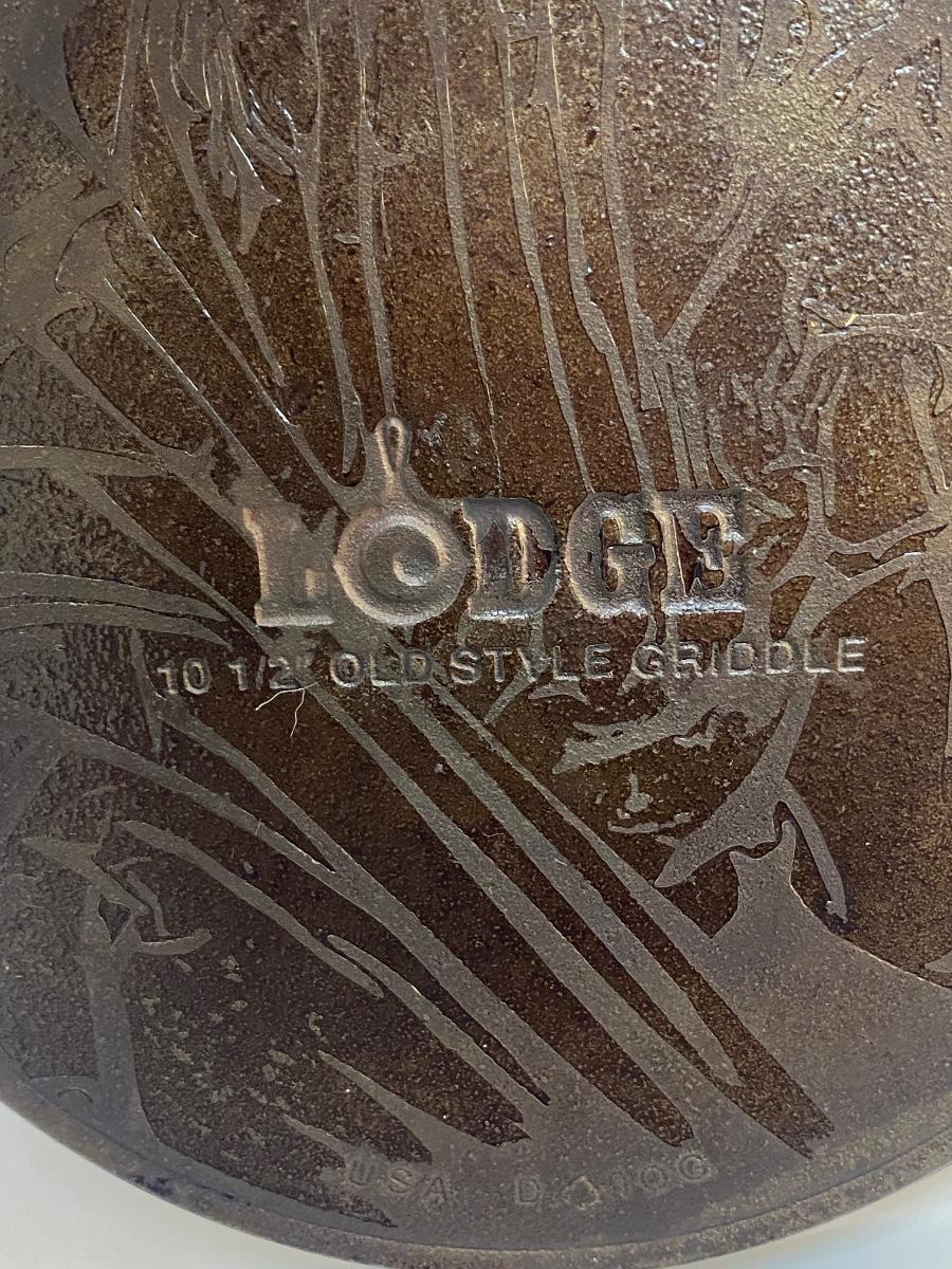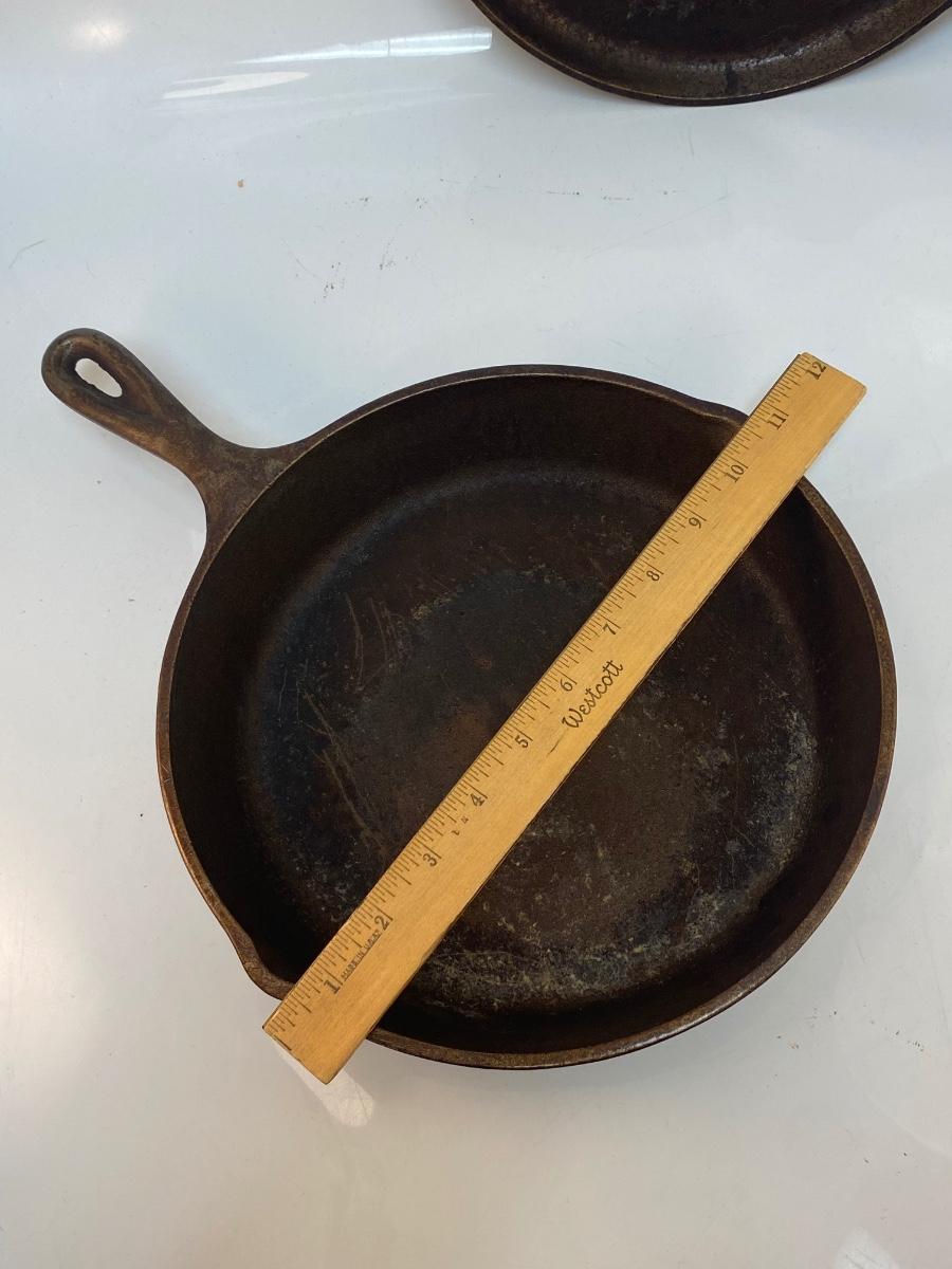 Pair of Lodge Brand Cast Iron Skillet Frying Pan Flat Griddle. In fair used condition. Could use a cleaning and reseasoning.