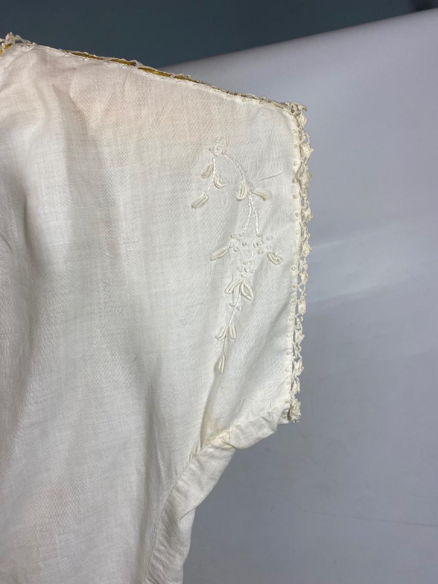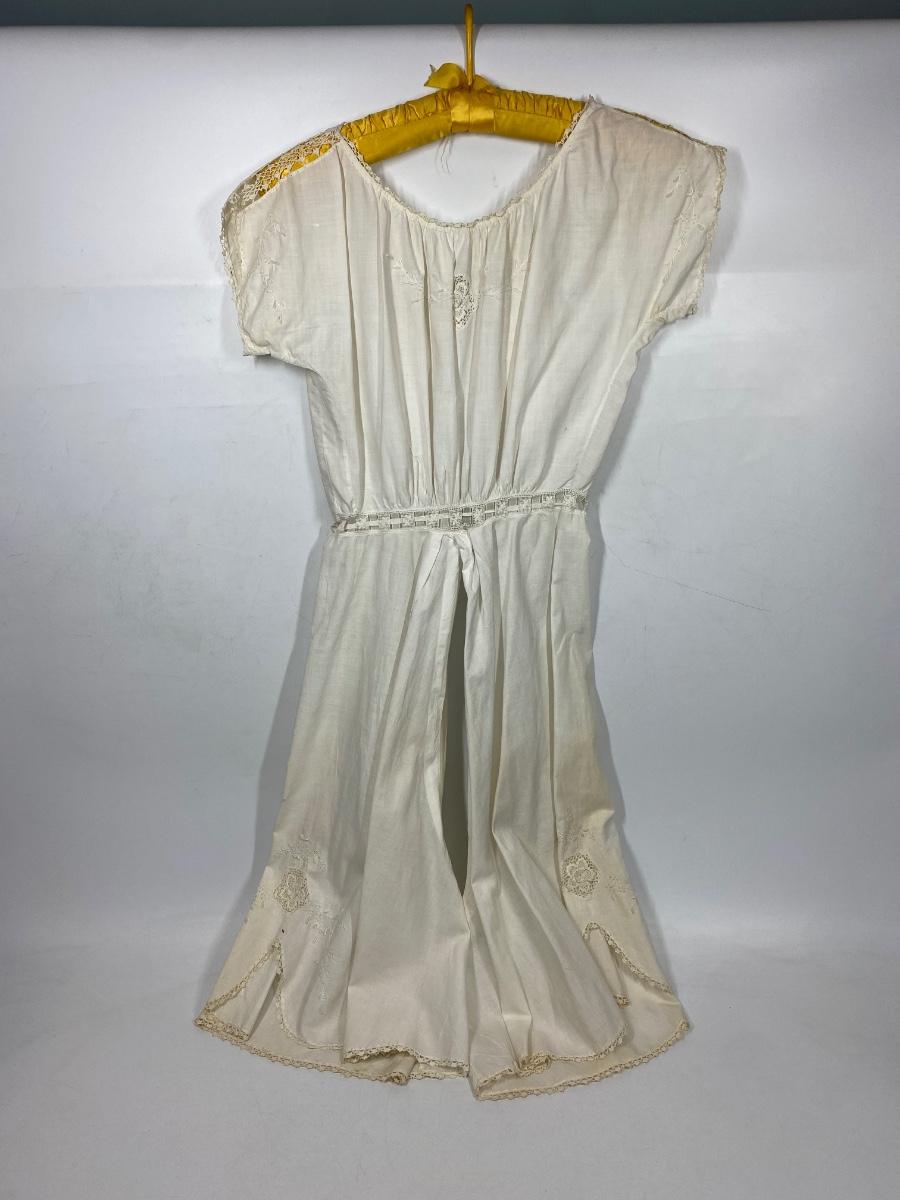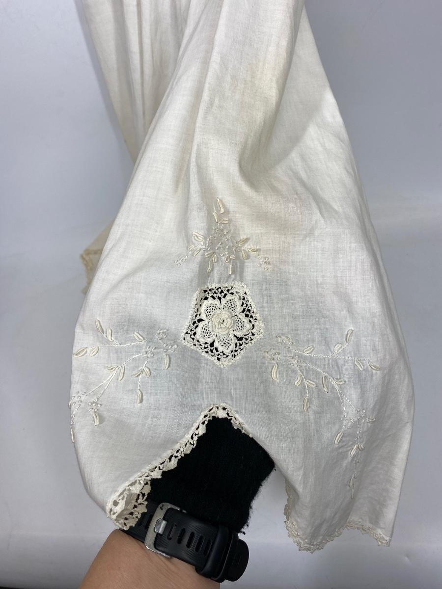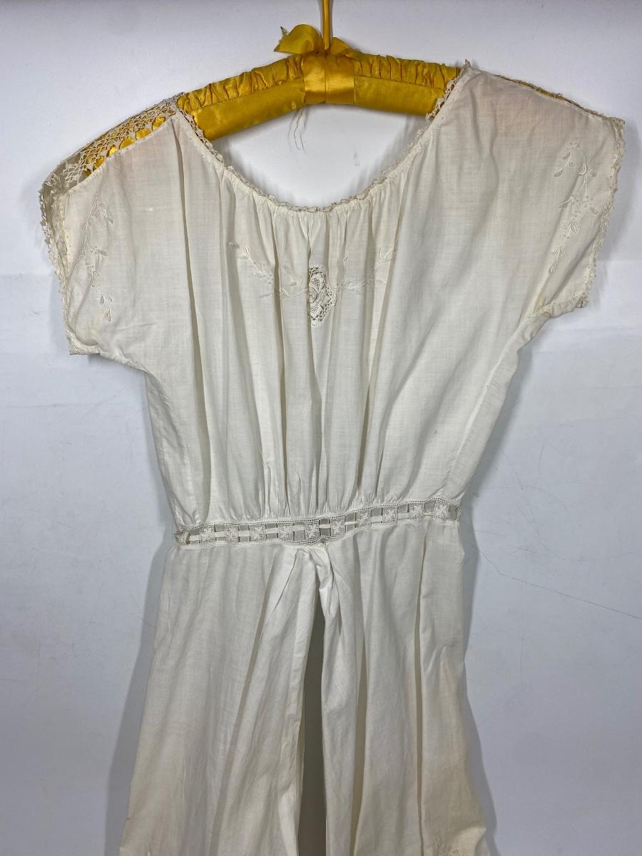 Vintage Victorian Gibson Girl White Cotton Romper Undergarment. In good condition. Cap sleeve, knee length leg. Open inner thigh and crotch. May have light discolor but no holes or stains. Cute lace embroidery details. Maybe a size 8 or so.