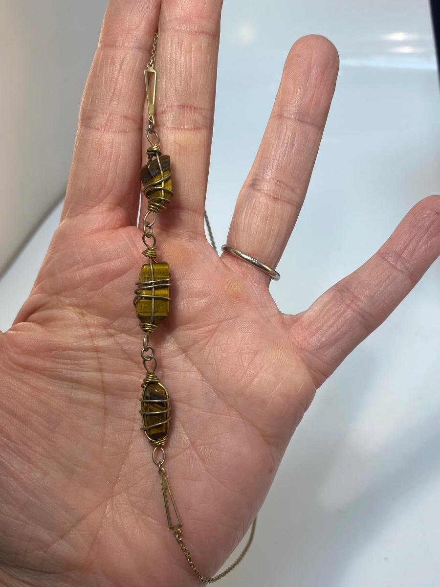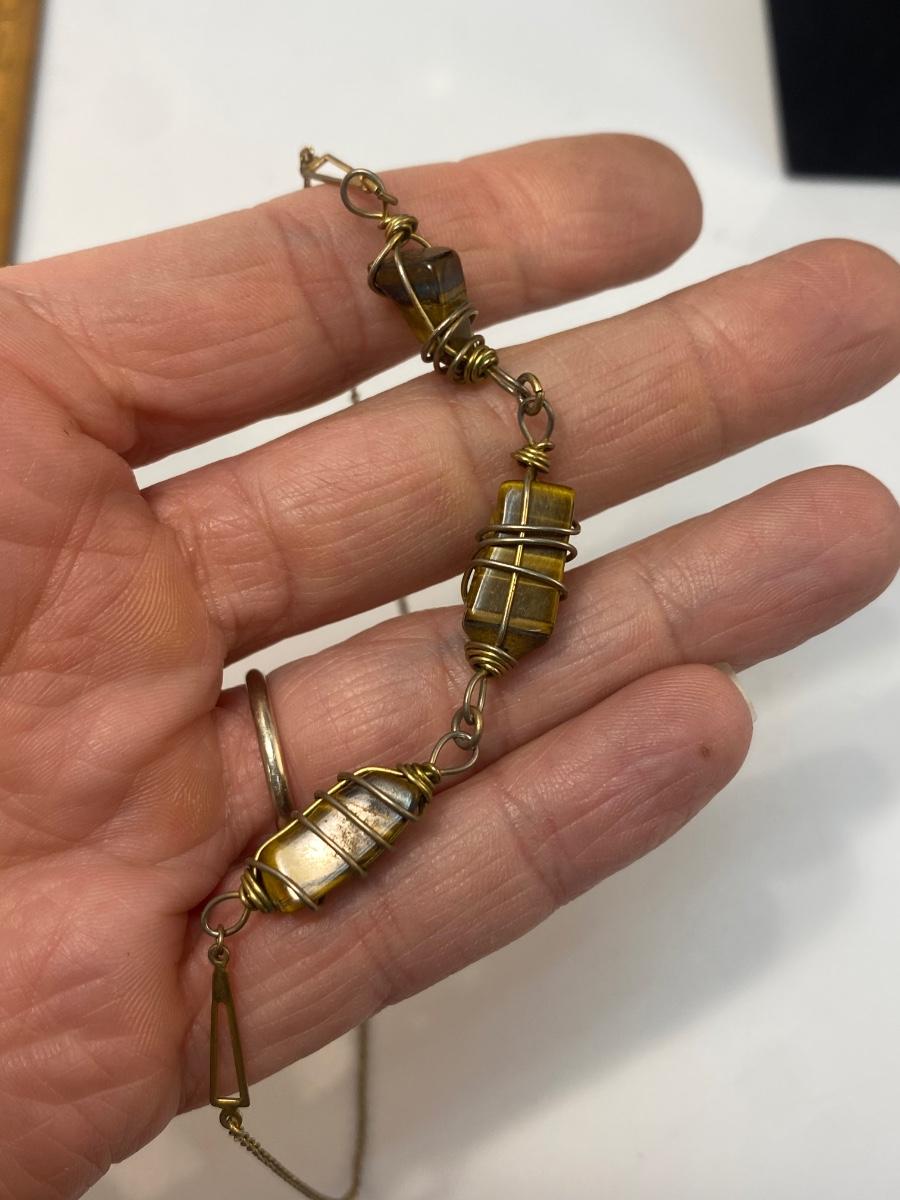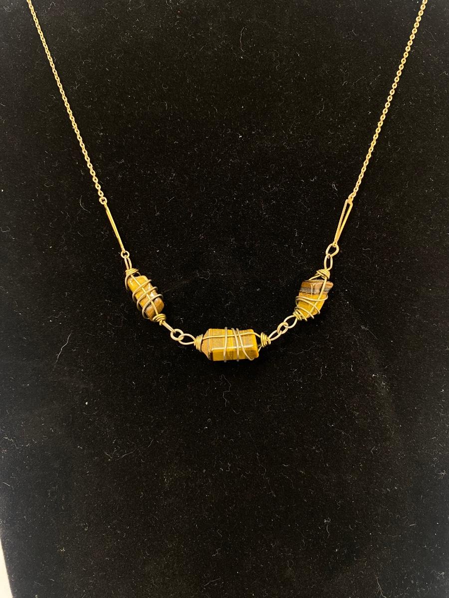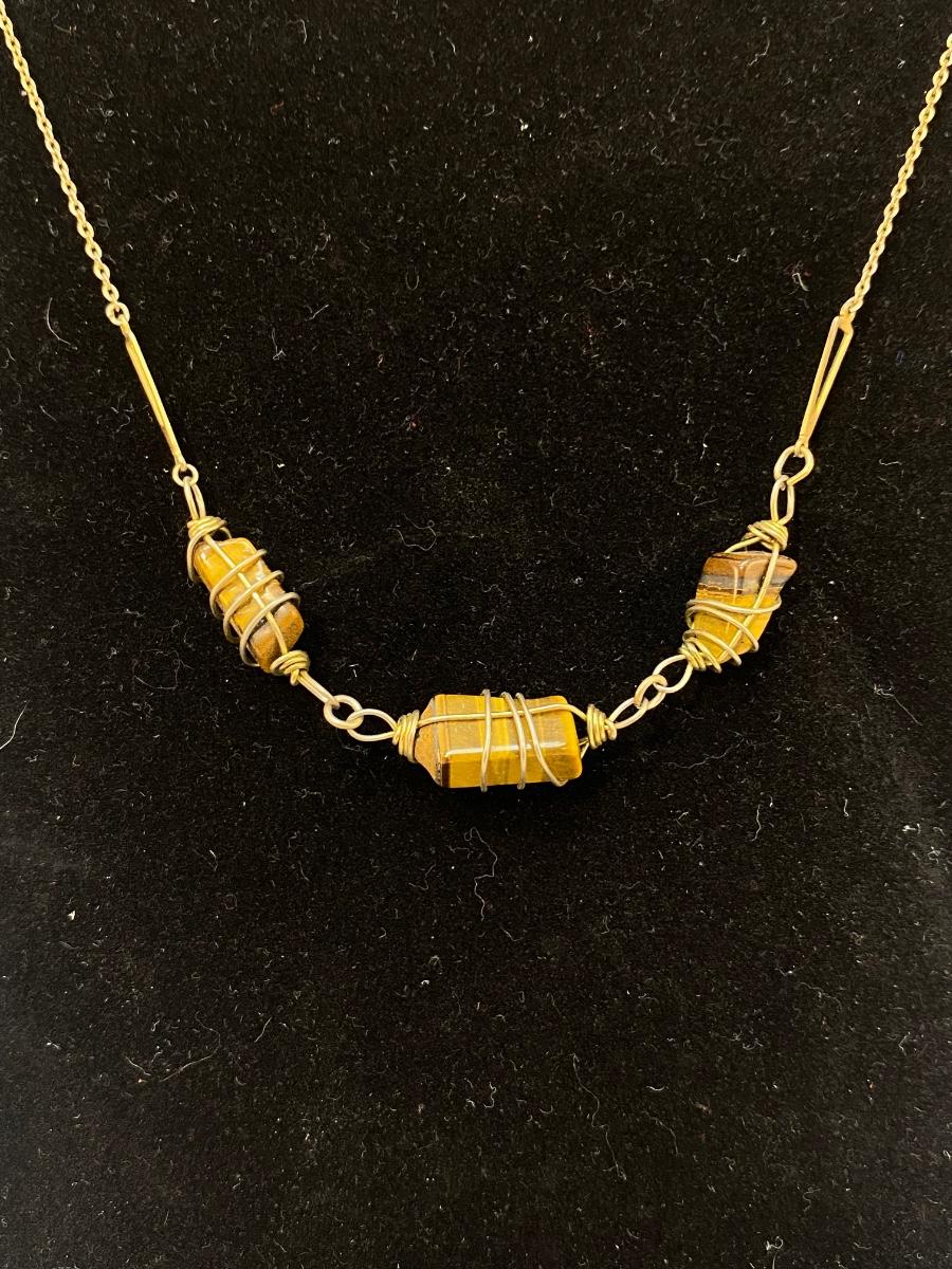 Gold Tone Wrapped Tigers Eye Three Stone Necklace Choker