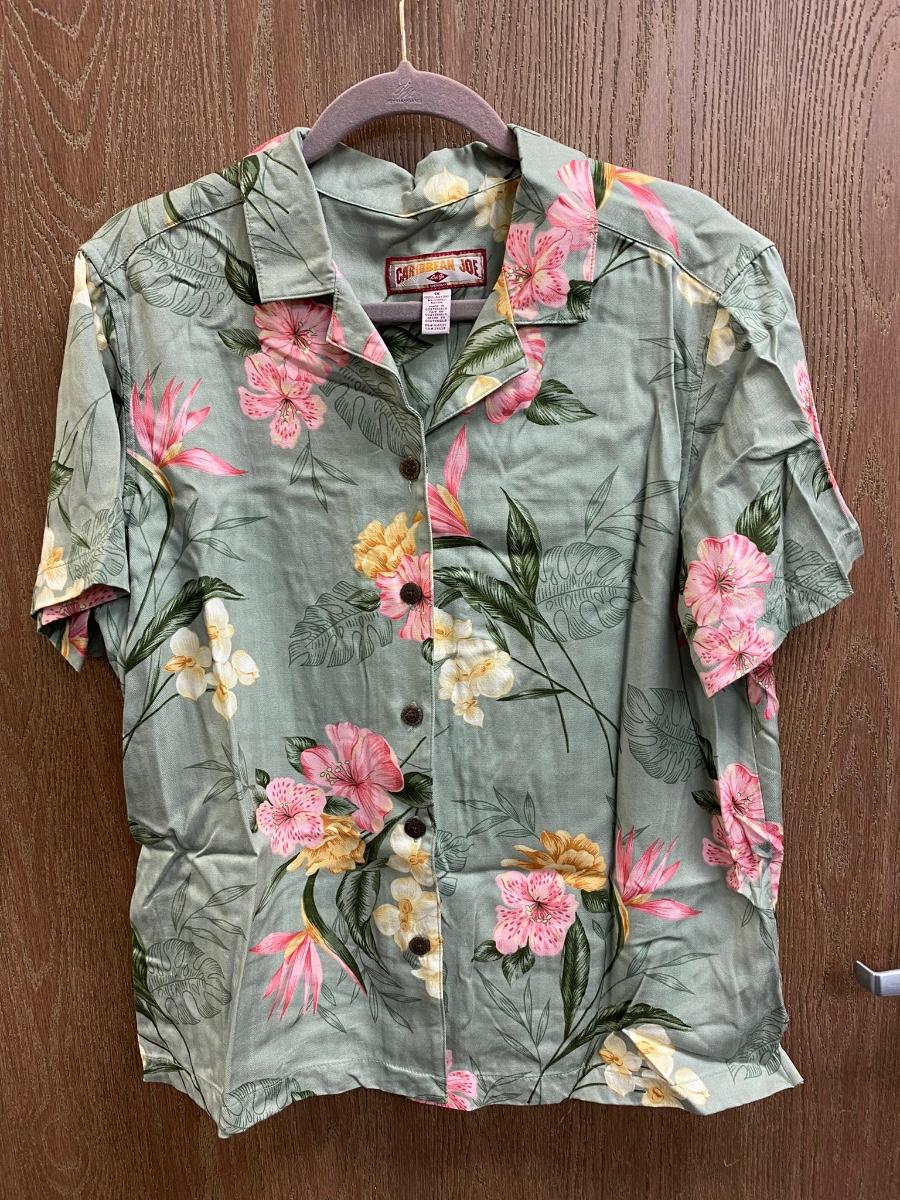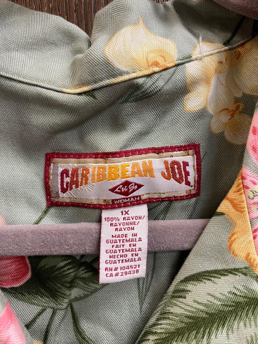 Ladies Womans Caribbean Joe Olive Green Floral Hawaiian Shirt 1X. In good condition.