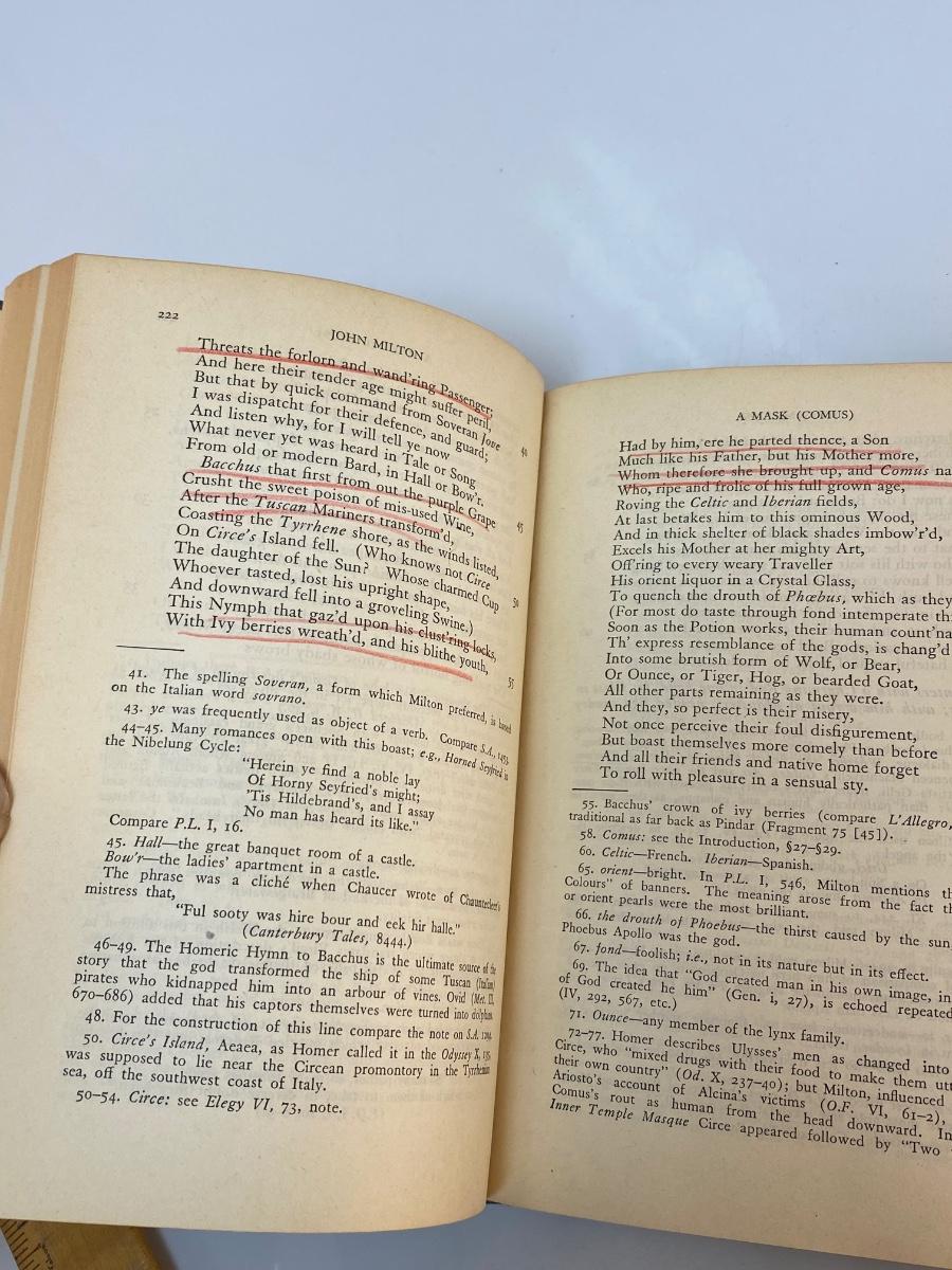 1937 John Milton Paradise Regained The Minor Poems and Samson Agonistes Book. in vintage read condition. Previous owner did some underlining in a few passages but not throughout the whole book.