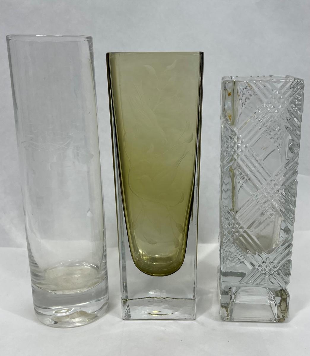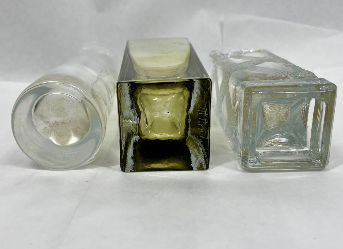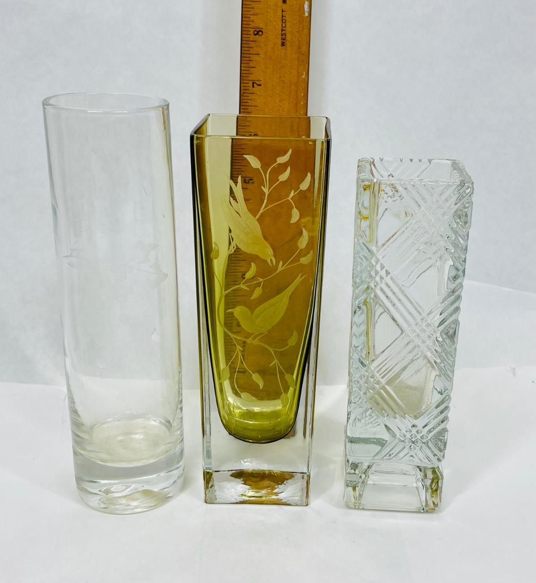 3 small bud vases Amber & Clear, Amber signed