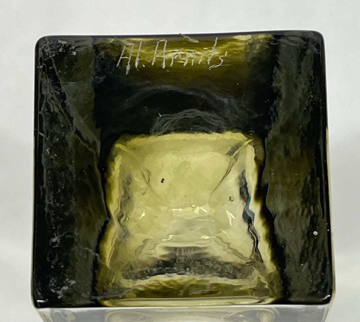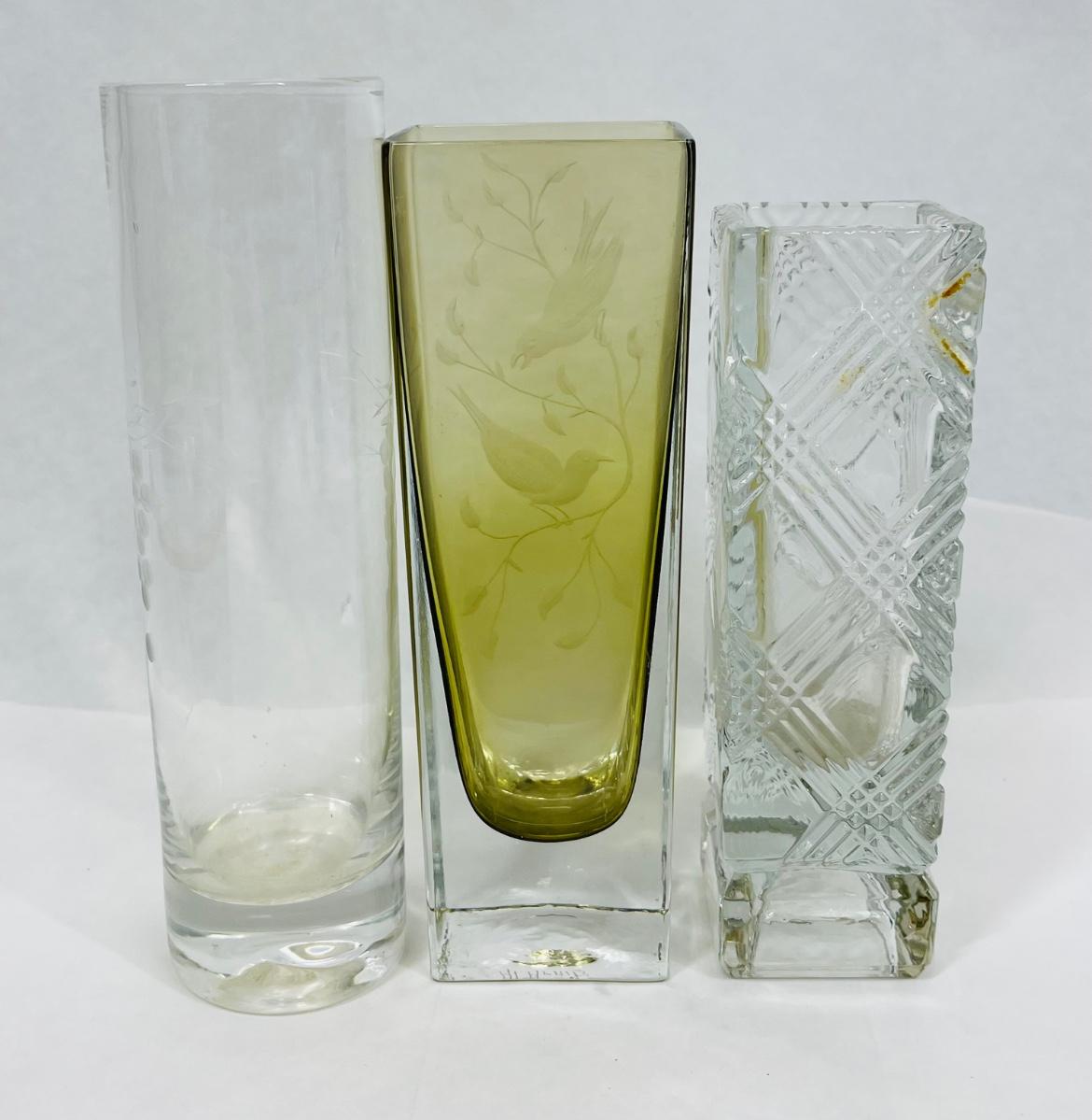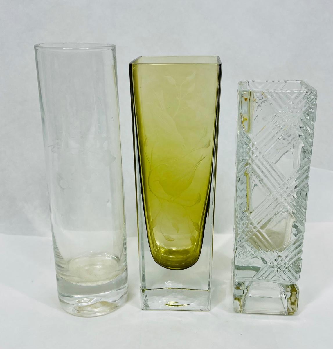 3 small bud vases Amber & Clear, Amber signed