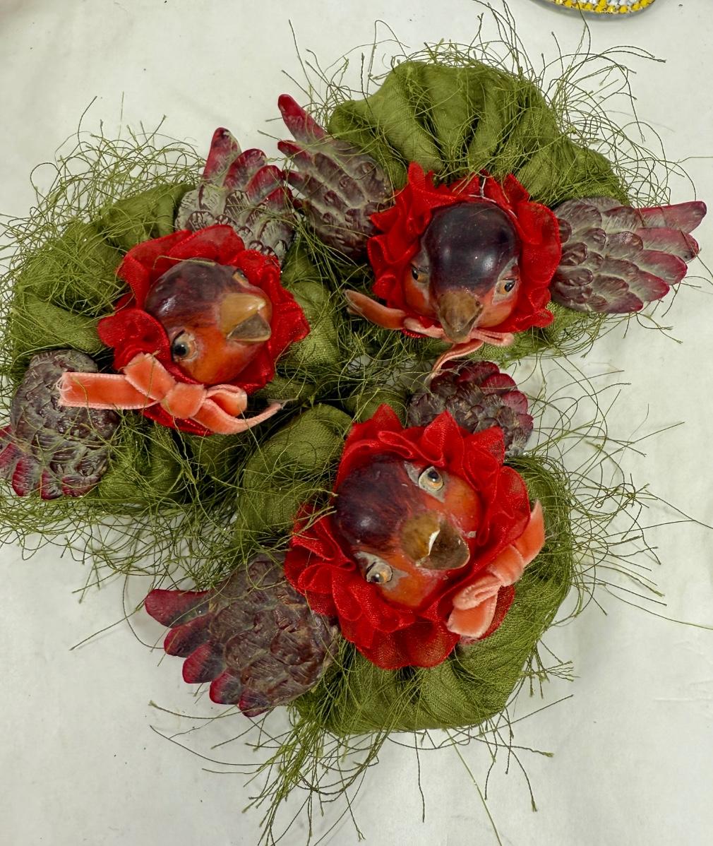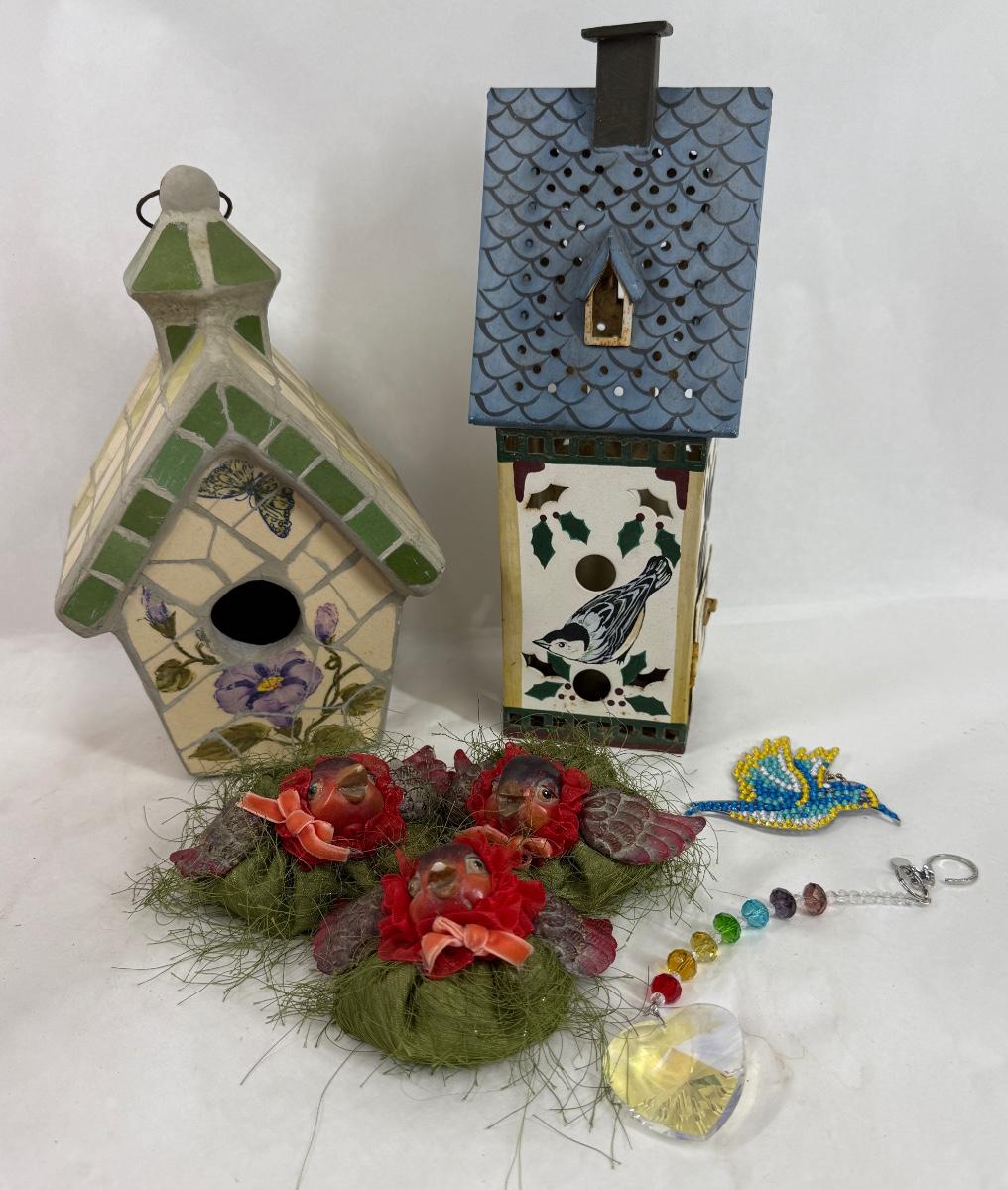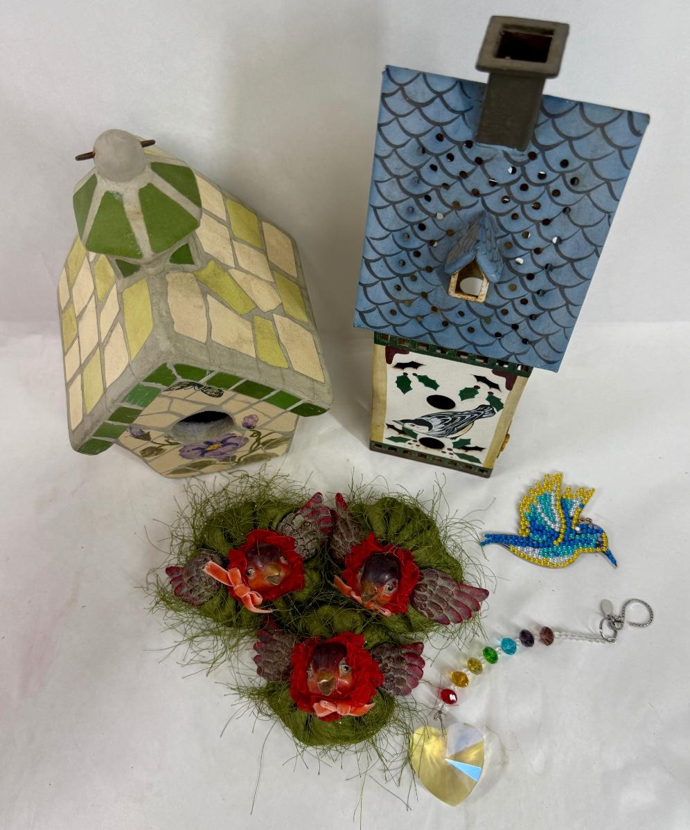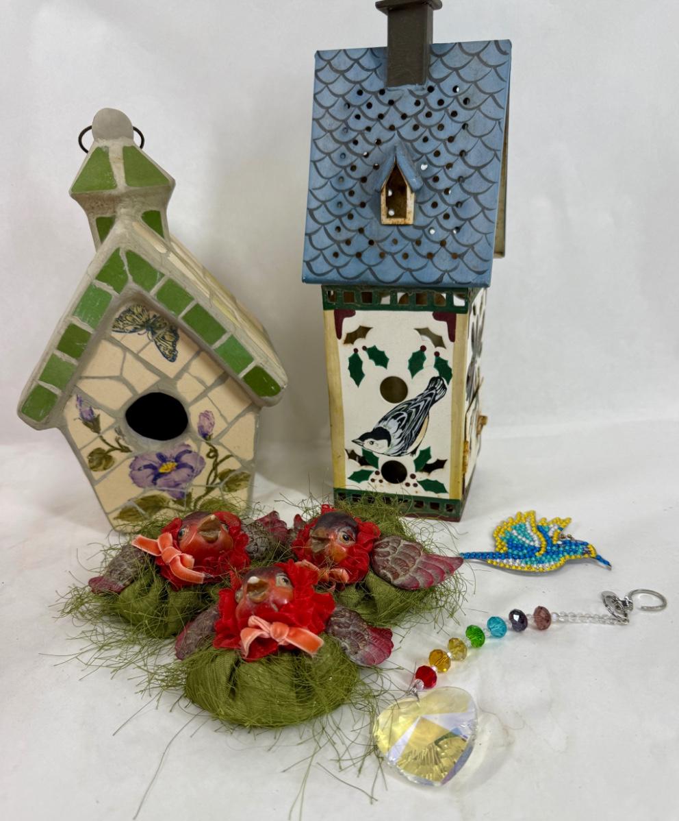 2 Bird House Decor Items, Small Red Birds in Nests, keychain, etc