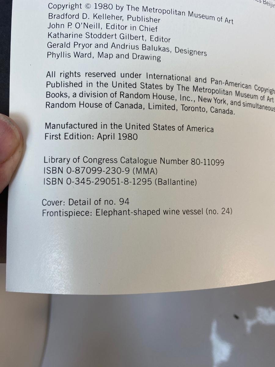The Metropolitan Museum of Art Treasures from The Bronze Age of China Book. Great reference book with photos.