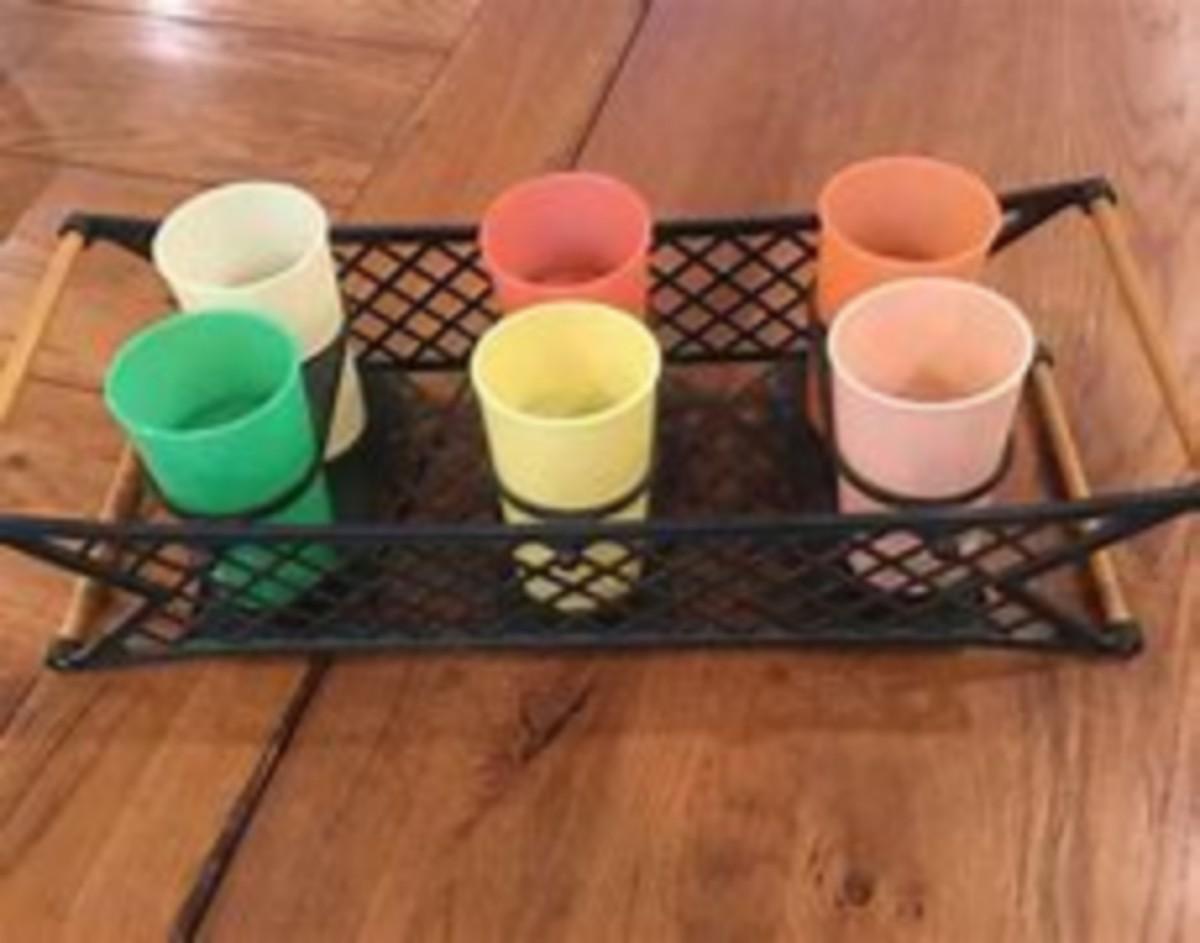 Vintage Burrite Plastic Tumbler Cup Drink Glass Caddy No Cups. In good condition. Holds 6 cups. Last photo is from the internet and is for description purposes only, looks like the Tupperware plastic drink tumbler cups would probably fit. Does not include cups.