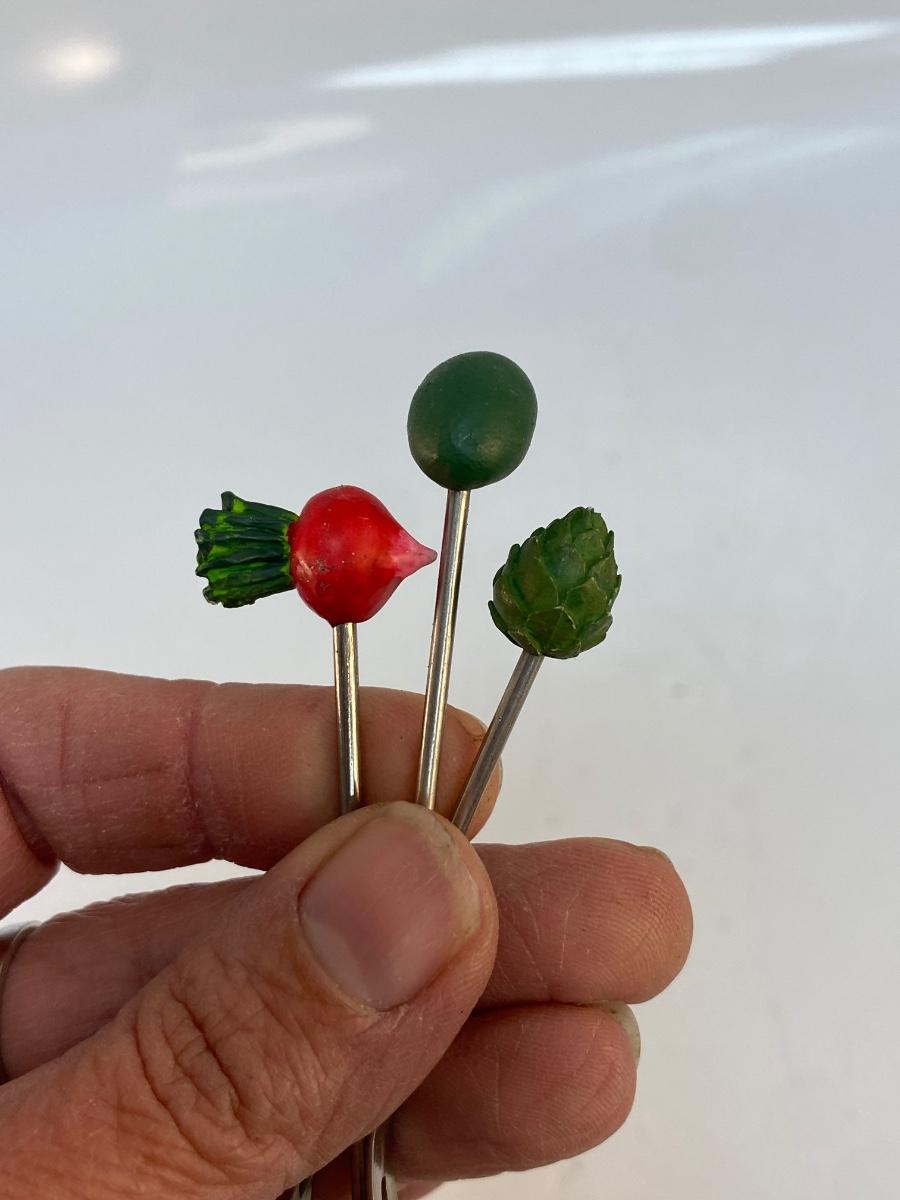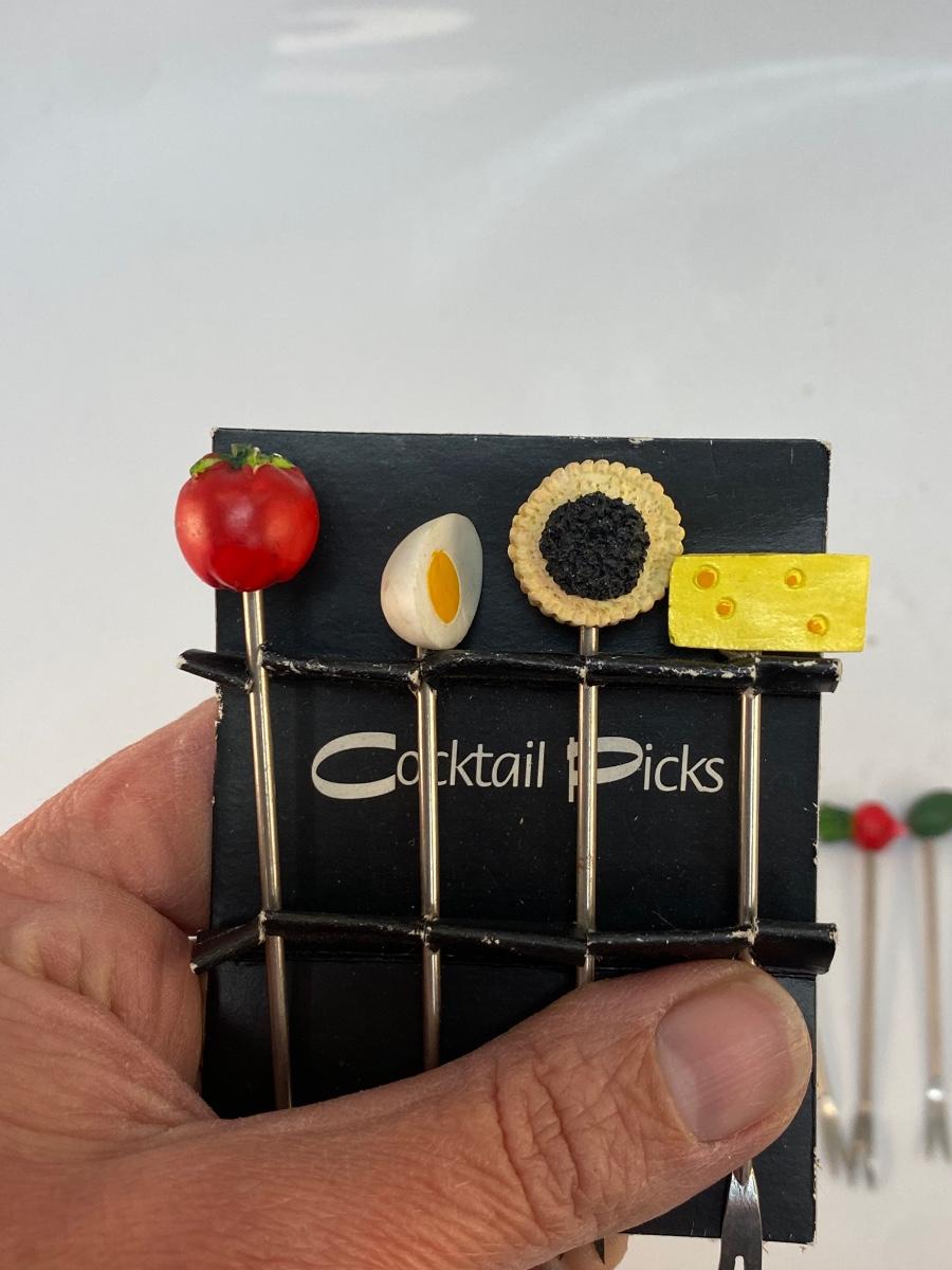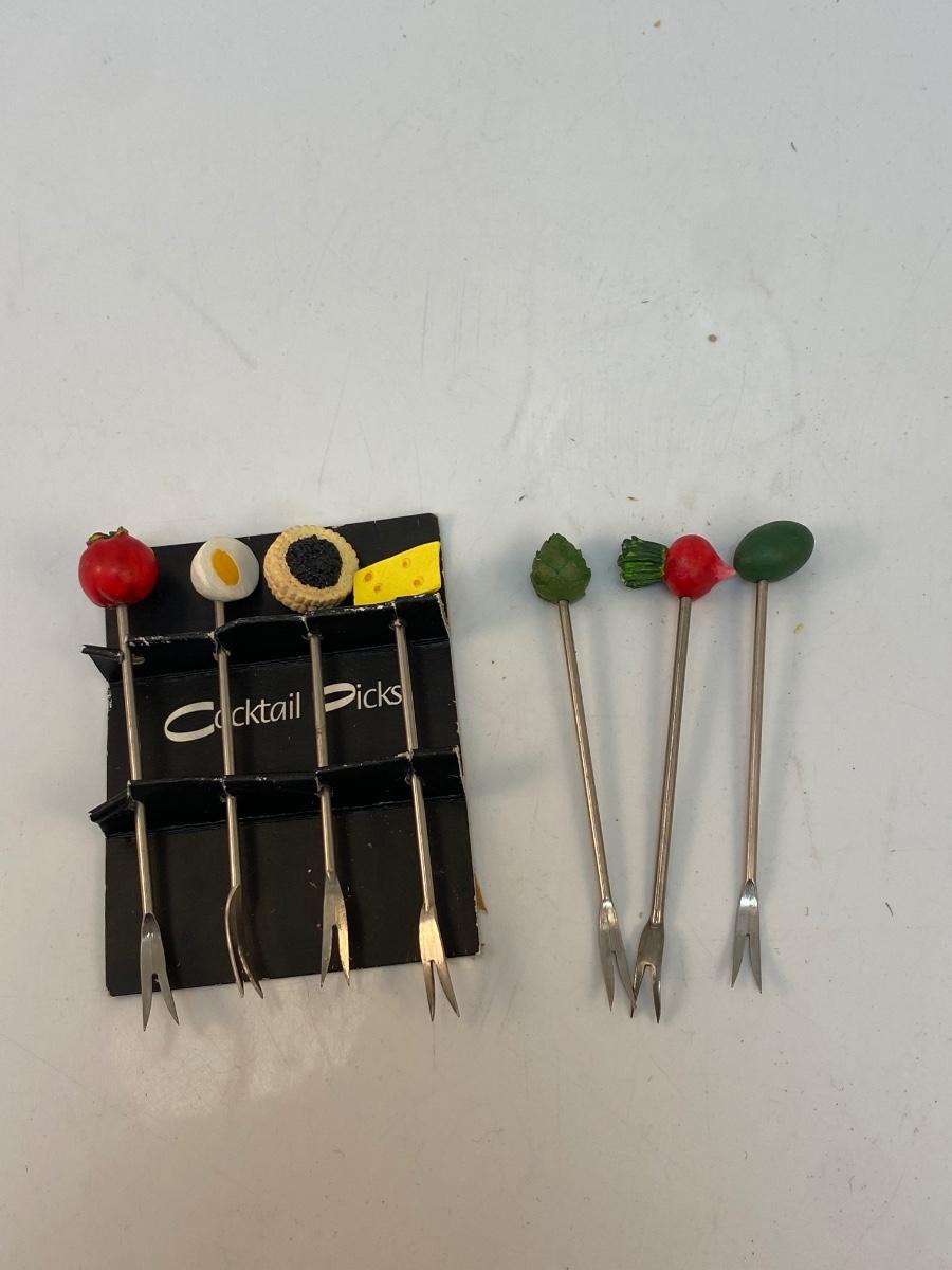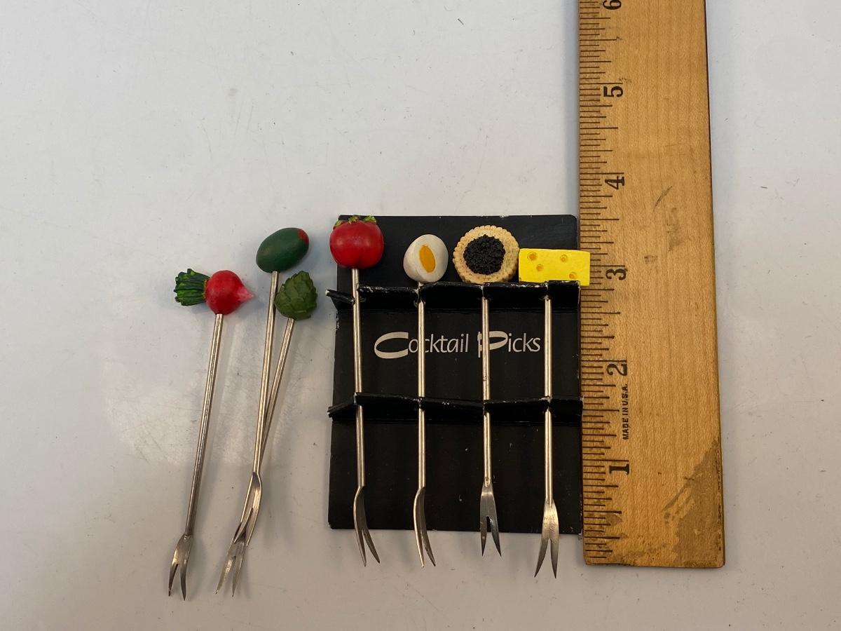 Novelty Food Fruit Vegetable End Cocktail Picks Forks. 7 total, in good condition.