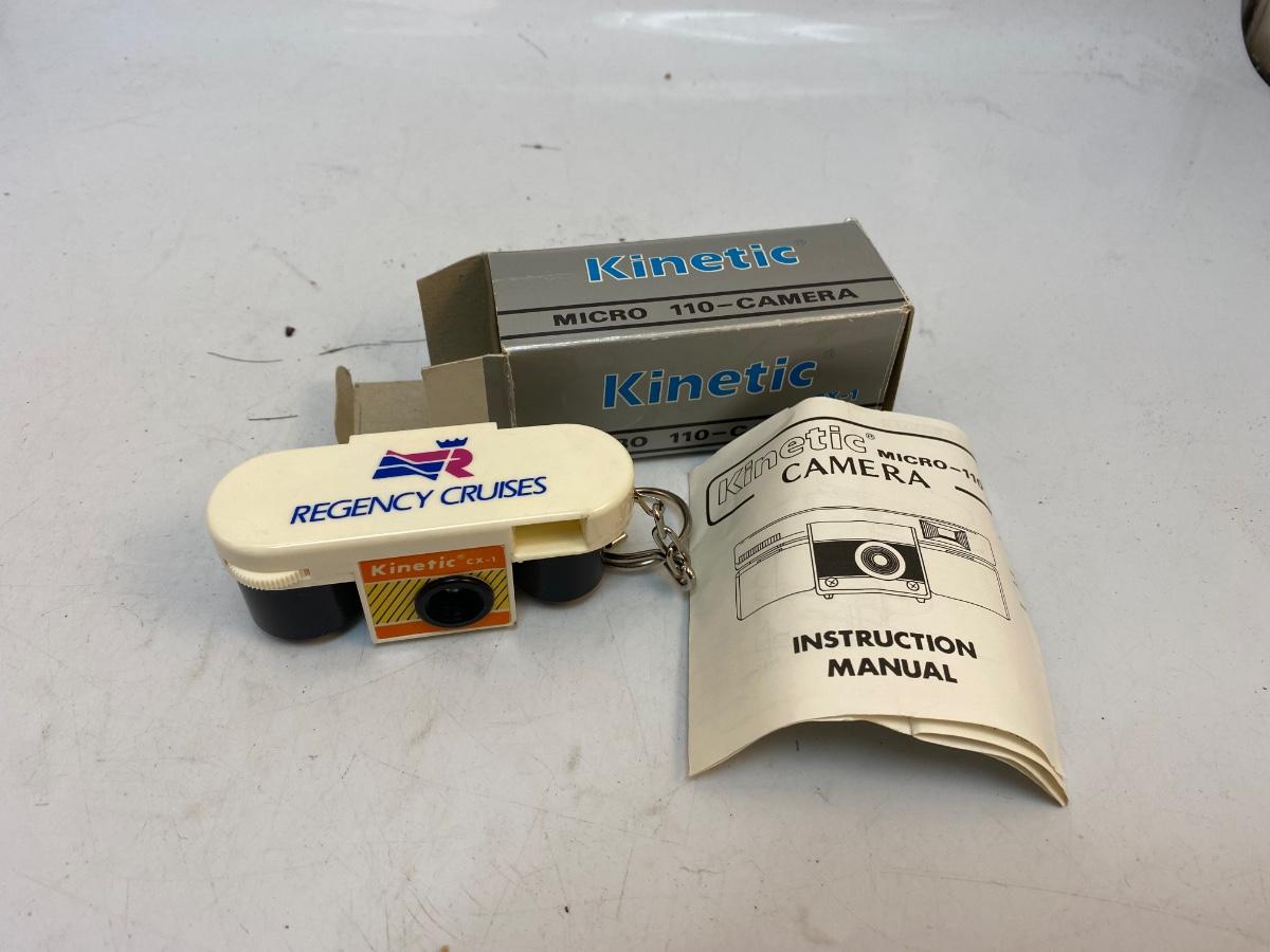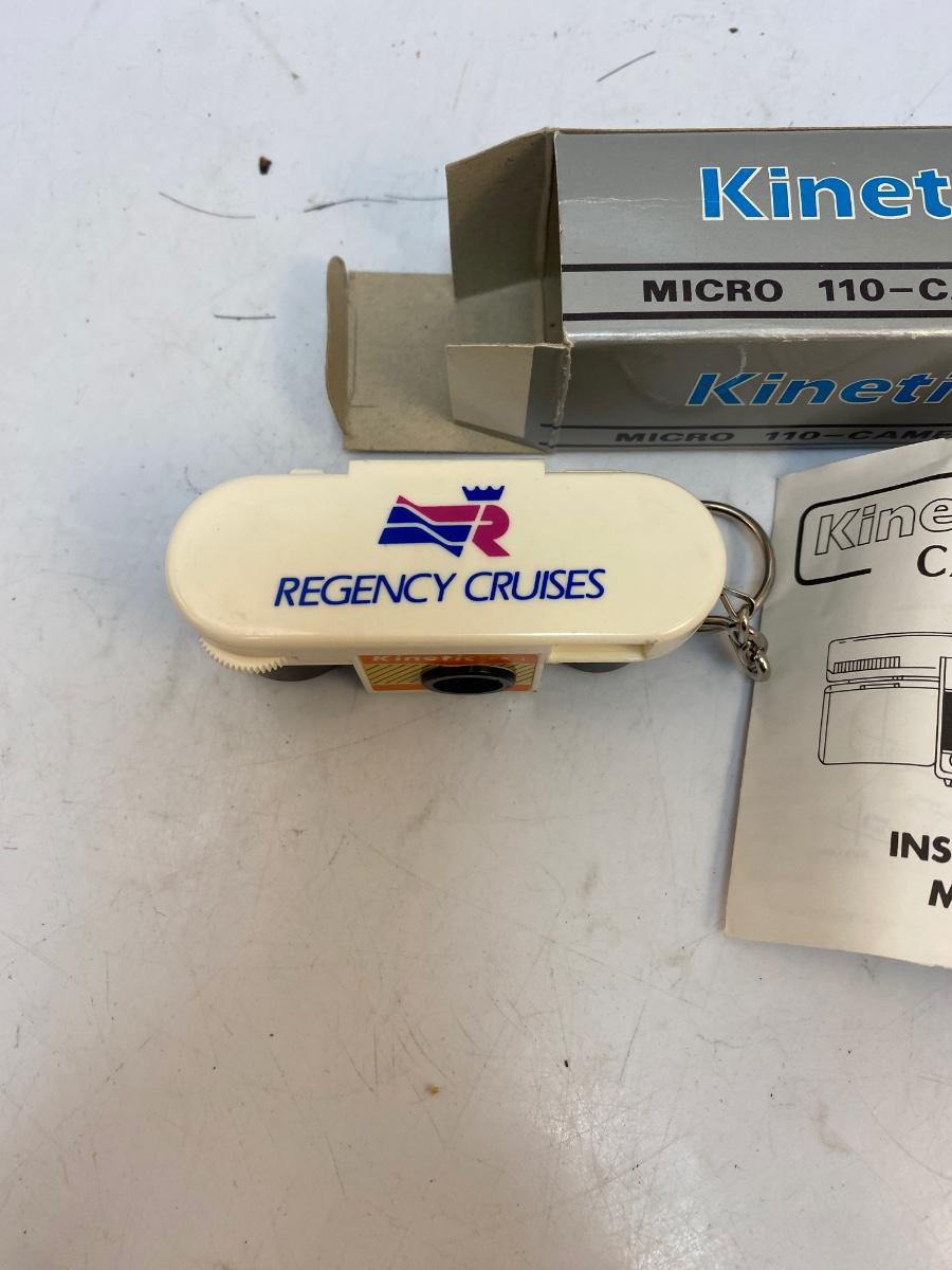 Vintage Kinetic Micro 110 Camera Regency Cruises with Film. Comes with original box and manual. Quality of film unknown, looks like the roll has been partially used.
