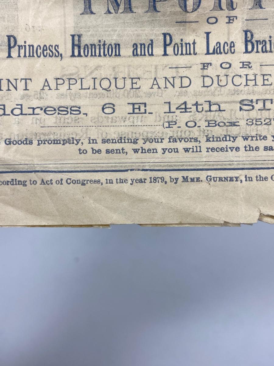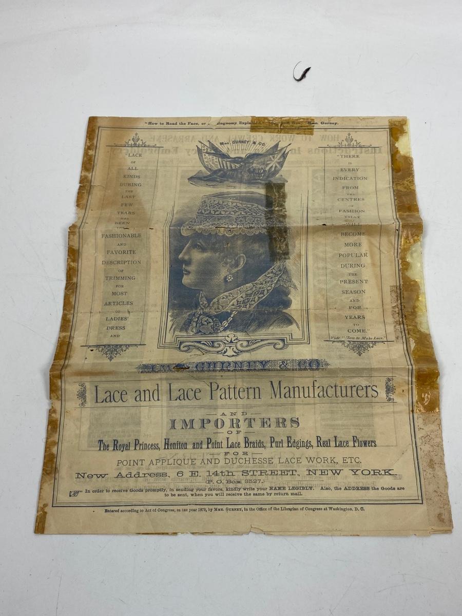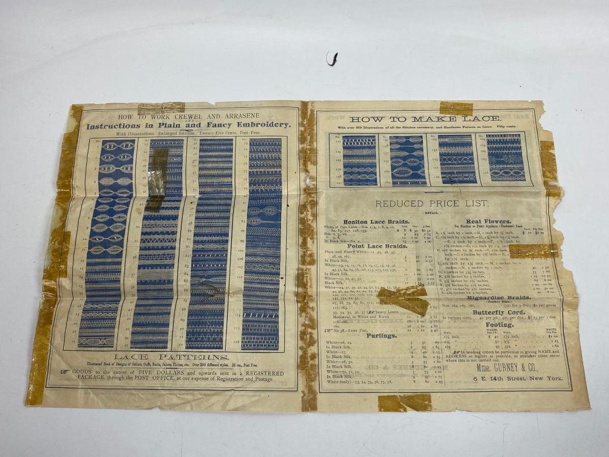 Antique 1879 Lace & Lace Patterns Brochure Gurney & Co.. In antique aged condition. Paper is fragile. Would display great framed.