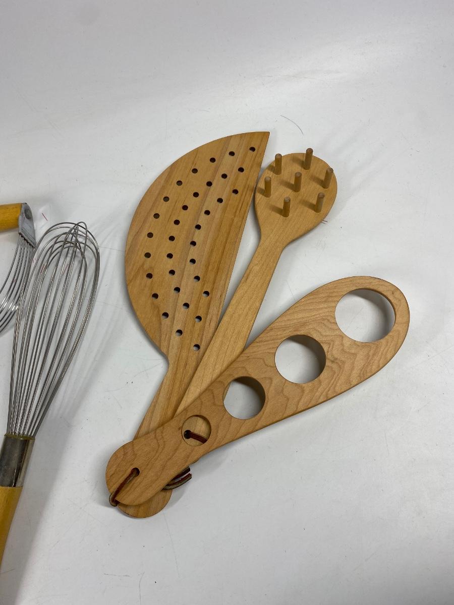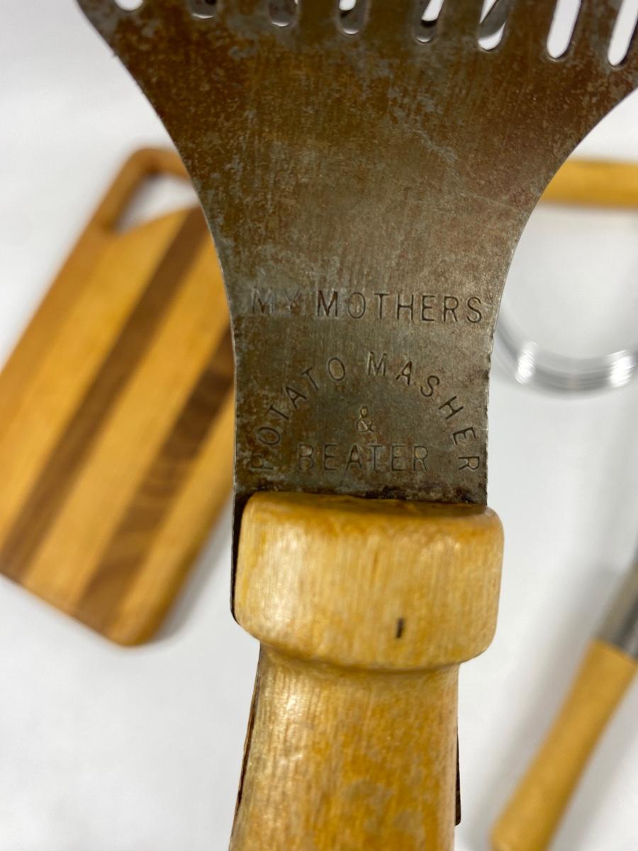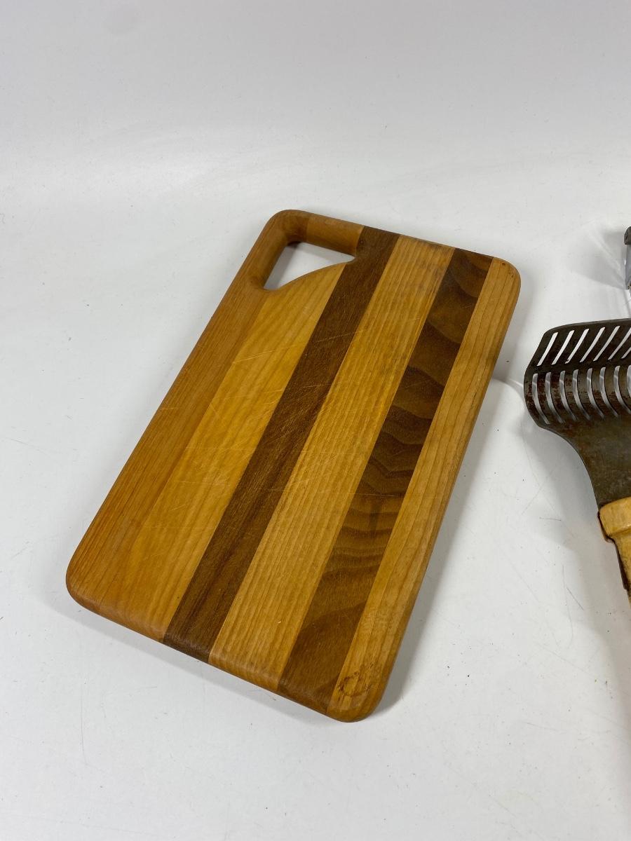 Wood Kitchen Utensil Lot Vintage & Modern Cutting Board Masher Pastry Cutter