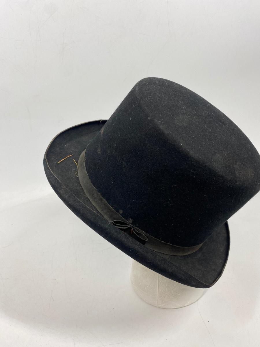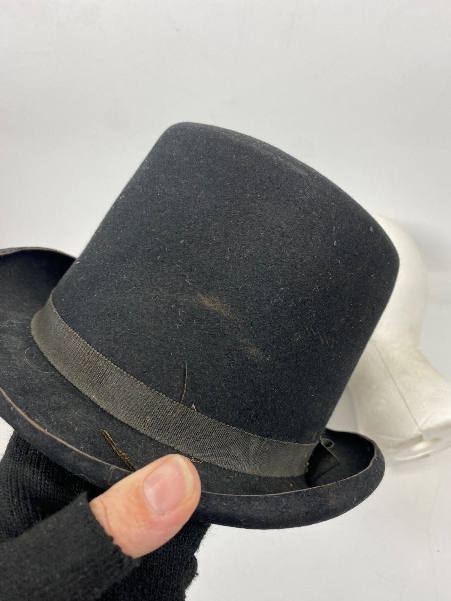 Vintage Black Pressed Felt Flocked Plastic Top Hat