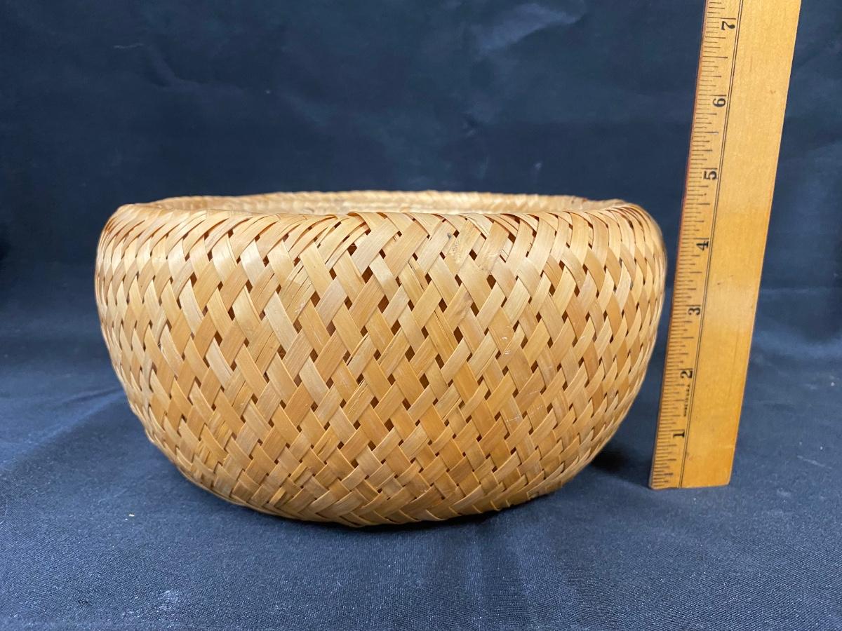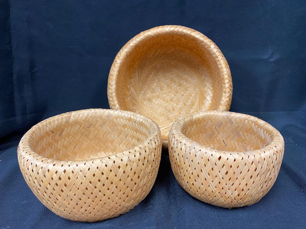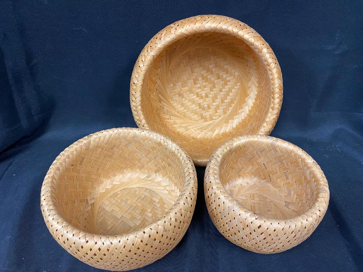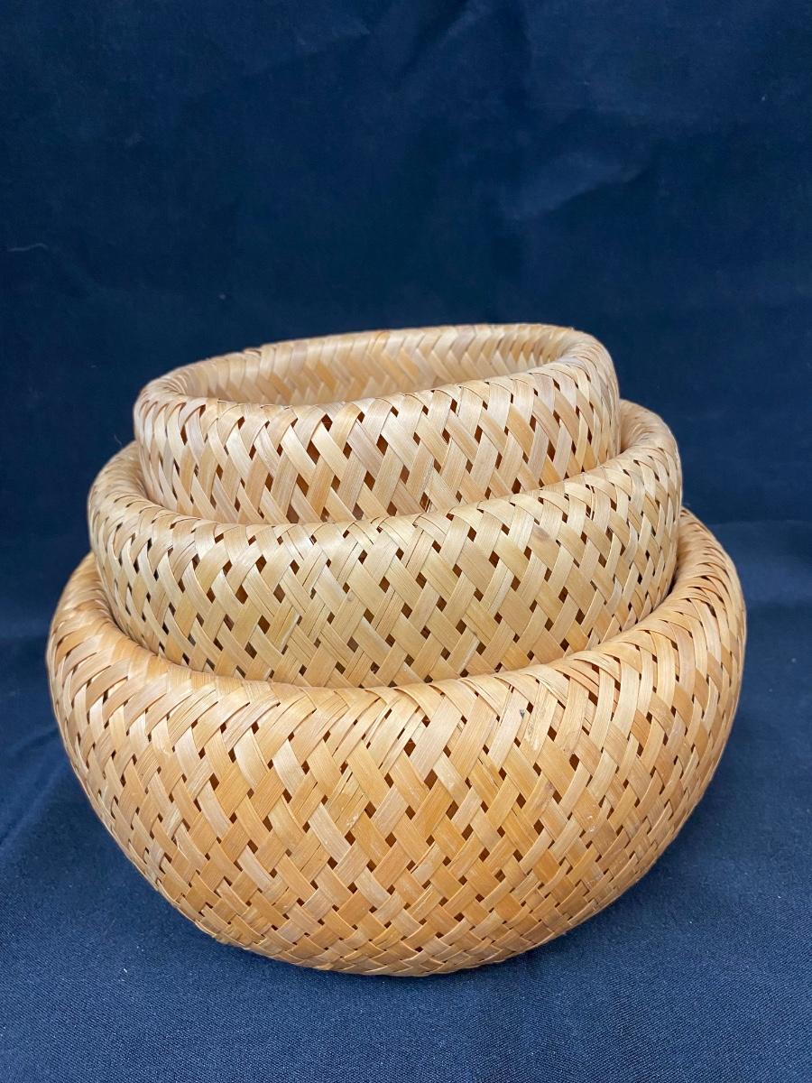 Set of Three Nesting Rattan Reed Grass Woven Basket Bowls