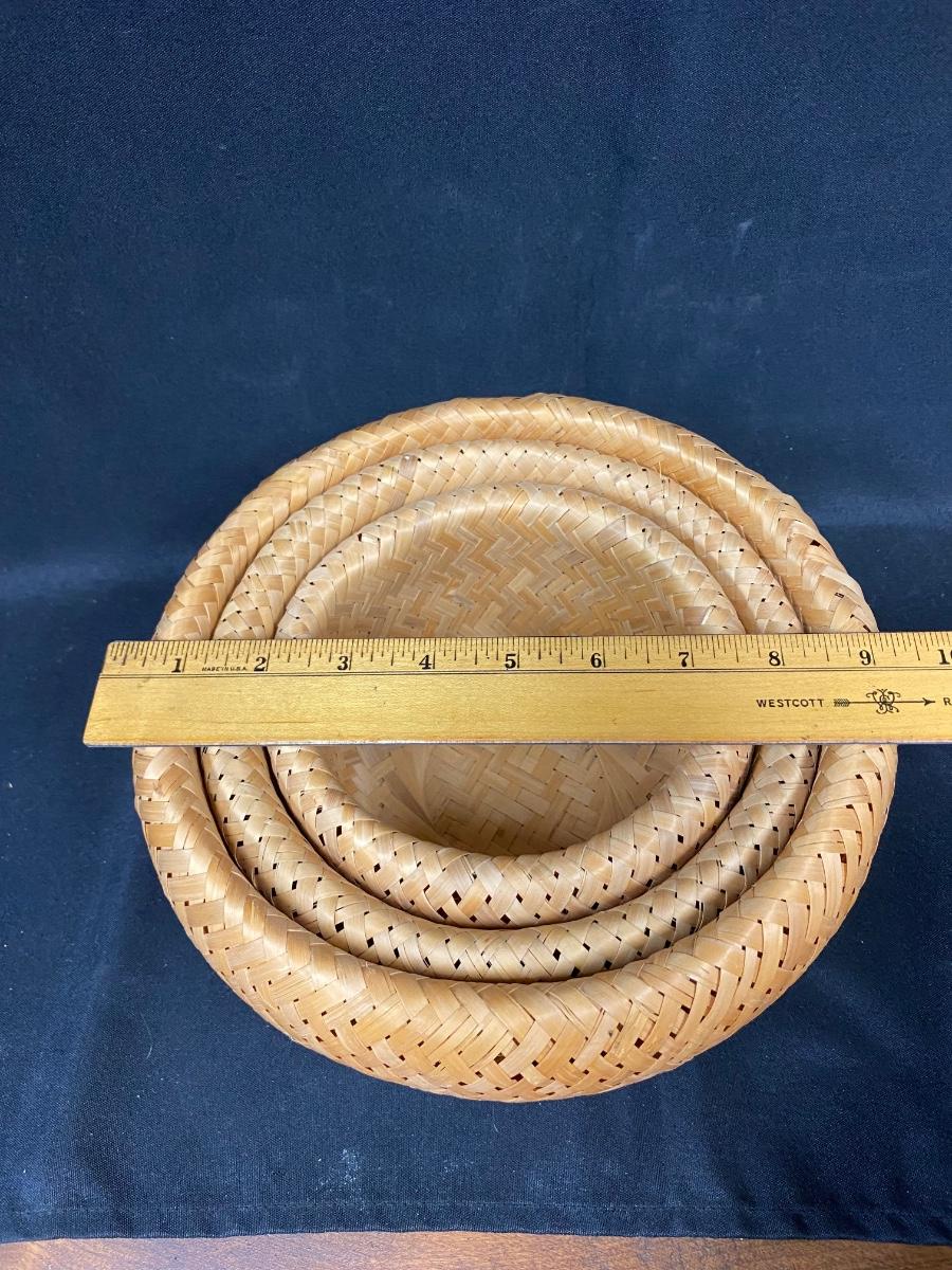 Set of Three Nesting Rattan Reed Grass Woven Basket Bowls. In good condition.