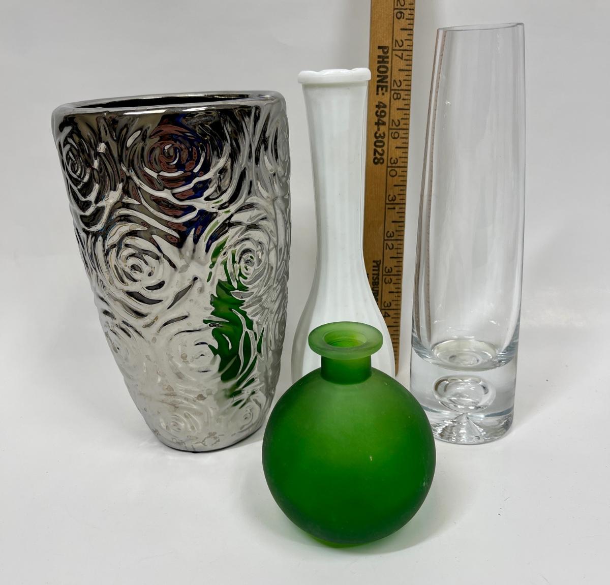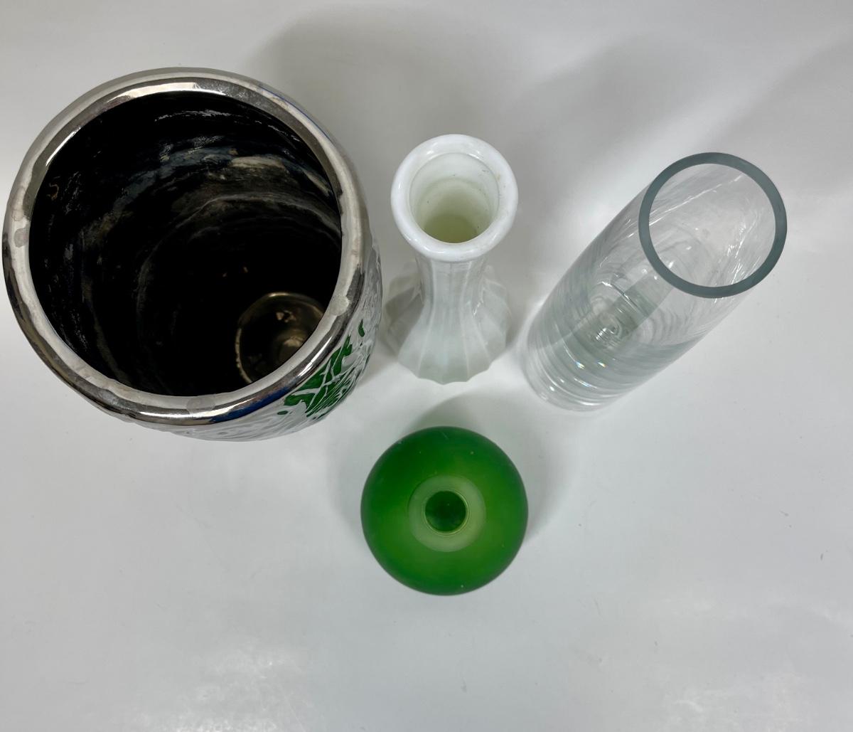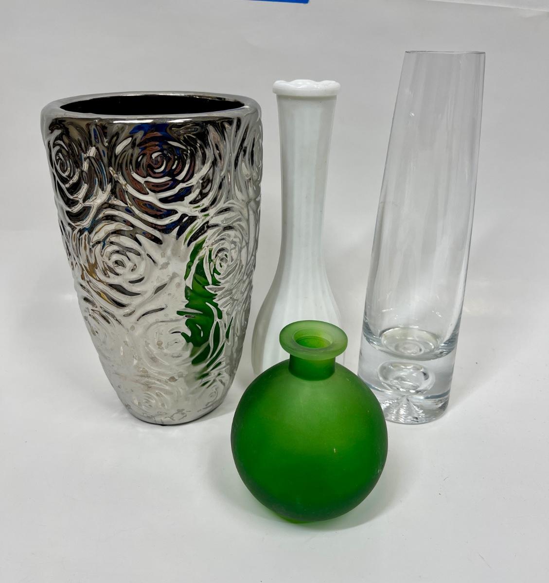 Various Vase Lot - ceramic silver green glass milk glass clear