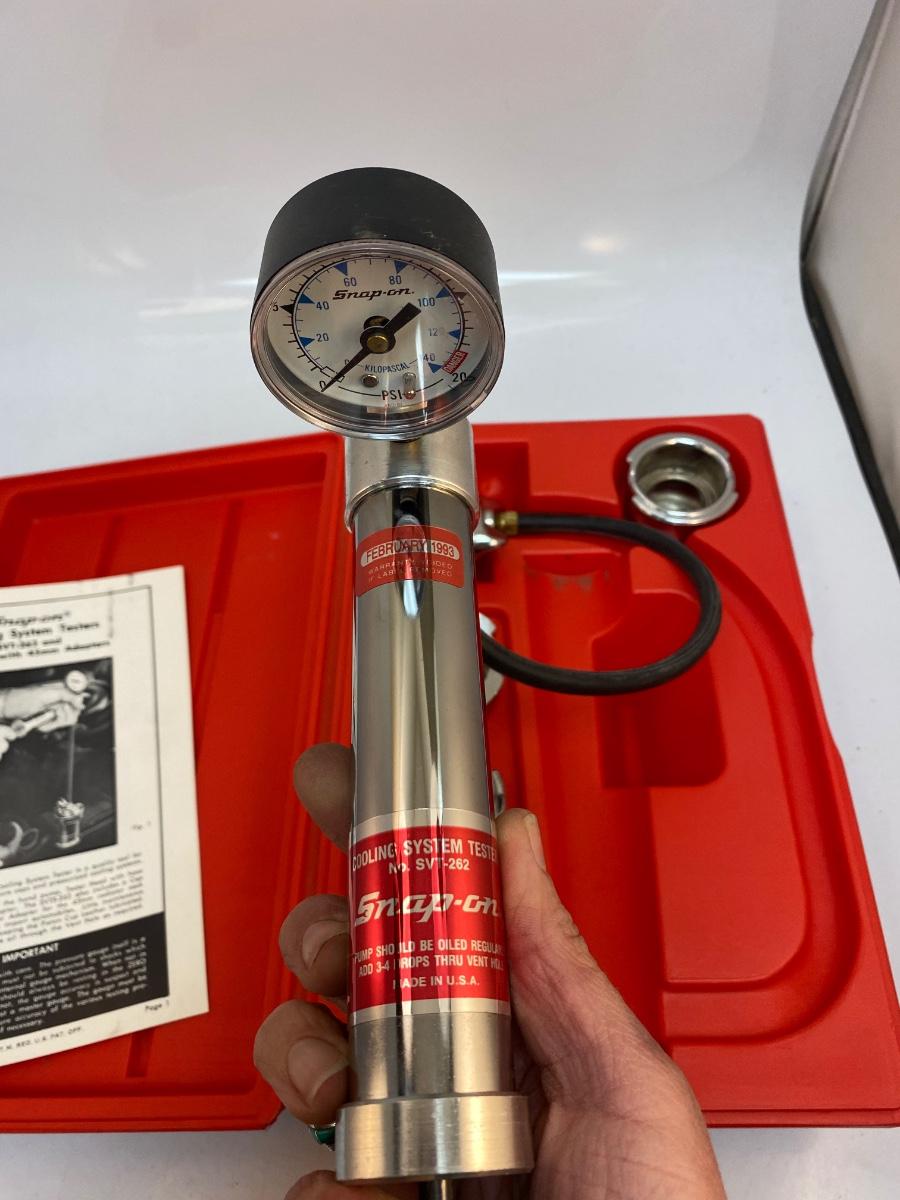 Snap-On Cooling System Tester in Carry Case. looks very clean, possibly unused or barely used. Complete with instructions.