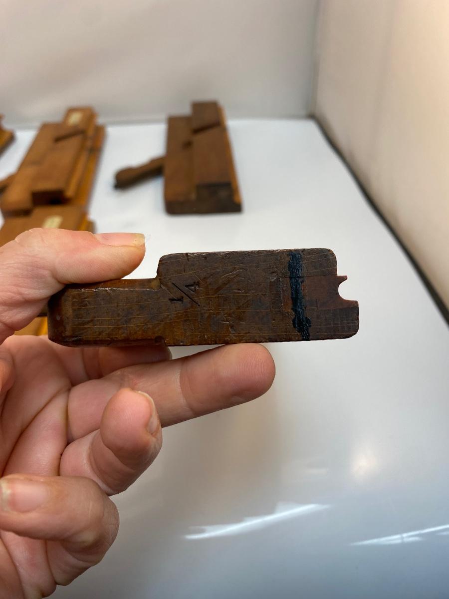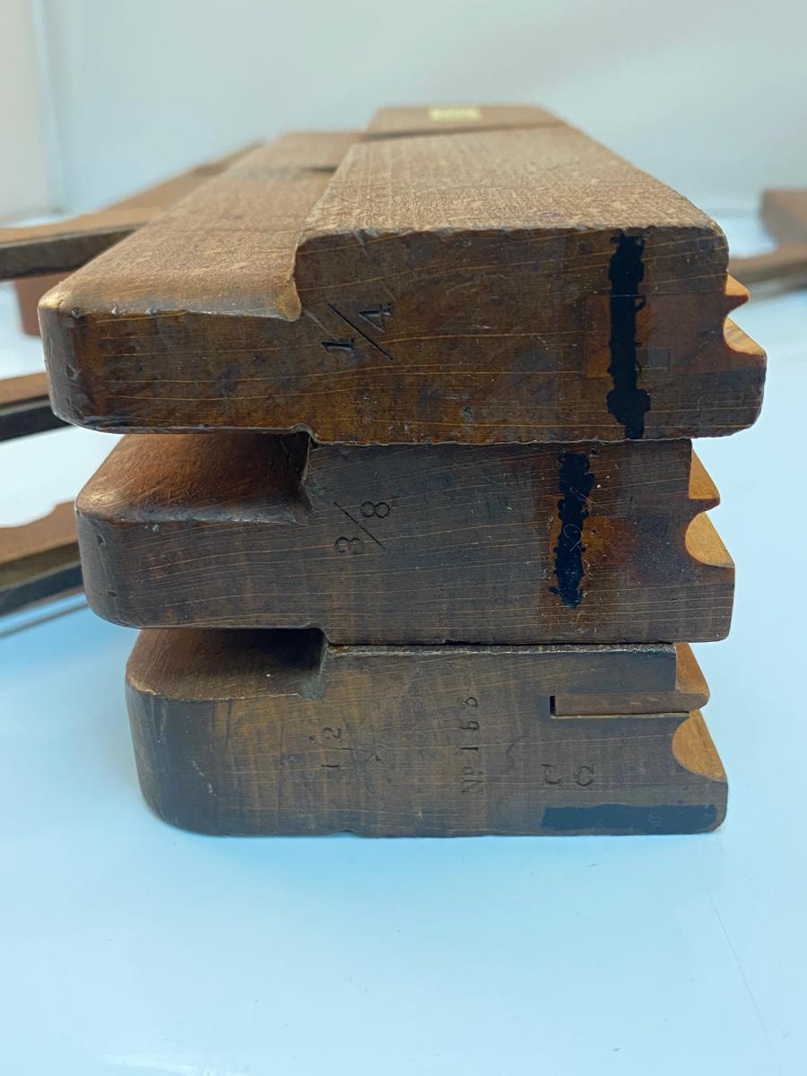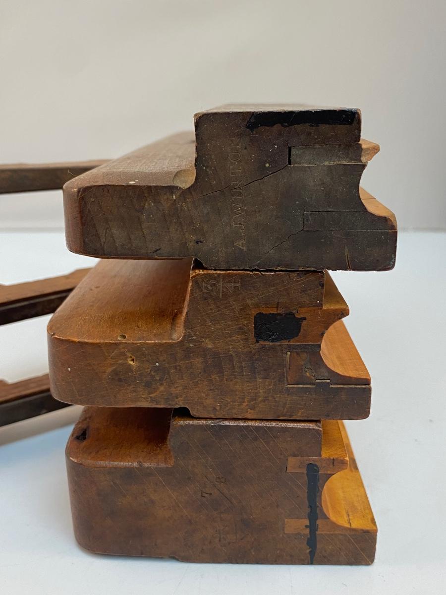 Set of 6 Extreme Rounding Curved Moulding Planes. Antique planes ranging from 1/4" to 7/8", sizes stamped on end.