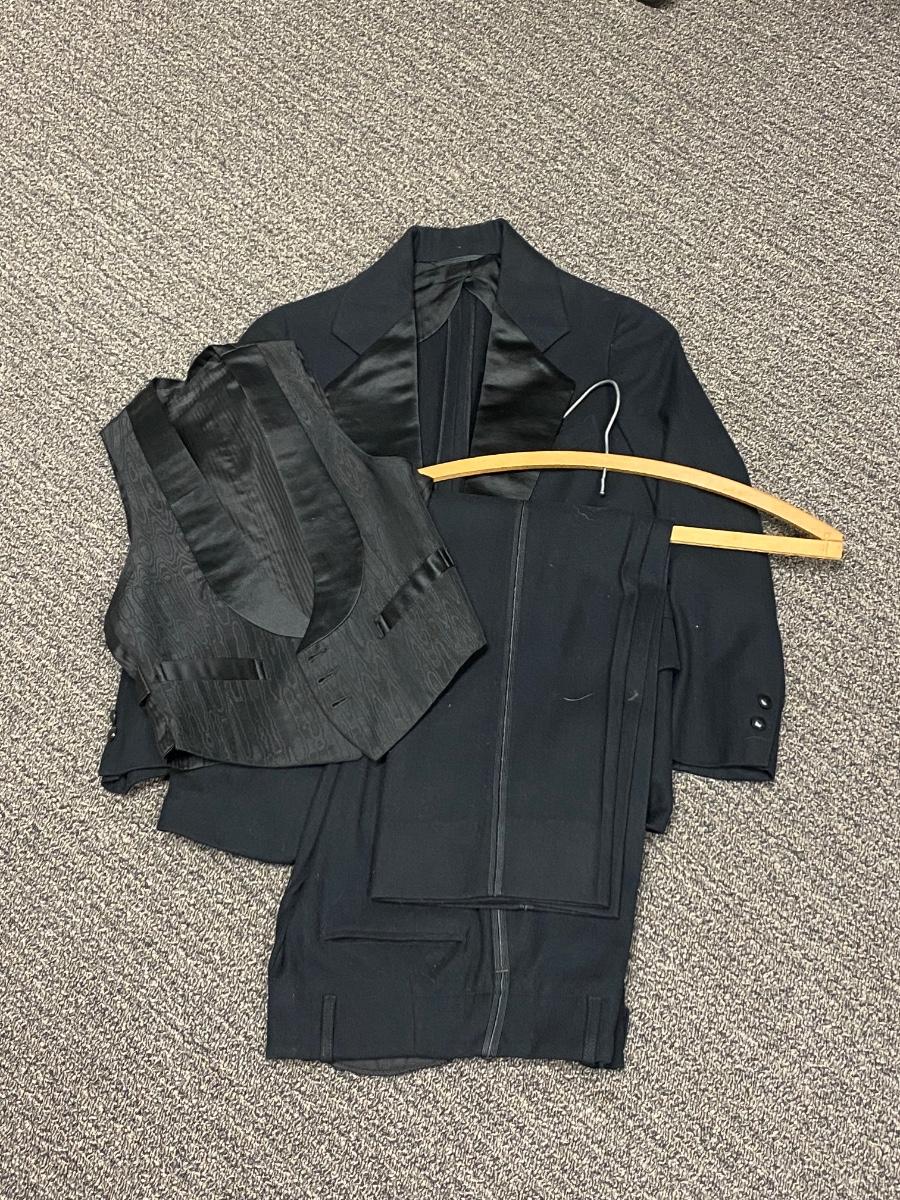 Vintage Youth Size Black Tuxedo Suit Formal Wear. In good vintage condition. Youth size, vest is 15" across chest and coat is 16". May have light discolor but in overall wearable condition.