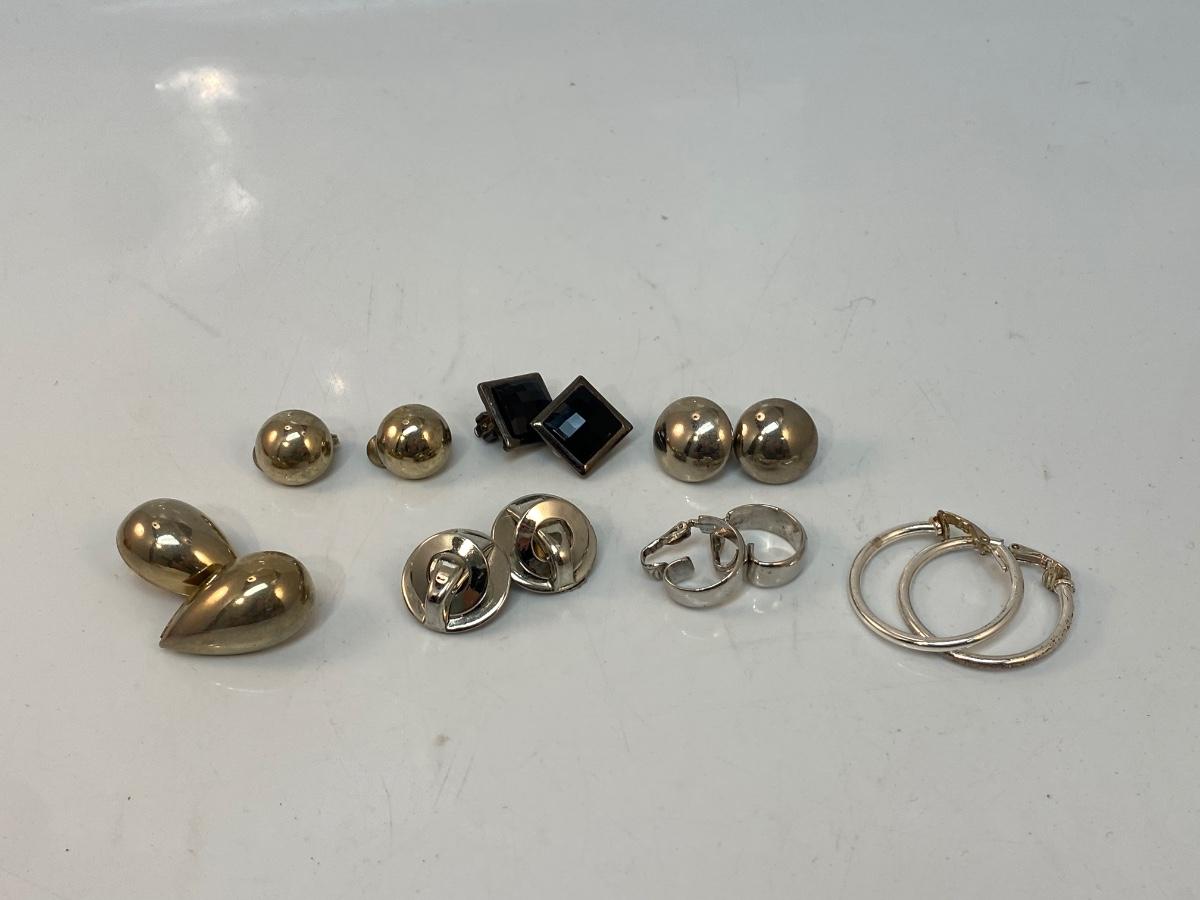 Lot of Silver Tone Fashion Costume Clip Style Earrings 7 Pairs. No sterling marks, all fashion earrings.