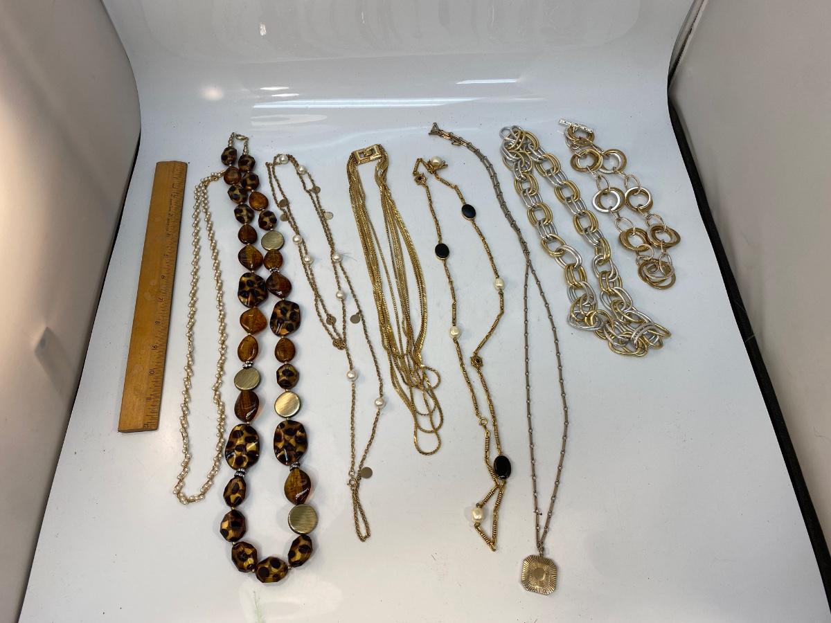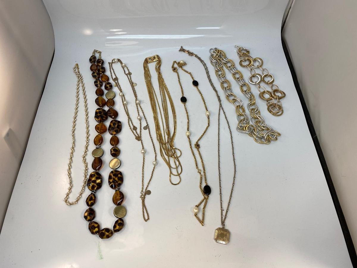 Lot of 8 Gold Tone Fashion Costume Jewelry Necklaces