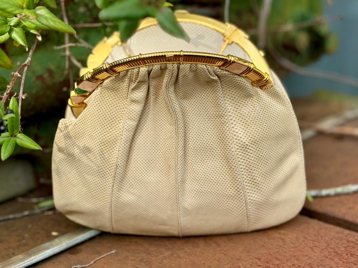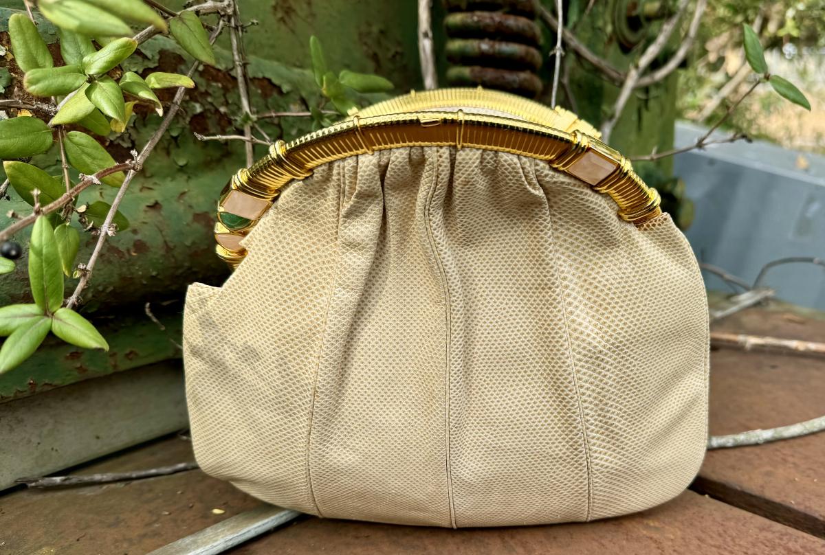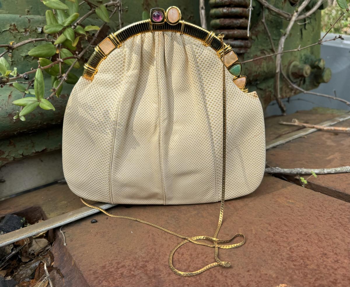 Vintage Judith Leiber Beige Lizard Clutch