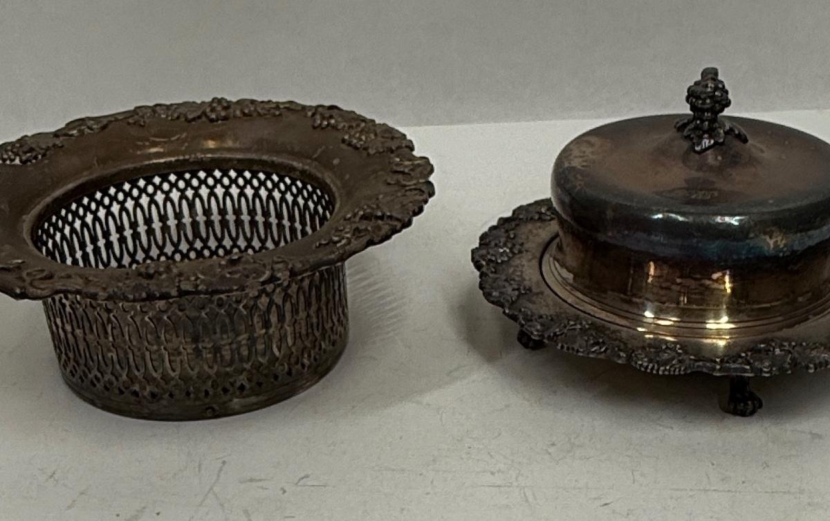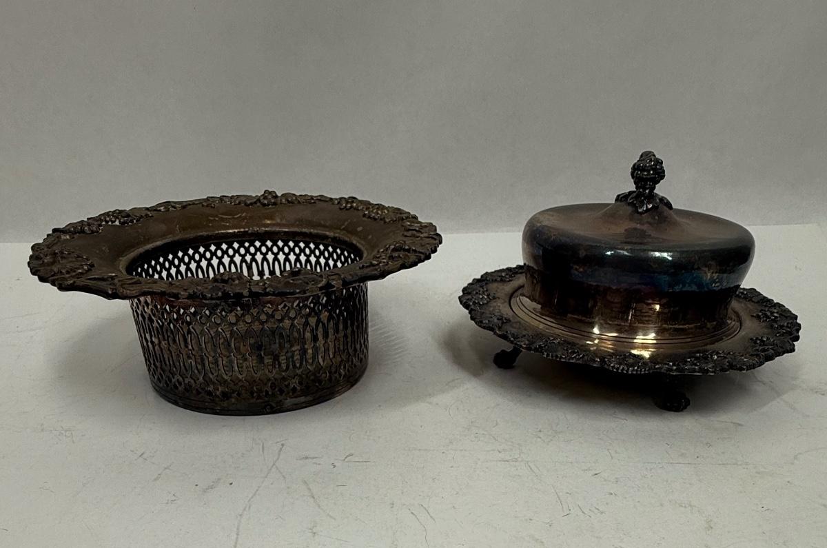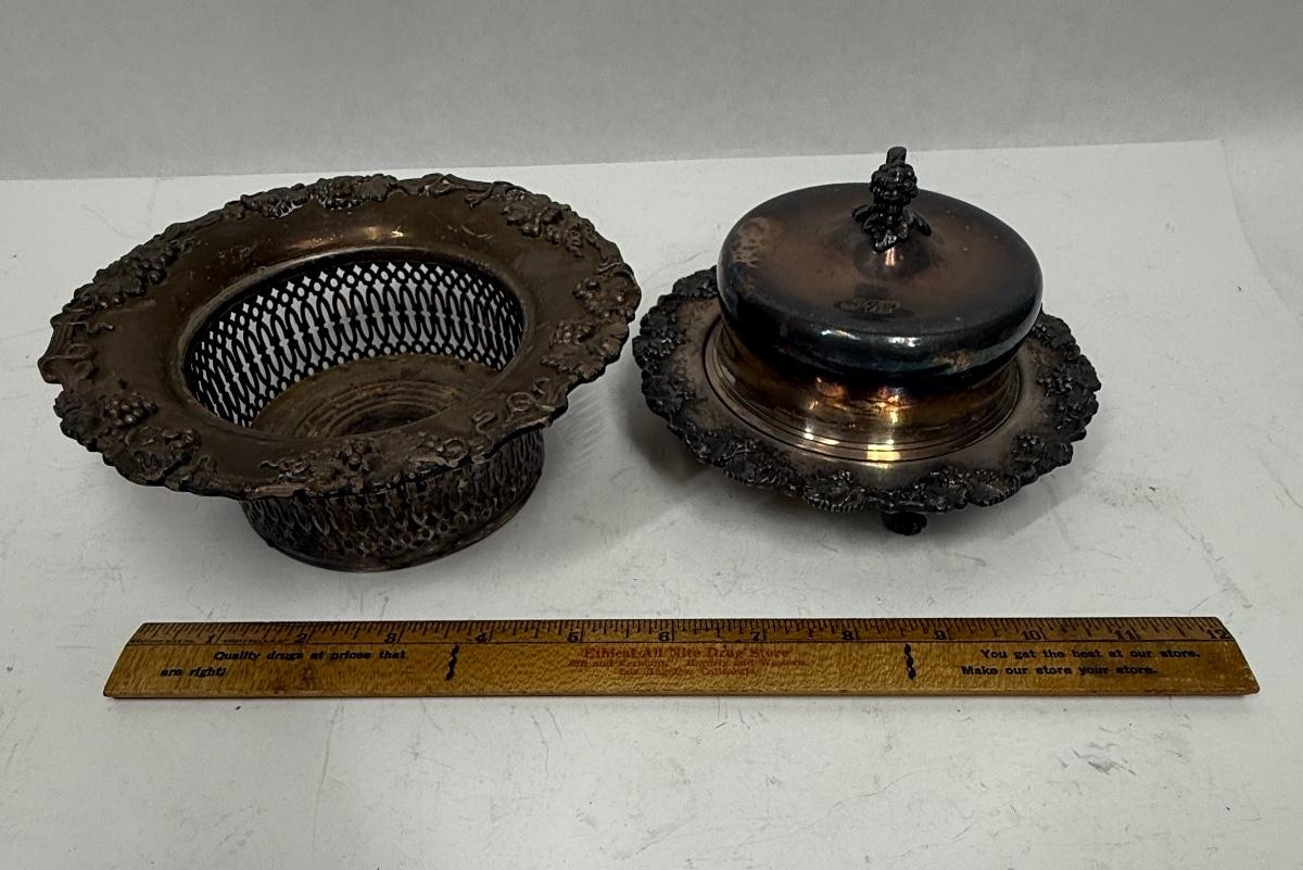 Antique Sheffield Silver-plate Lot Vintage Serving Pieces Butter Dish & Bottle Coaster