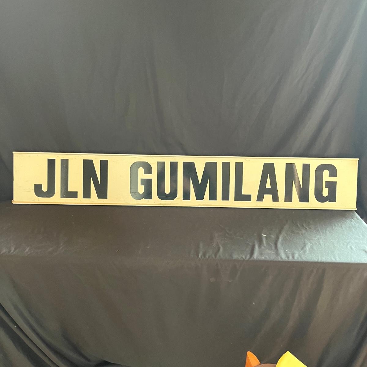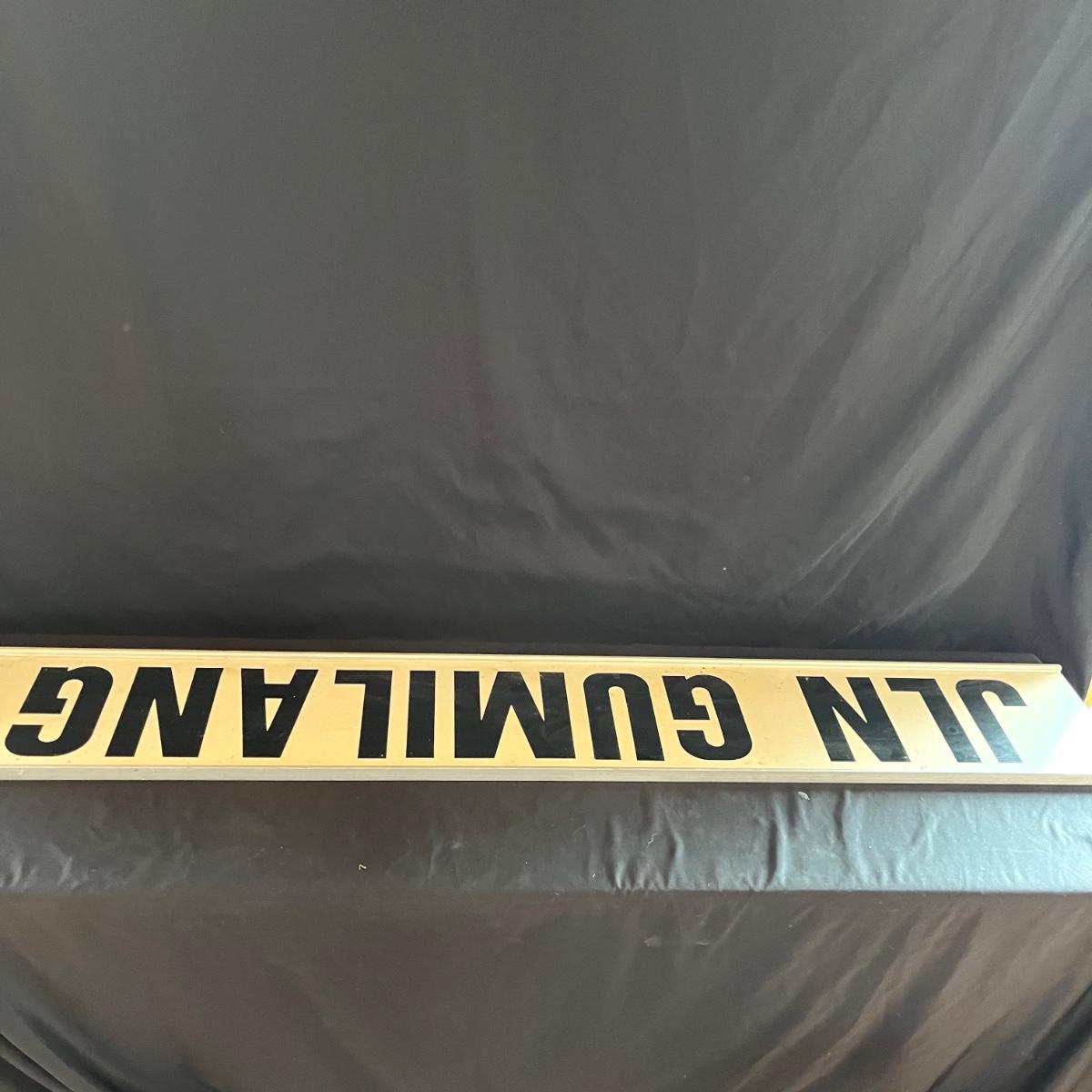 Lot includes à aluminum sign that says JLN GUMILANG on both sides. Sign measures 8” x 52” x 1”.
