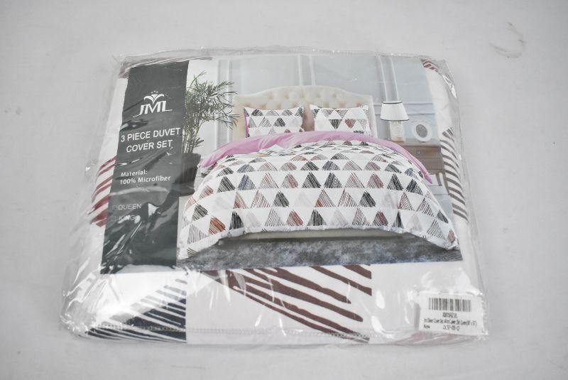 JML 3 piece Duvet Cover Set, Queen Size, Triangles - New