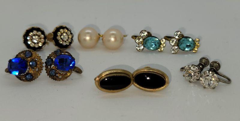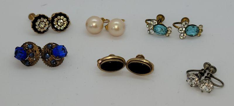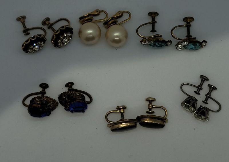 JMO11: Six pair Beautiful vintage screwback earring lot, Czechoslovakia , Majorca,  gold filled and more