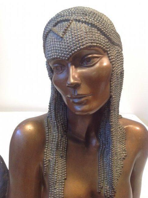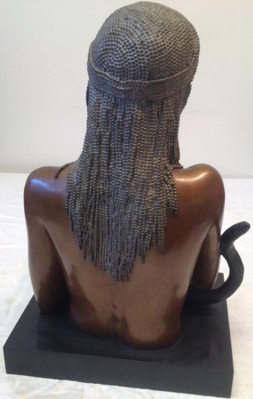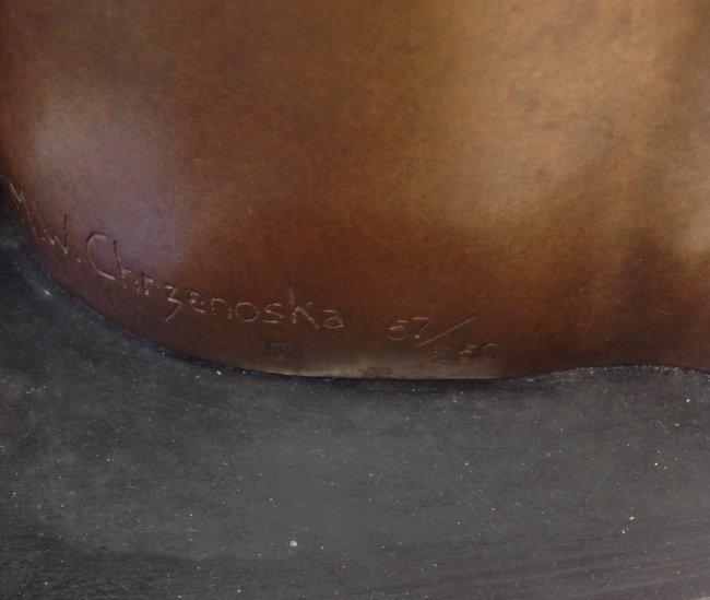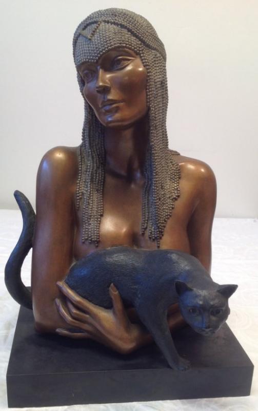 Description: JMW CHRZAWOSKA Bronze Bust with a lady holding a cat depiction - Limited edition; 57/250. Measurement approximate: 20 H X 13 W Inches. Shipping cost: Pick up only or contact us for quote