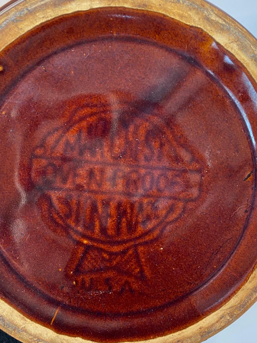 Vintage Dark Brown Mar-Crest Daisy Dot Stoneware Crock Dutch Oven Casserole Dish with Lid