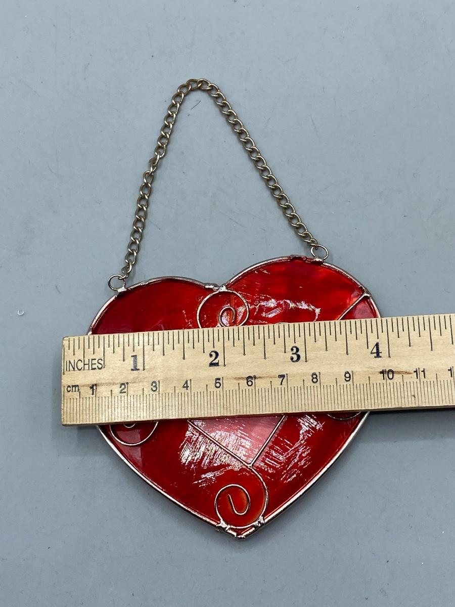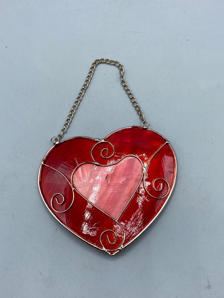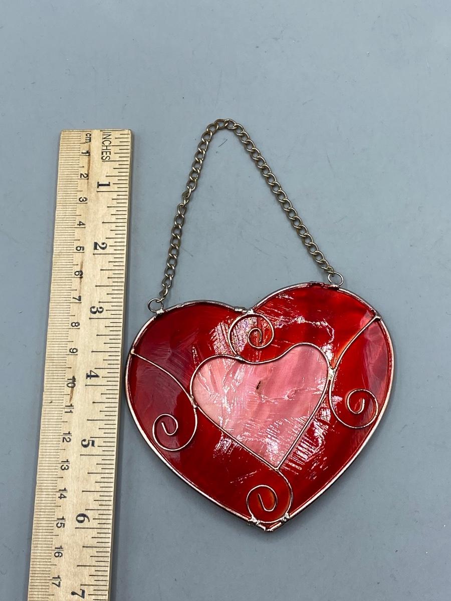 Wall Hanging Red & Pink Heart Shaped Painted Shell. In good condition. About 4" size.