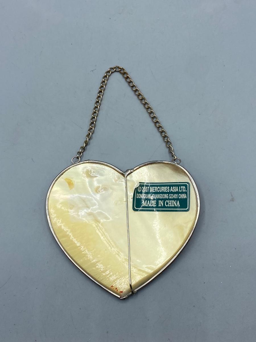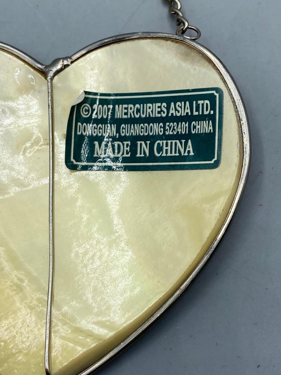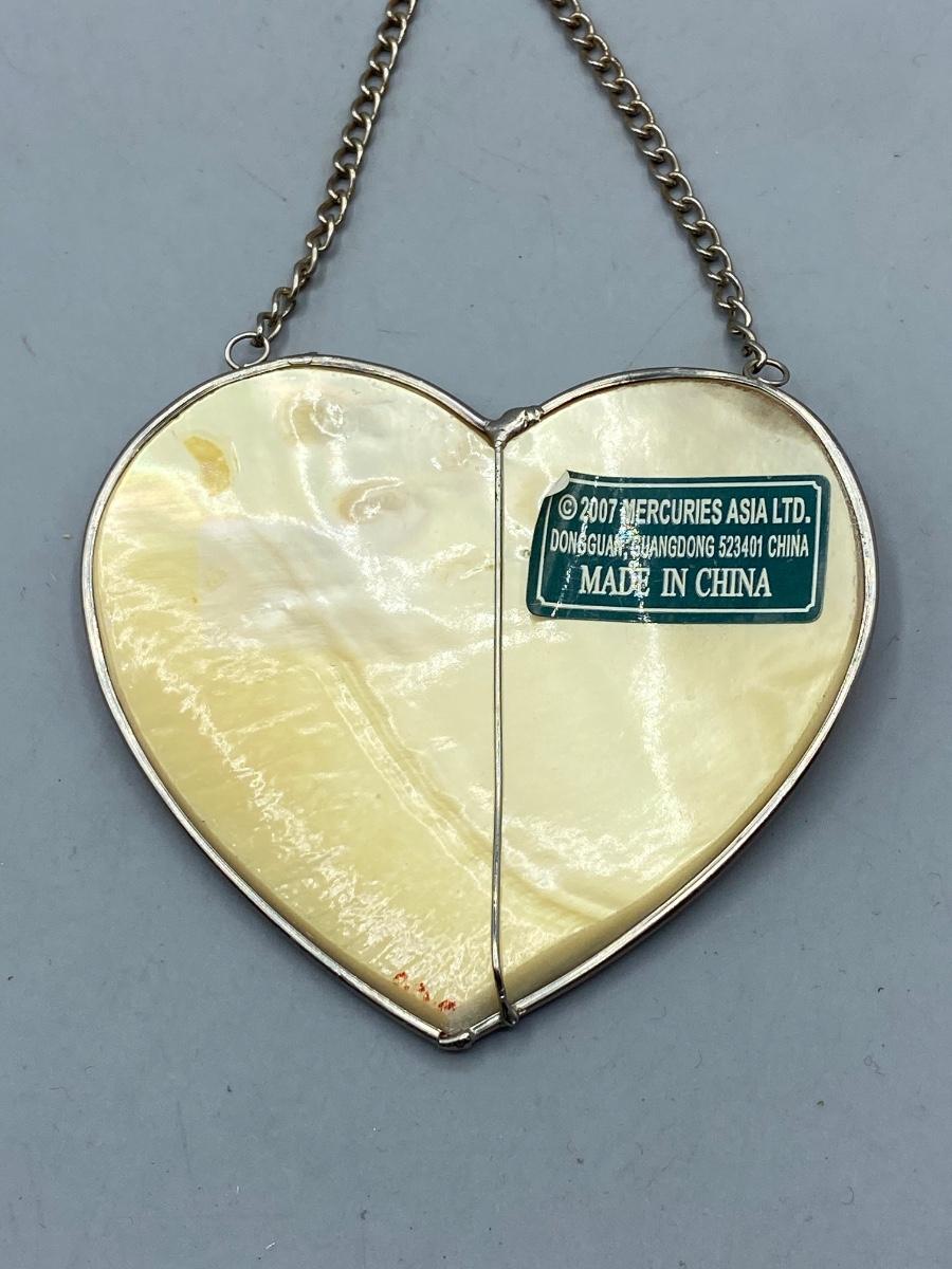 Wall Hanging Red & Pink Heart Shaped Painted Shell. In good condition. About 4" size.