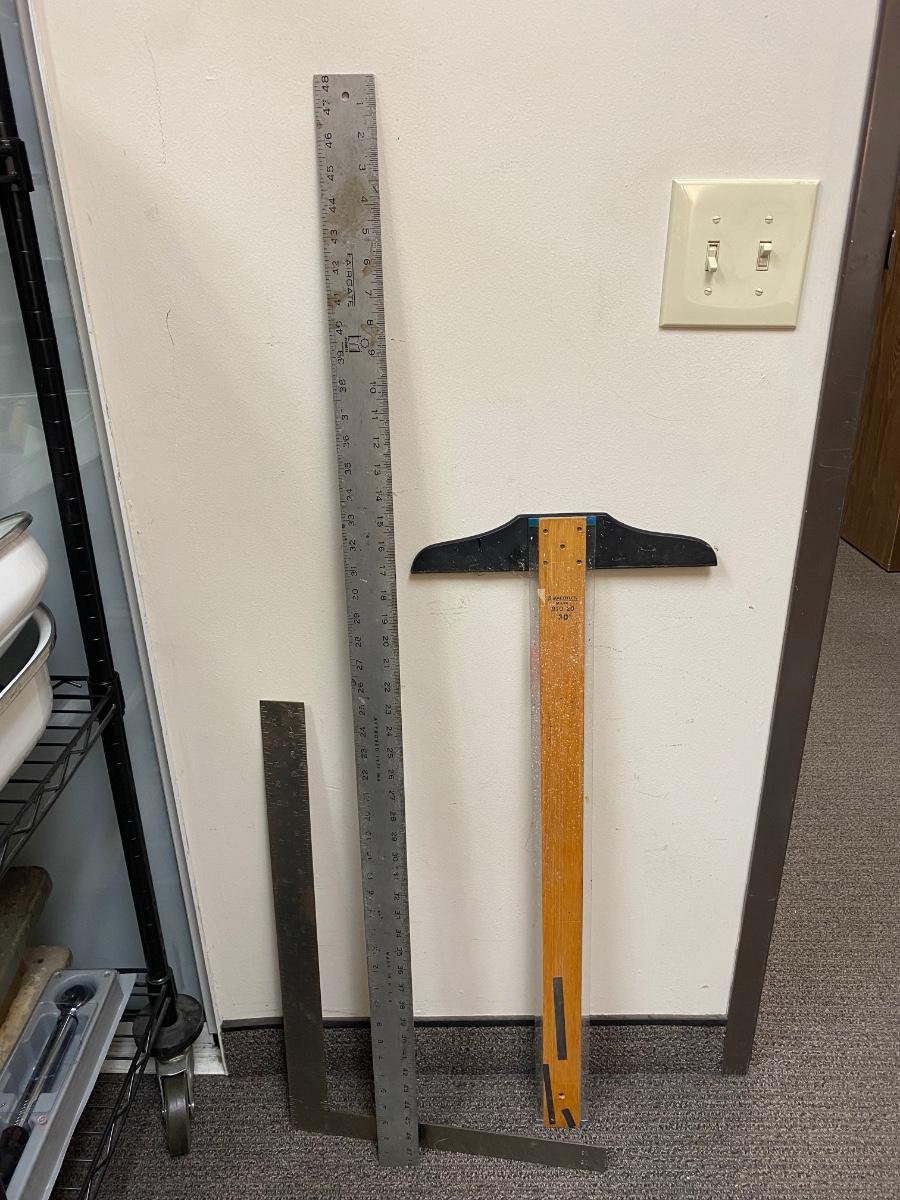 48" Metal Ruler T Square Lot. Three-piece lot, in good used condition.
