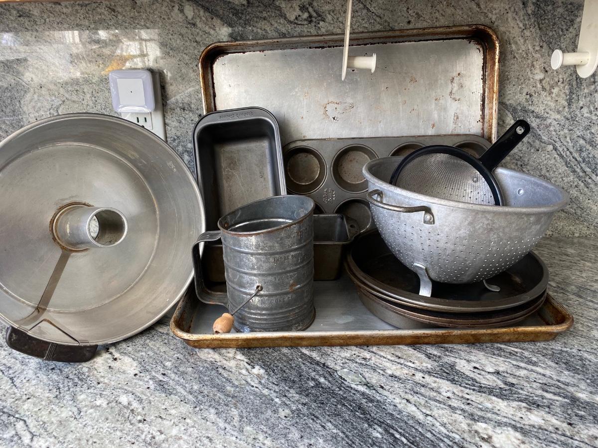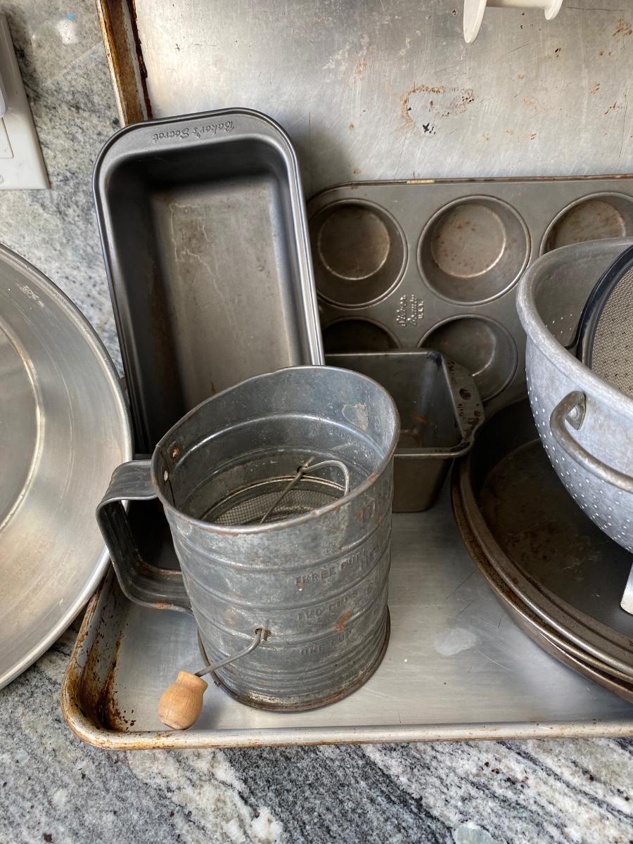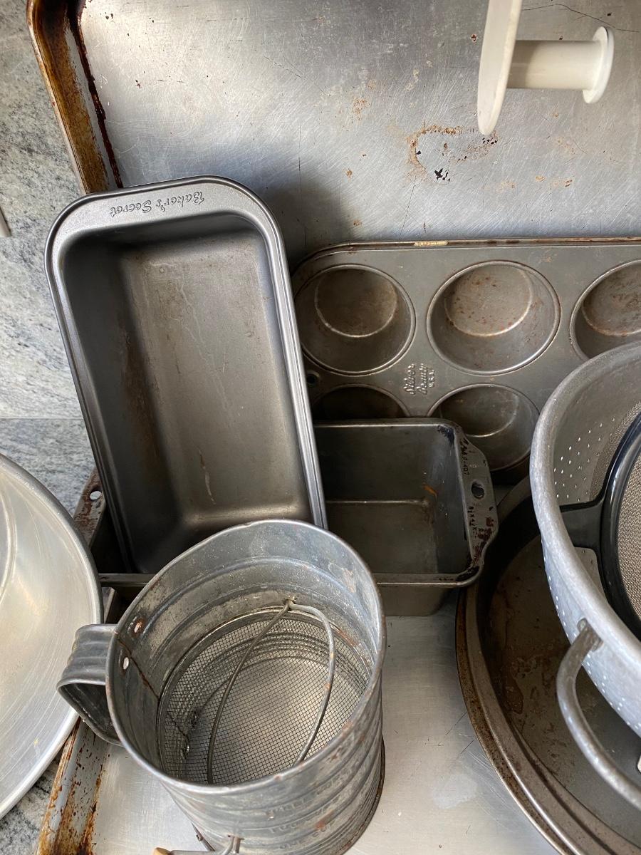 Mixed Lot of Metal Bakeware Cookie Sheets Cake Pans Sifter Strainers