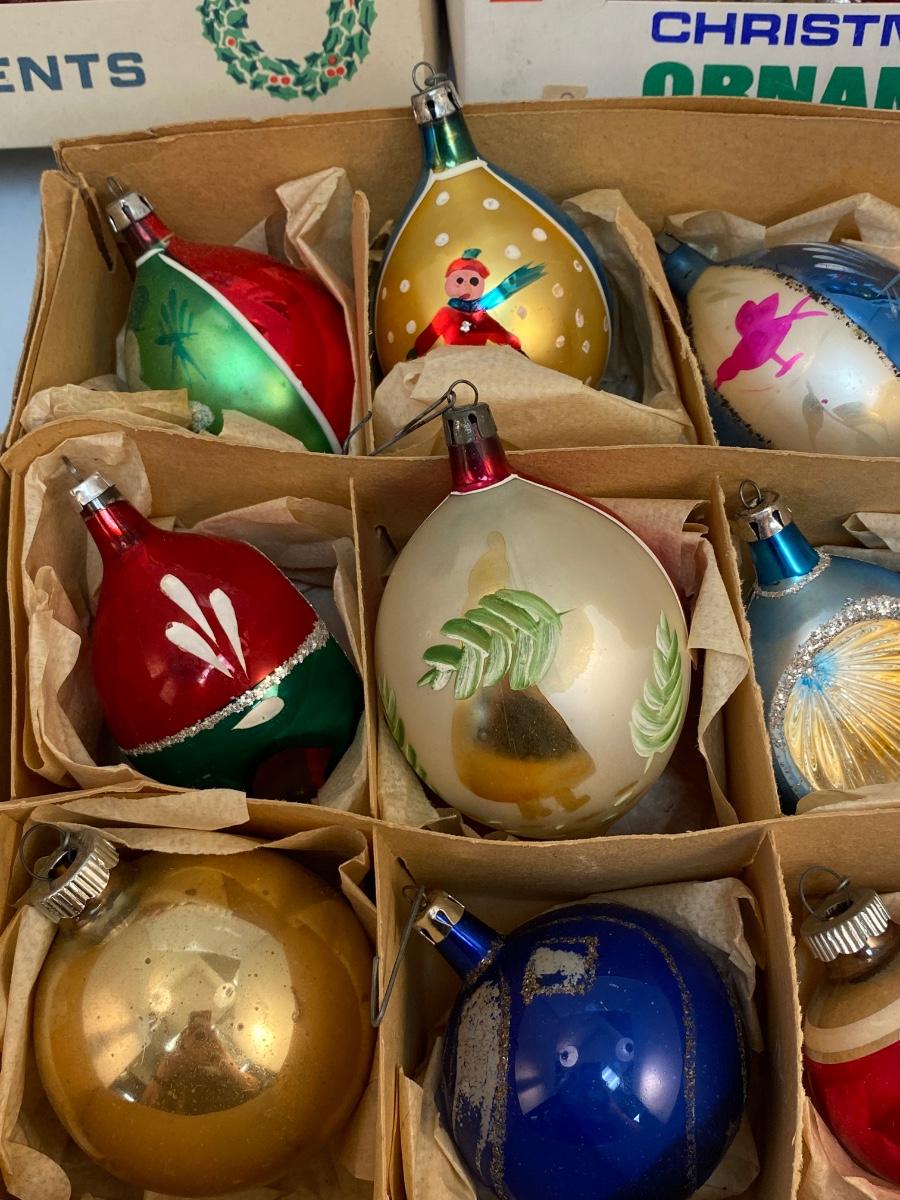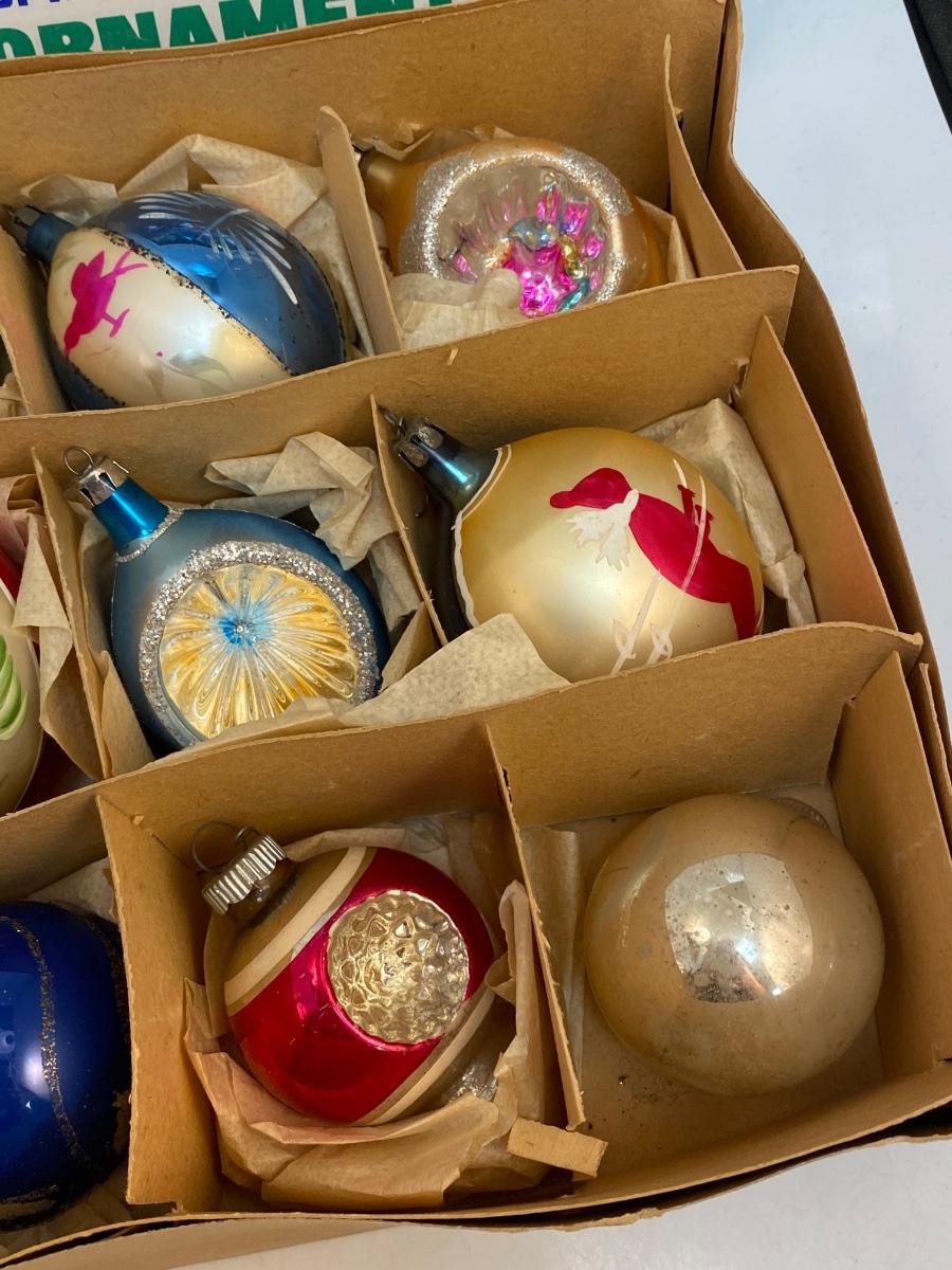 Mixed Style Lot of Vintage Glass Christmas Tree Holiday Ornaments Santa Land Shiny Brite