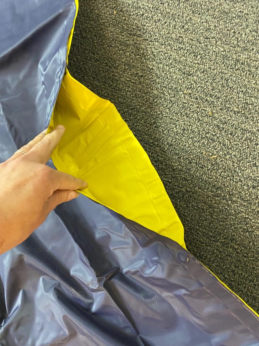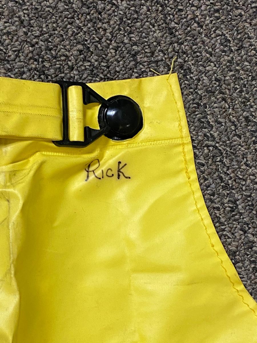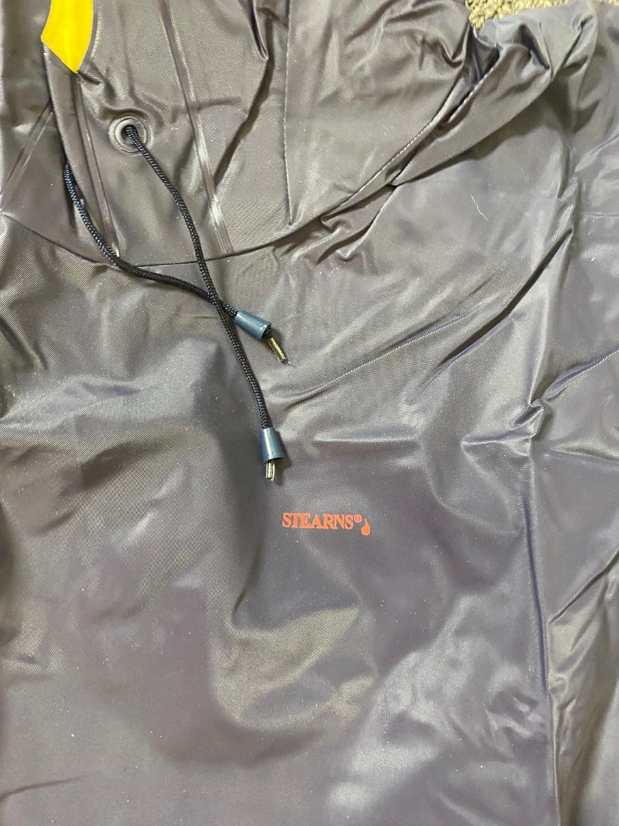 Yellow Rain Slicker Overalls Poncho with Hood Umbrella Included. No size tags but the overalls look like a large/maybe XL.