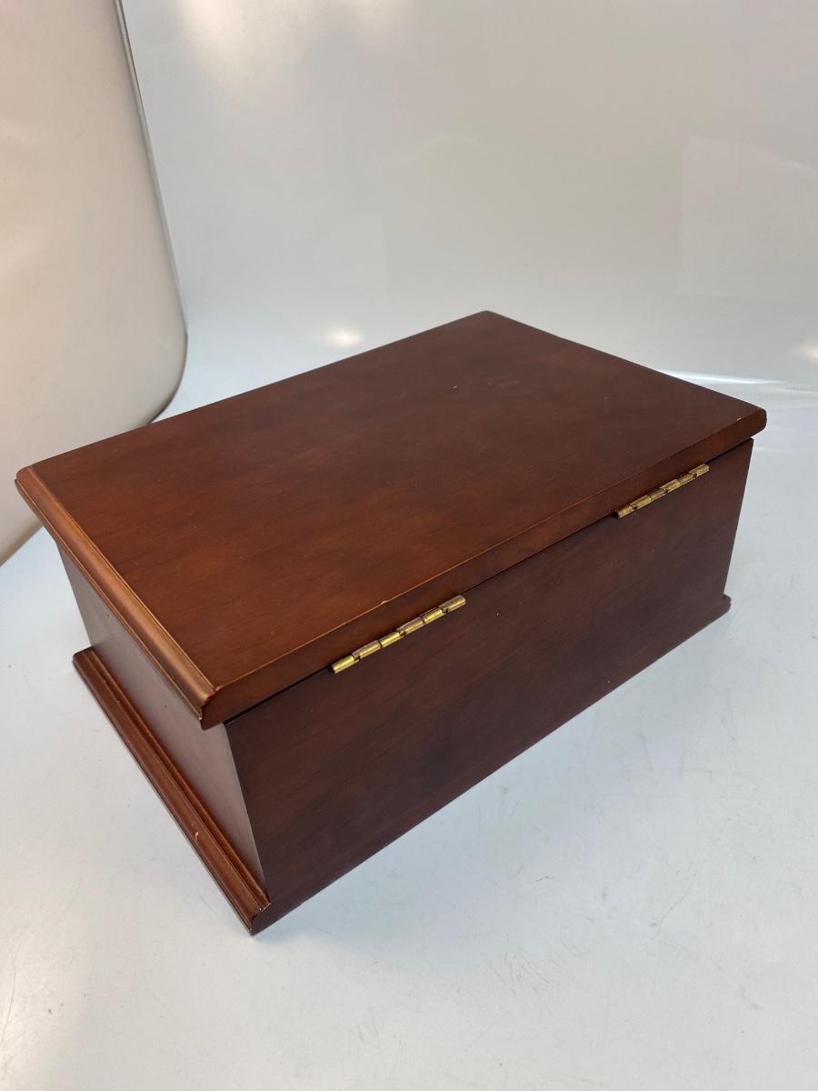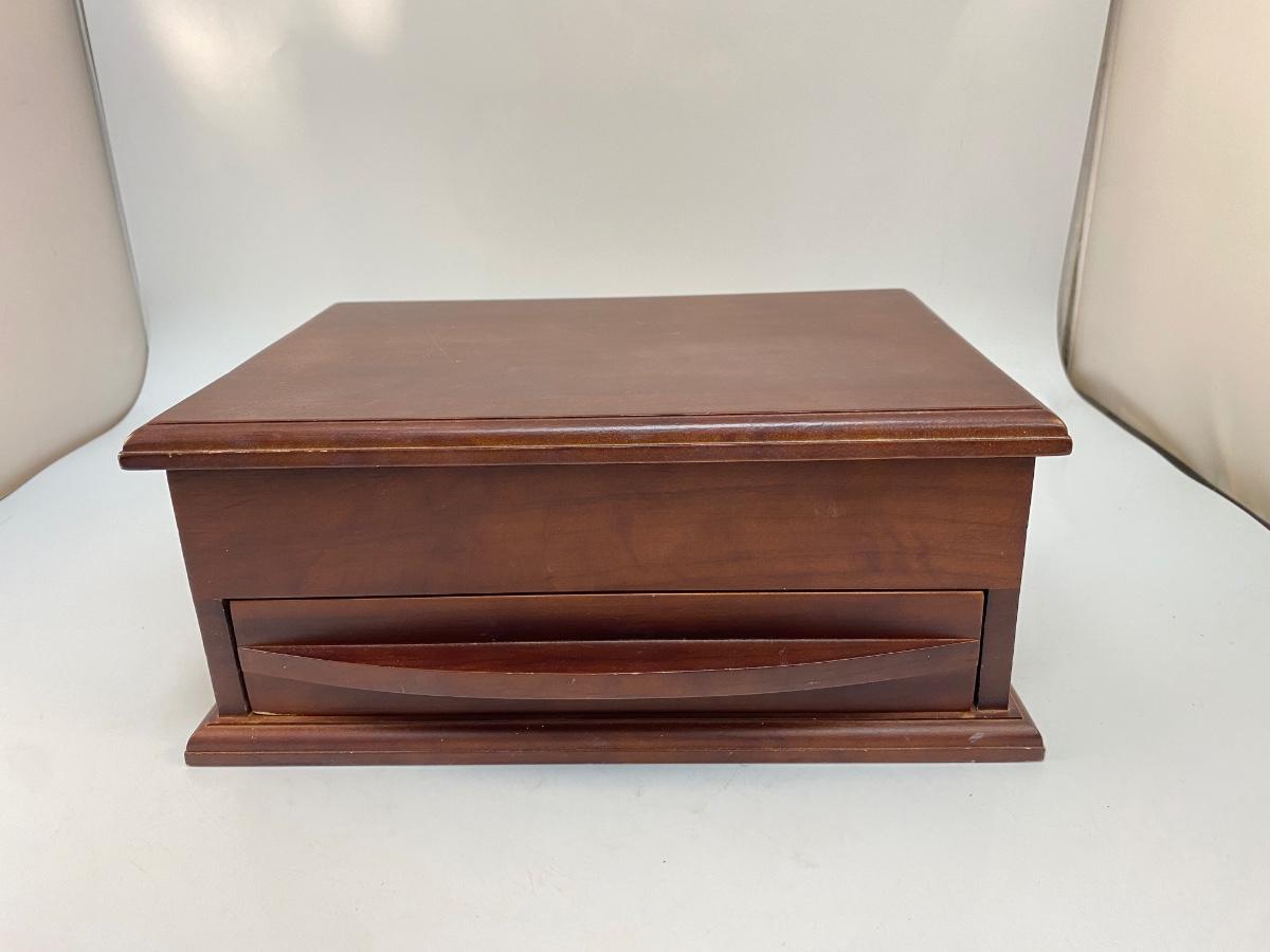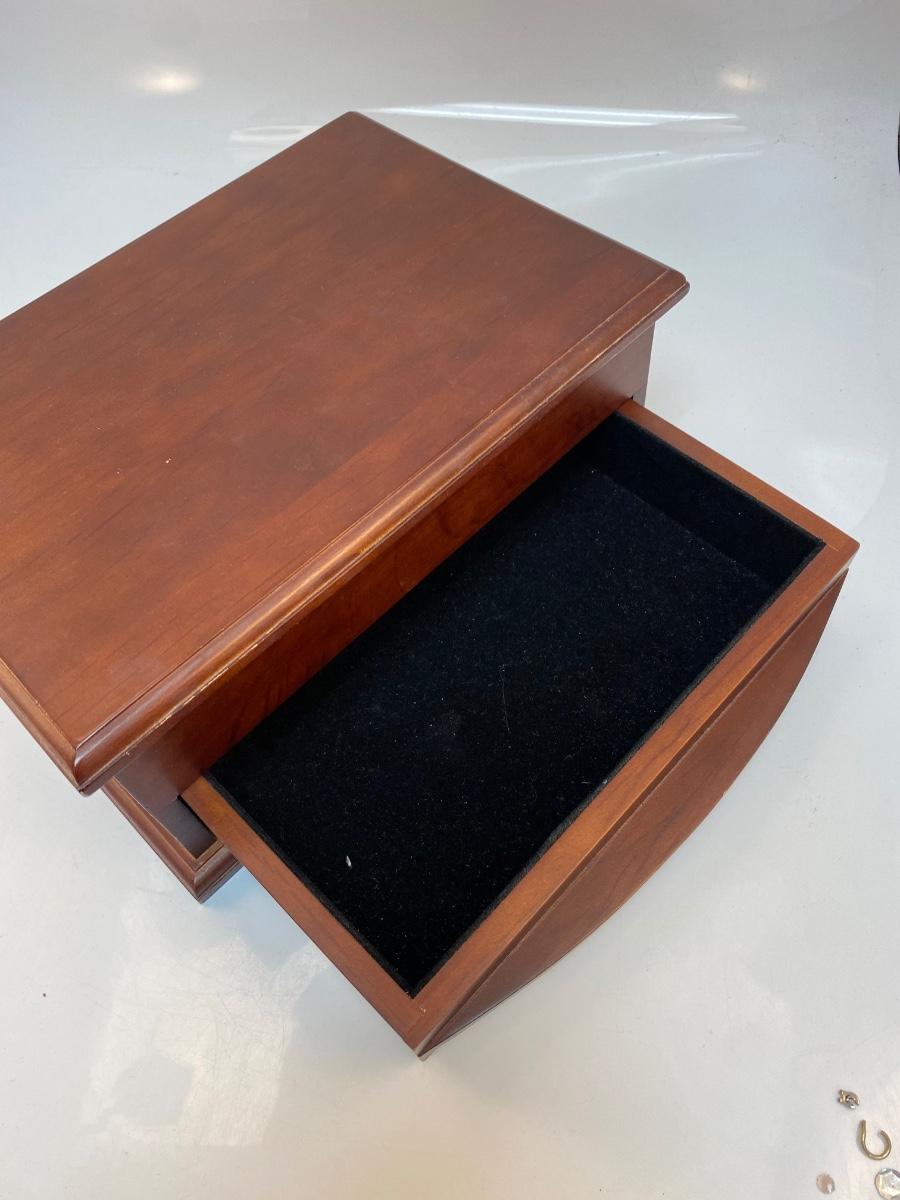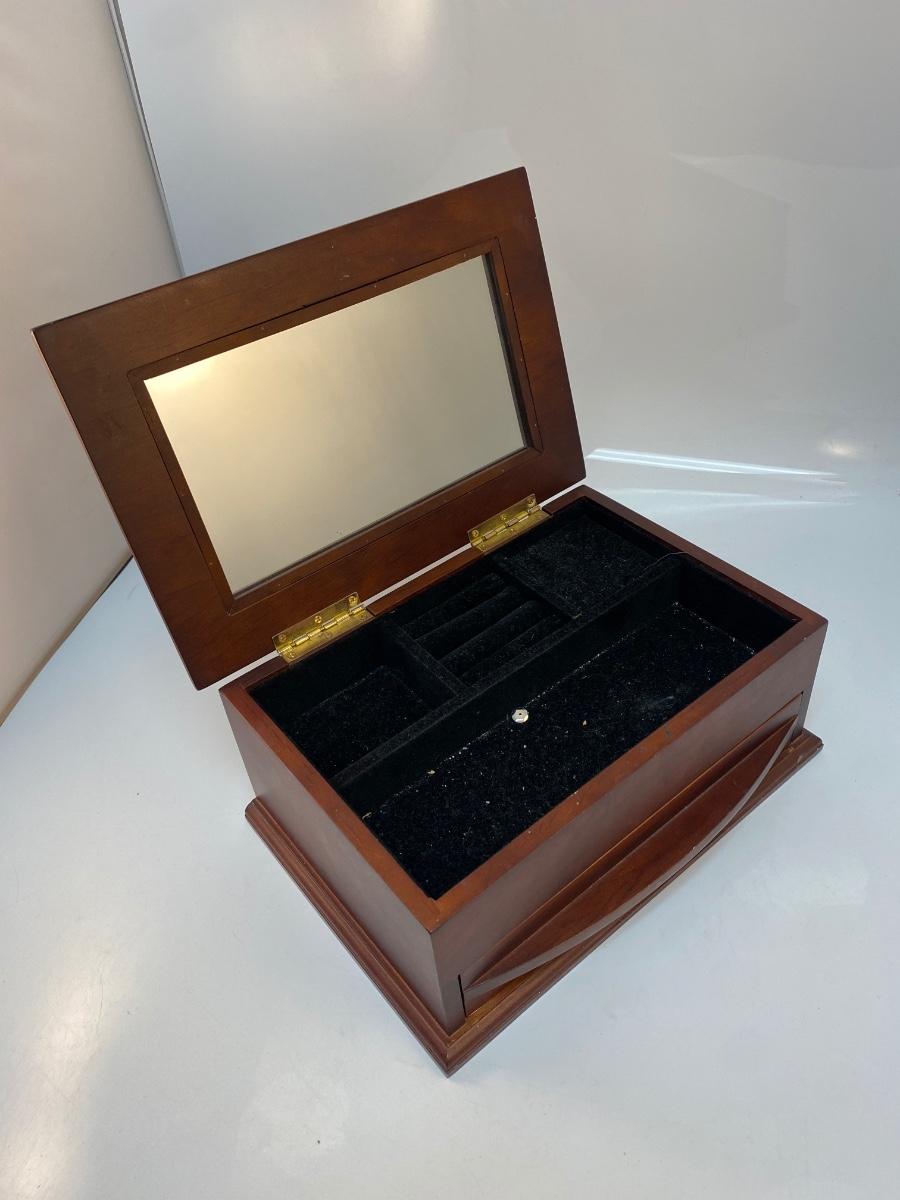 Wood Jewelry Trinket Box Mirrored Lid Bottom Drawer