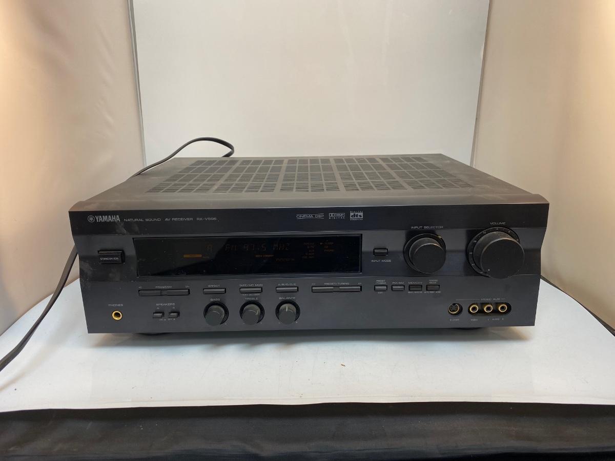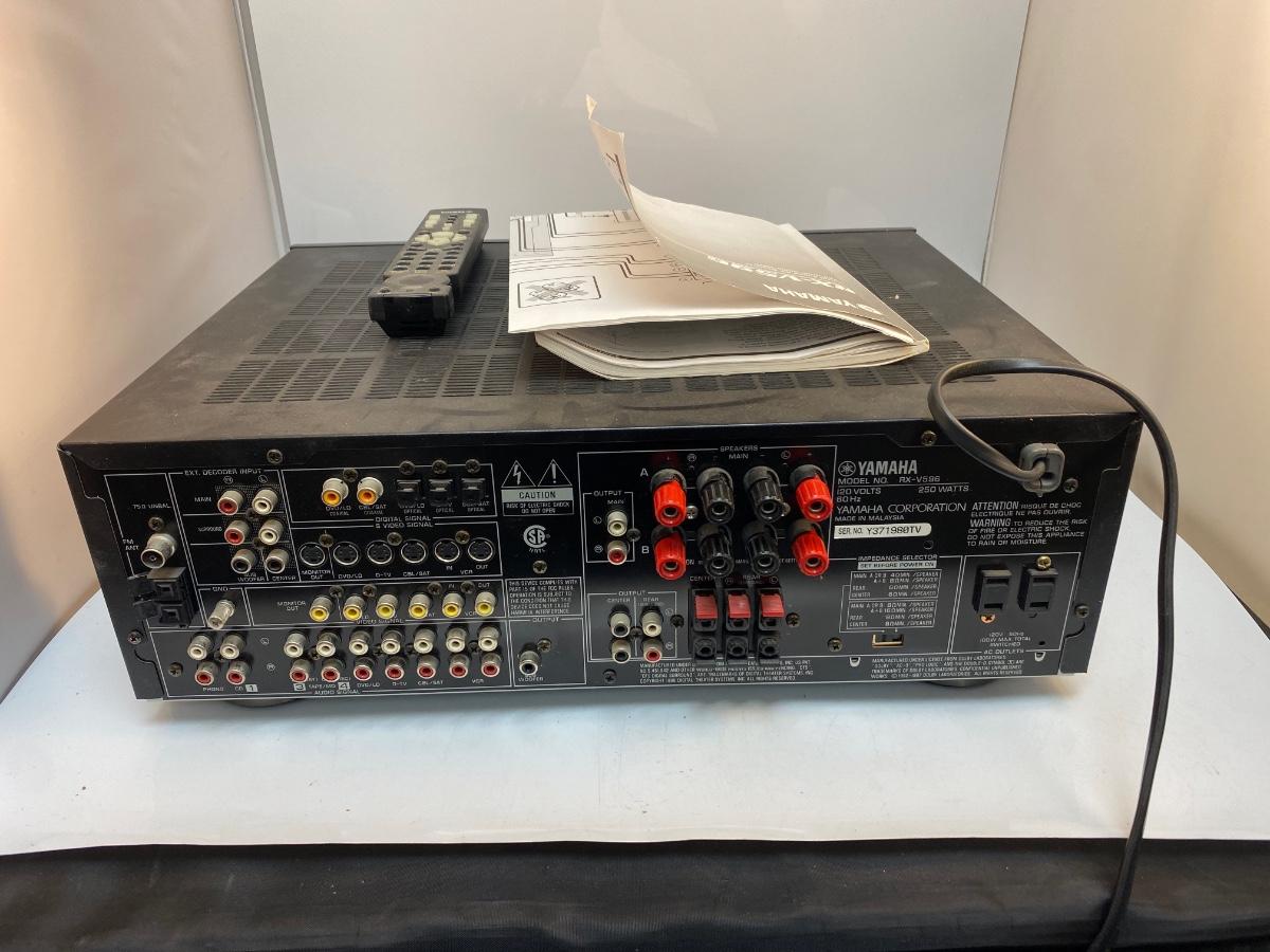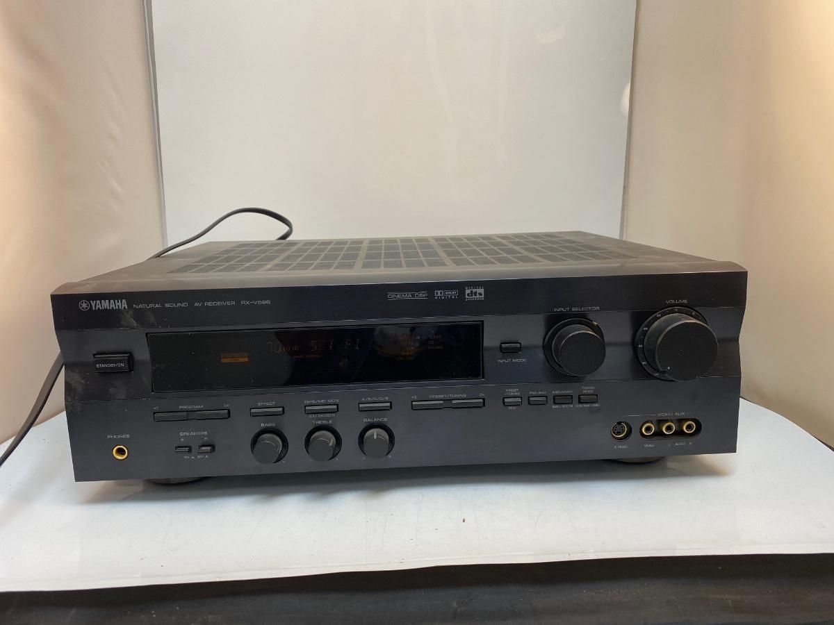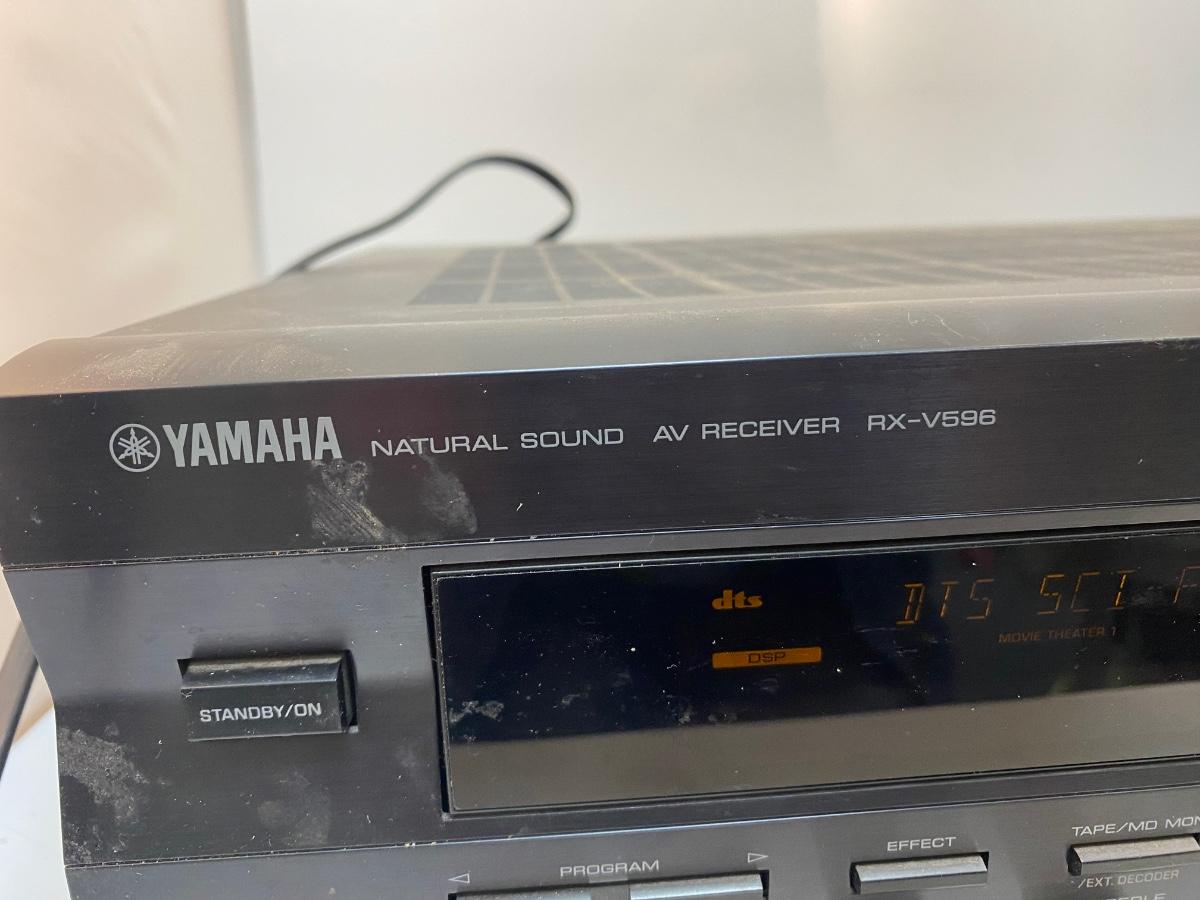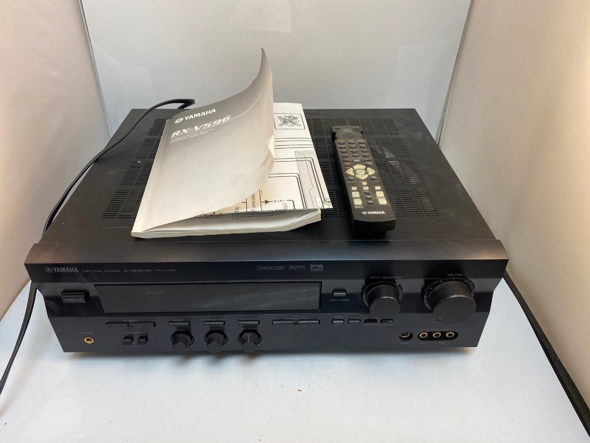 YAMAHA RX-V596 Natural Sound AV Stereo Receiver with Manual & Remote. Plugged in and it seems to work, moved through all the functions. All sorts of ports in back to control everything AV related. Comes with remote and user manual.